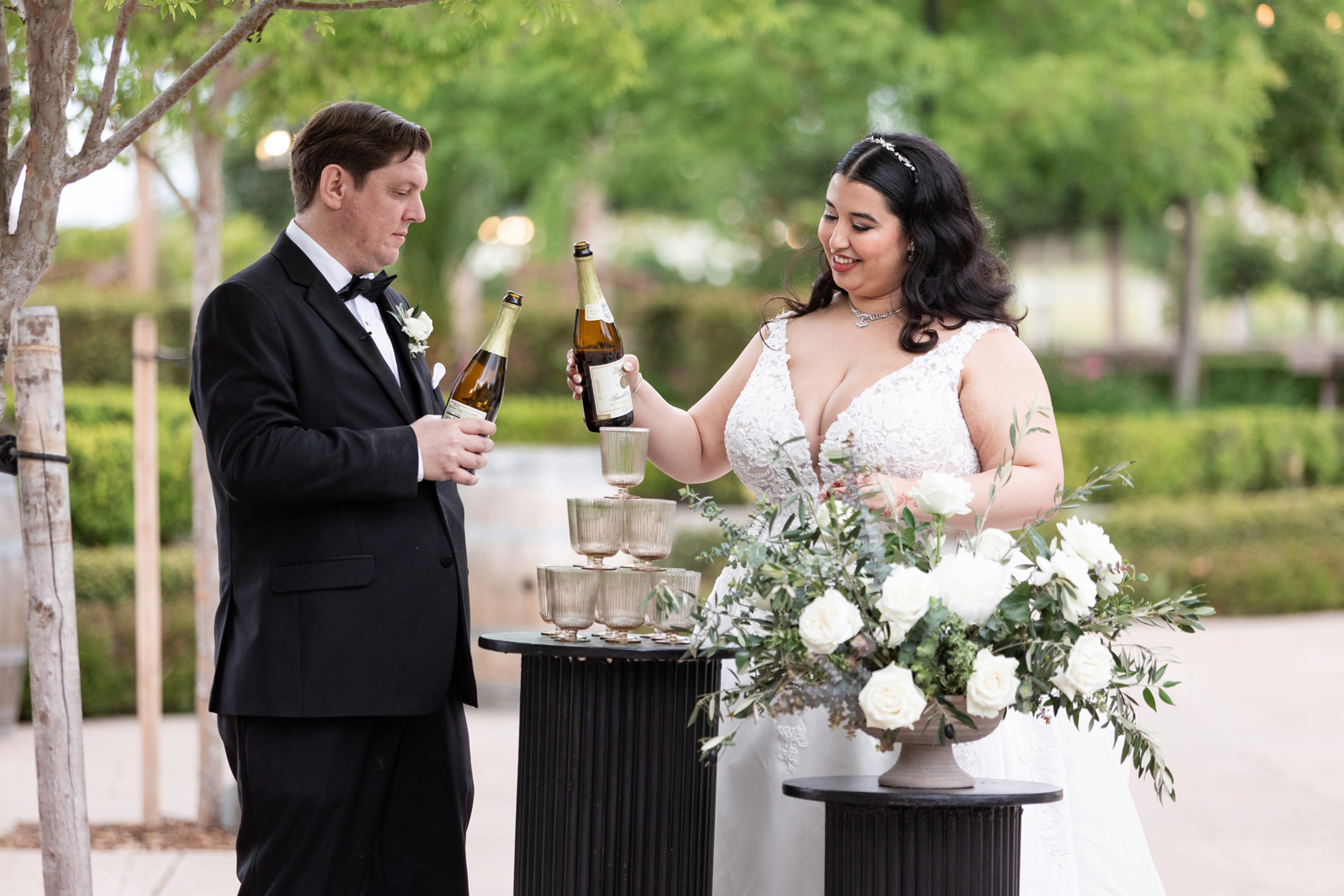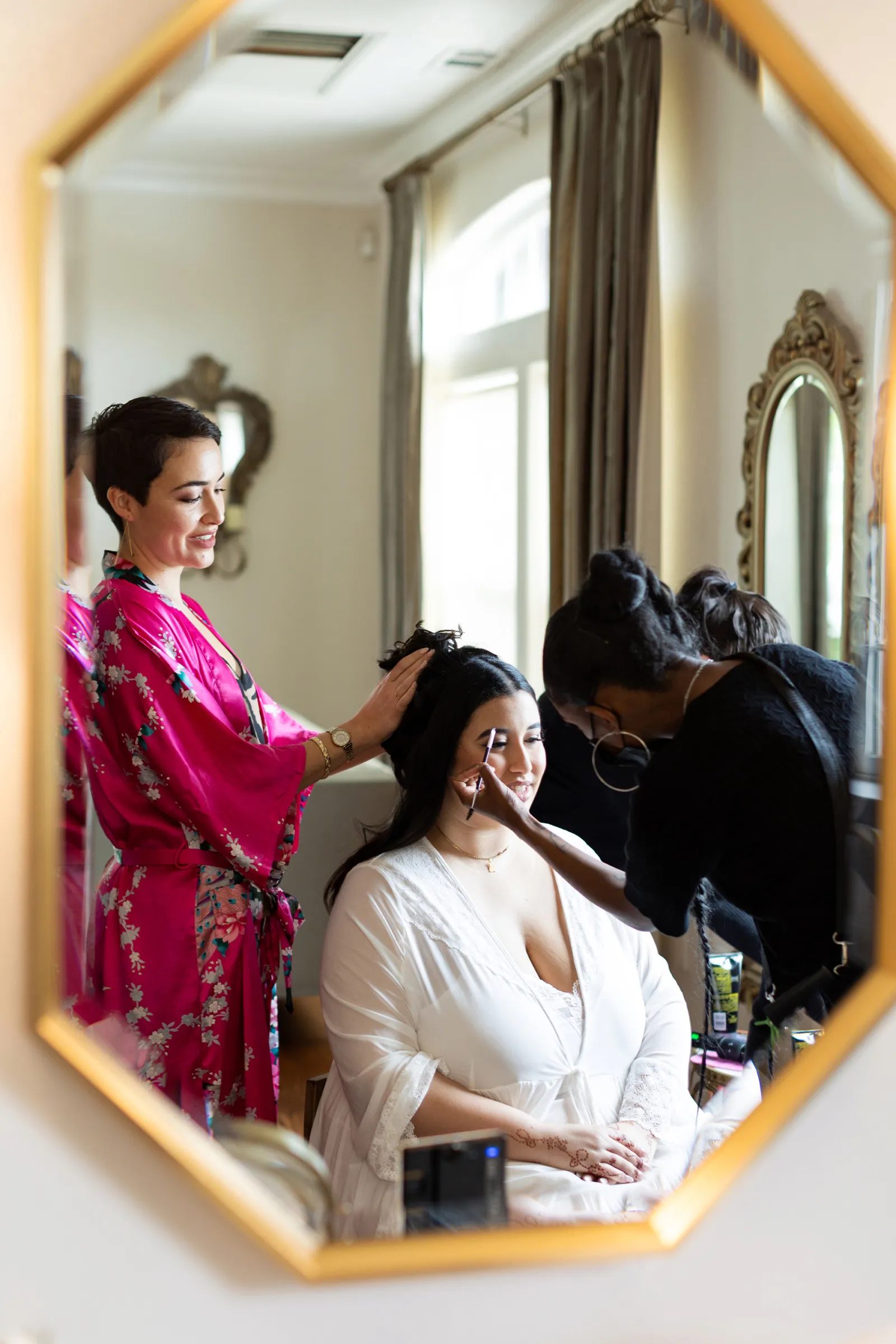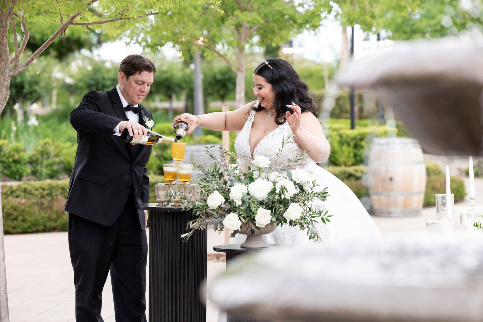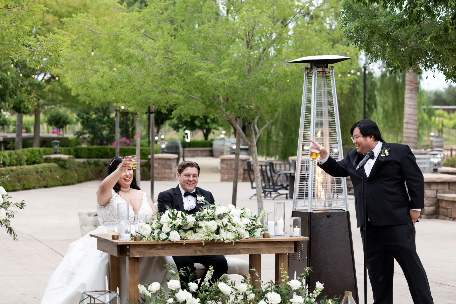 I definitely wanted to blend our cultures. Me, a Tunisian woman, and David, a born and raised Sacramentan. We were so lucky to find a beautiful winery that also was an olive grove, since vineyards are quintessentially Northern Californian and olives are important to Tunisian culture as a sign of prosperity and family. We also knew we wanted a dry wedding, as most of our friends and family don’t drink. Early on in planning, I knew I wanted to serve baklava and Turkish coffee at the wedding, since that is customary in Tunisian weddings. Luckily, when I googled “Baklava and Turkish Coffee Sacramento”, I found Baklava and Coffee! They provided after dinner refreshments and were a huge hit. They were incredible professional and entertaining, and people were coming up to me all night telling me how much they enjoyed it. Two days before the wedding (on Wednesday), I had a henna ceremony with my family and bridal attendants. This is a traditional Tunisian practice. I hired MyHennaSpirit to come and create beautiful henna designs on everyone’s hands, and we enjoyed some traditional mint tea and sweets. It was a beautiful day and a great way to start the festivities. Then, the next night, we had our rehearsal dinner at Kasbah Lounge in Sacramento. The food was amazing, and Tanya (the owner) went out of her way to make it all feel so special. They even had live Arabic music and a bellydancer! My family who had come in from abroad loved it and had the best time. We also made sure to let the DJ know in advance that we wanted to play some Arabic music during the reception. We provided a short list and they did an incredible job, mixing it effortlessly with the hip hop and pop music my American friends liked. My parents and friends danced the night away.