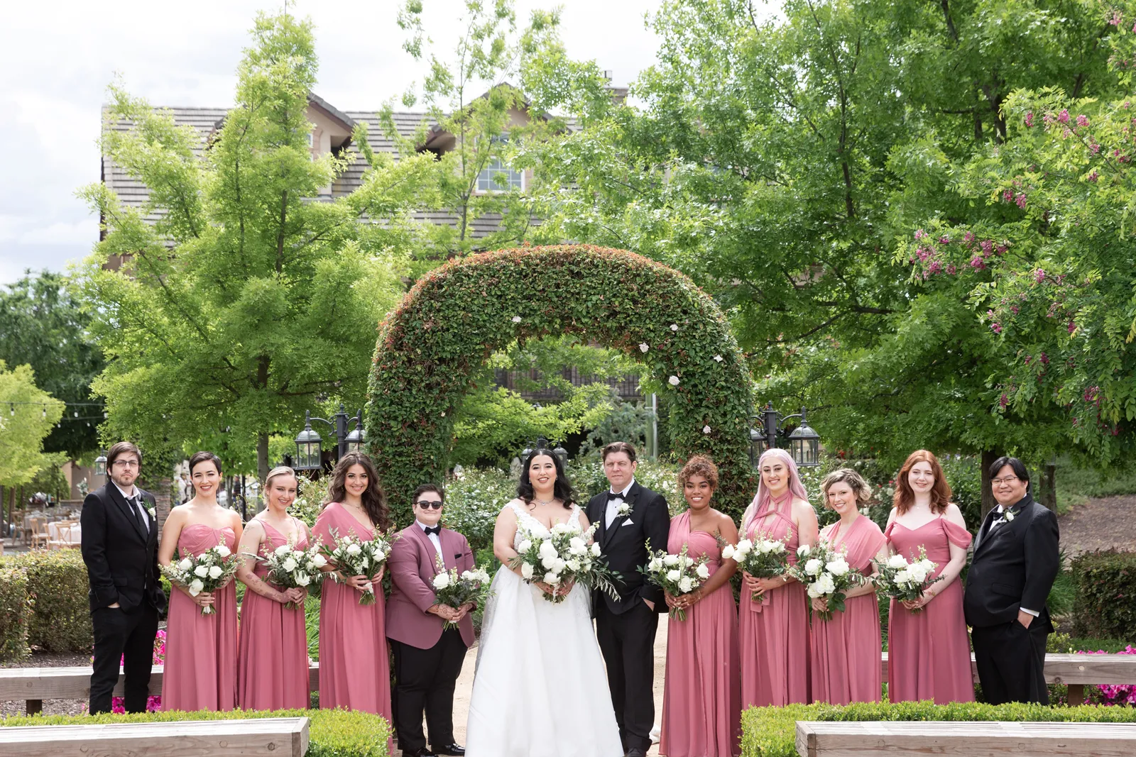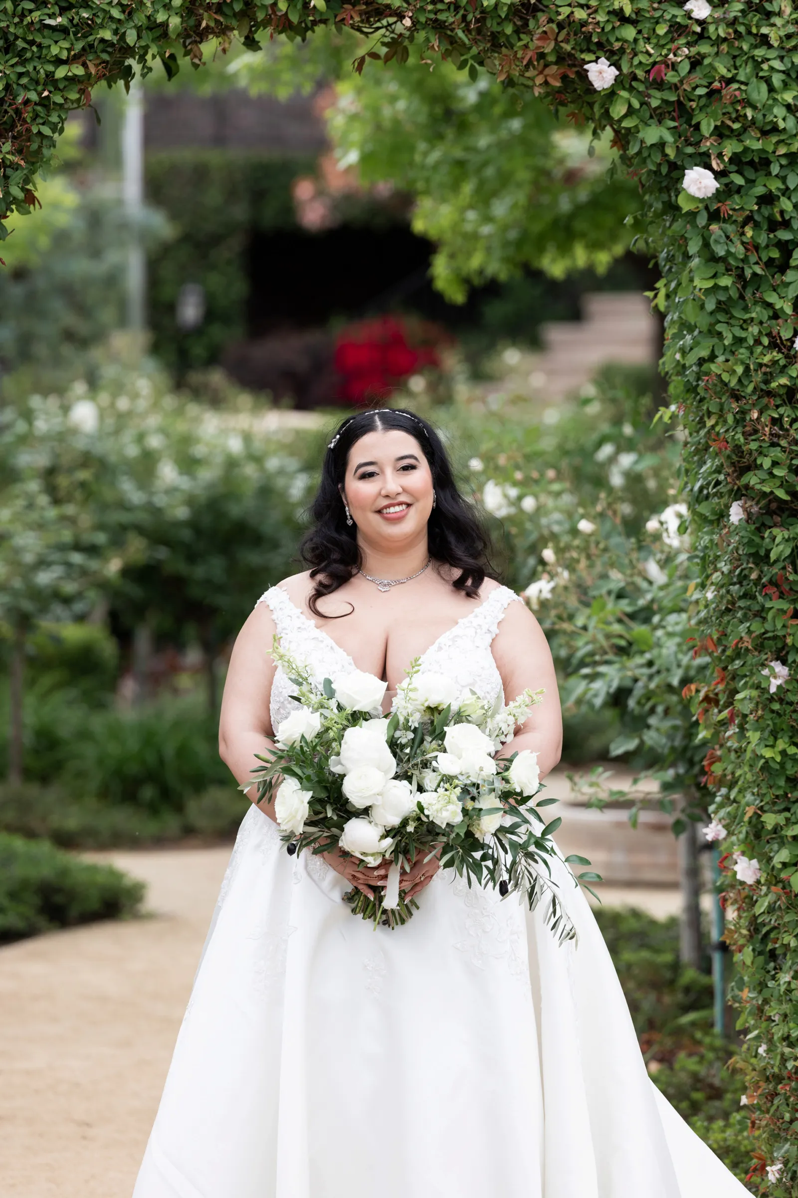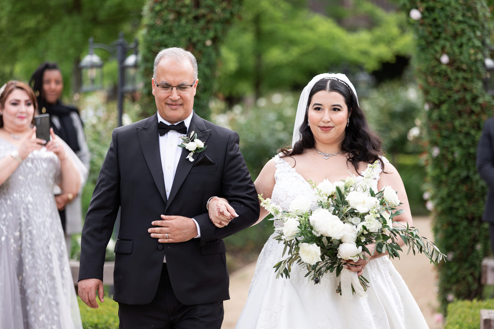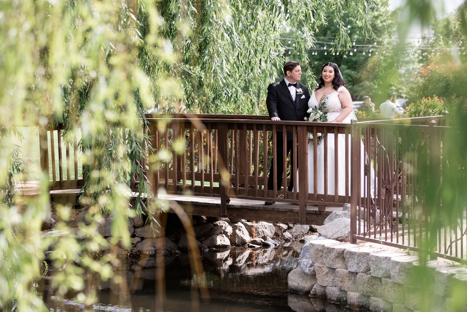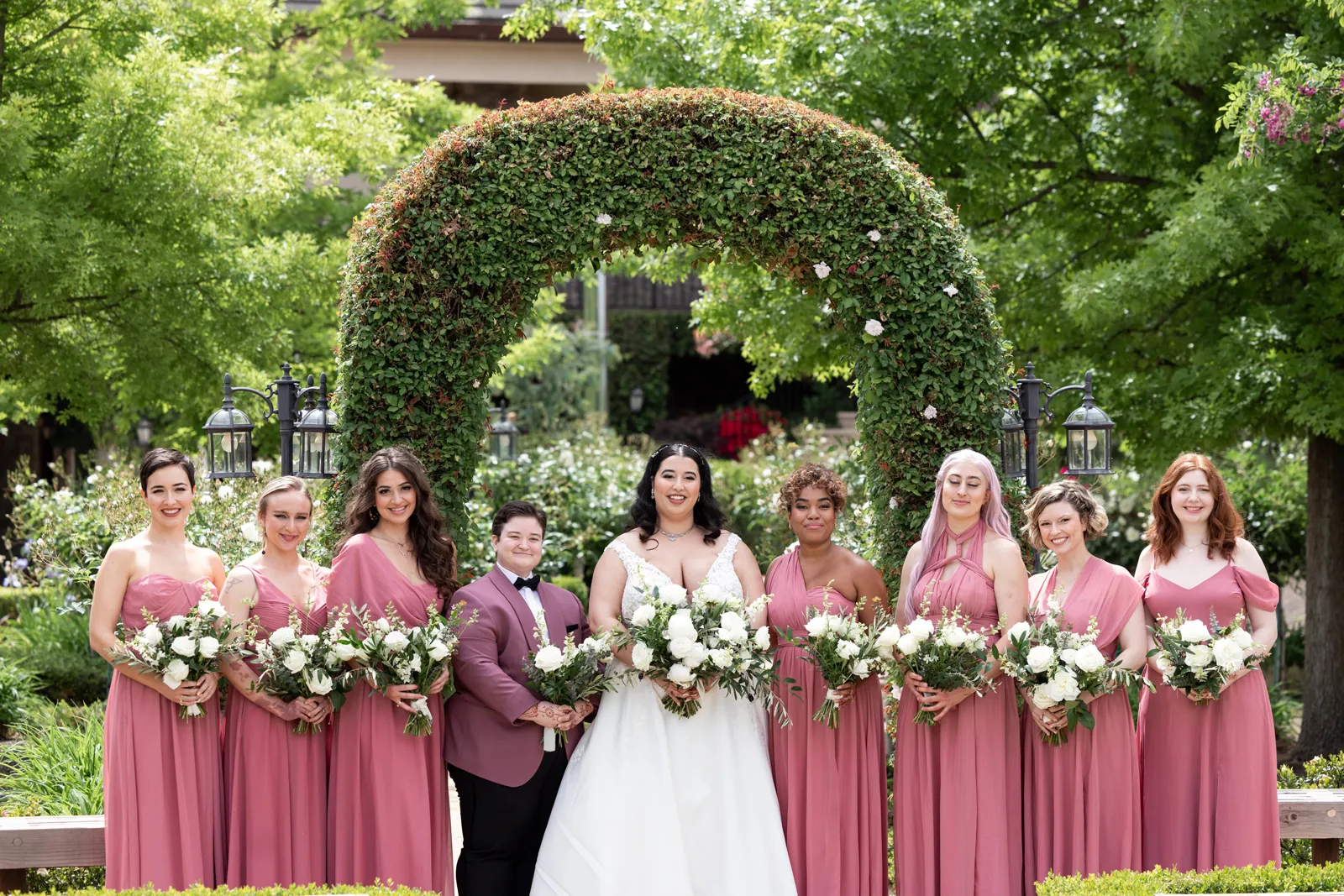 The ceremony was absolutely beautiful. We were worried about the weather—it had been hot all week and then was suddenly going to rain that day. Luckily, that day had a lovely mild temperature and was a little overcast, perfect for photos. Instead of having our wedding party standing with us, we opted to just have my guest-of-honor and his best man standing there, to reduce visual clutter and to keep it minimal. We asked one of my best friends, Laura, to officiate, and she did an incredible job even though it was her first time. Her speech was heartfelt, funny and succinct. We really did not want the ceremony to drag on—we were too excited to be married! We also did our first look and vows privately, to cut down on ceremony time and have more time to ourselves. Overall, it was a great decision. We ended up having lovely intimate moments, and it reduced the ceremony jitters.