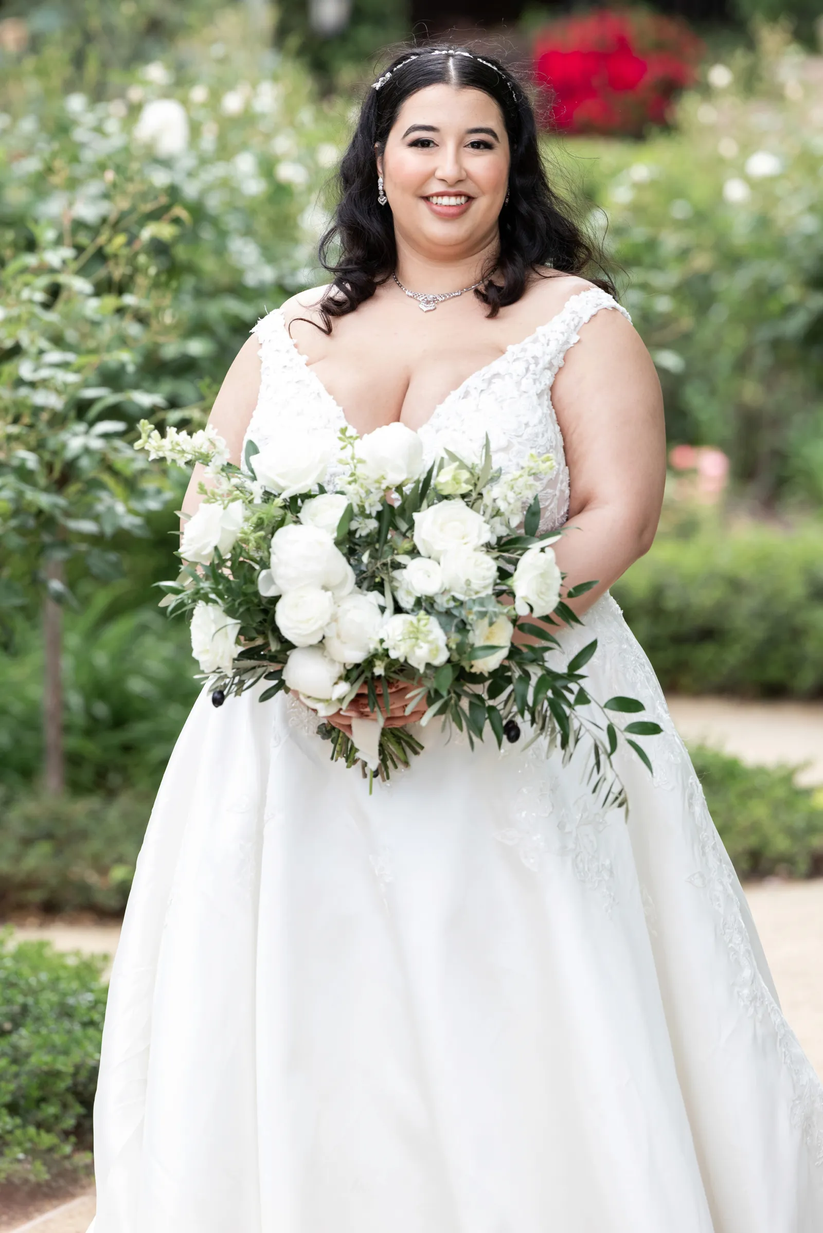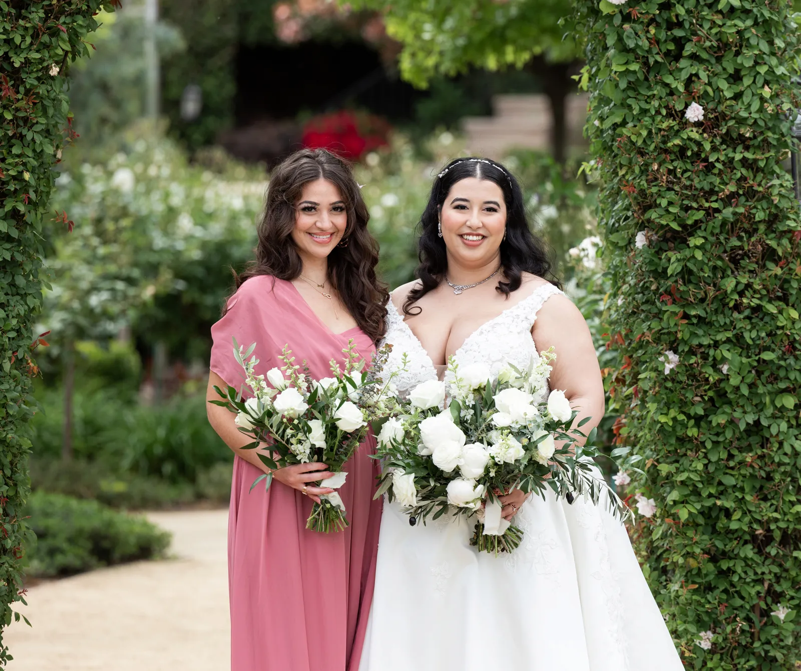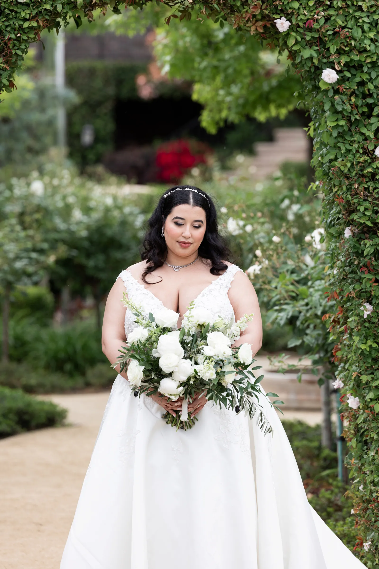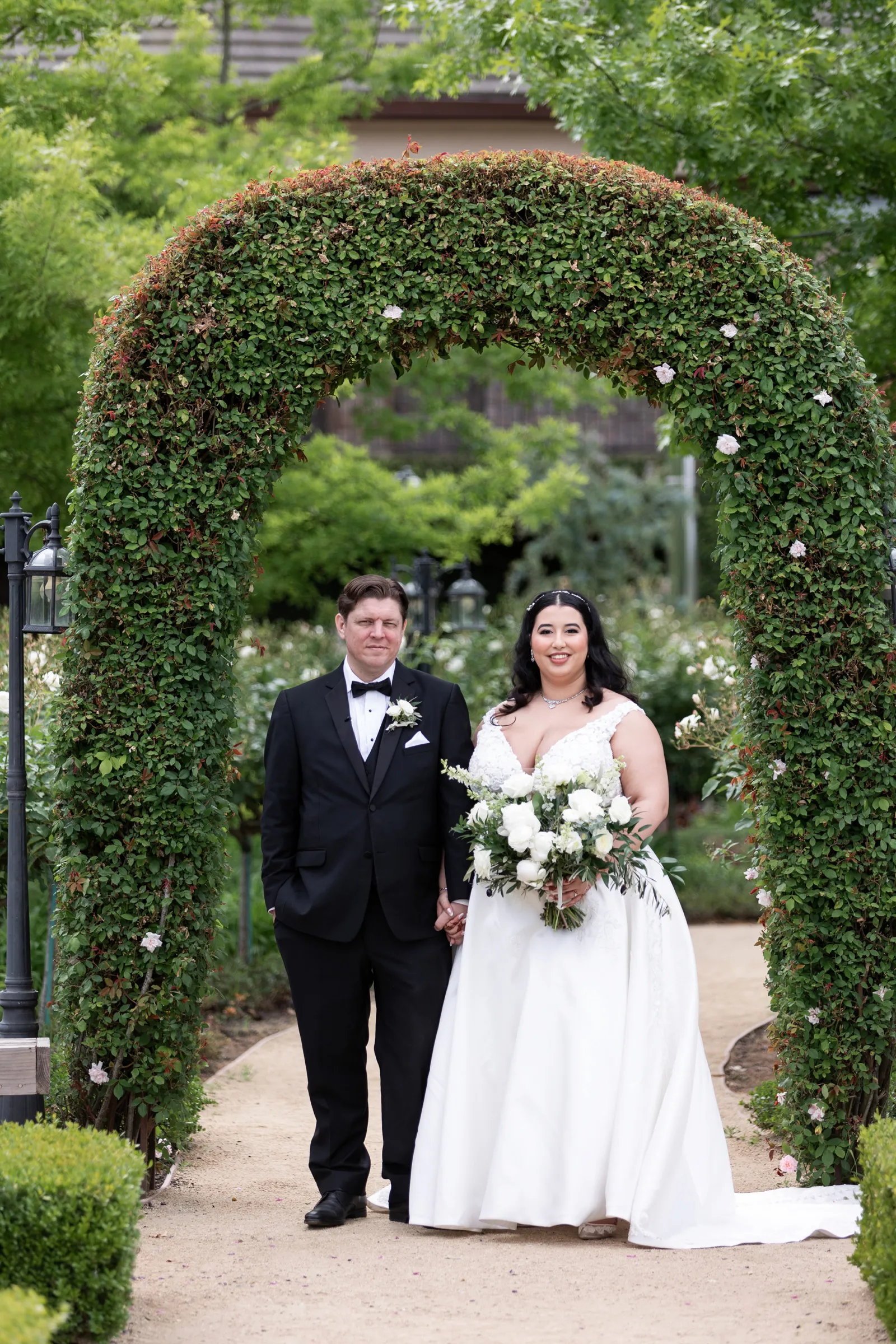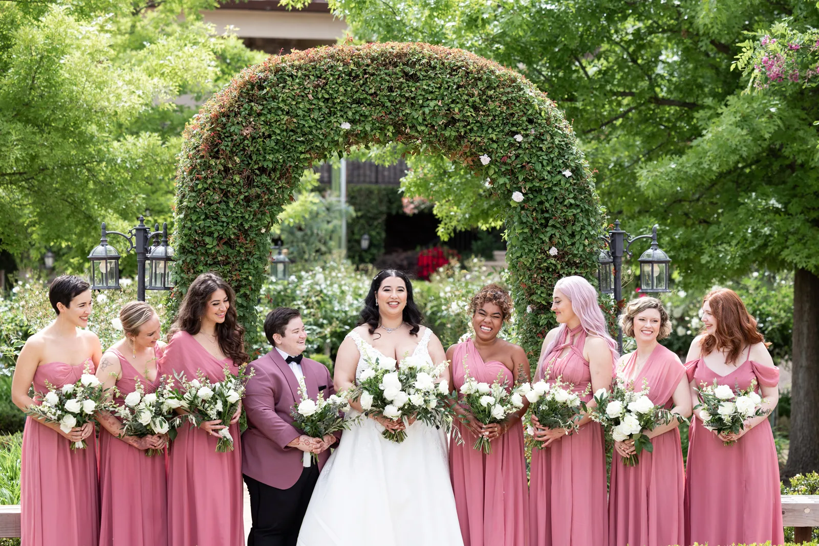The ceremony was absolutely beautiful. We were worried about the weather—it had been hot all week and then was suddenly going to rain that day. Luckily, that day had a lovely mild temperature and was a little overcast, perfect for photos. Instead of having our wedding party standing with us, we opted to just have my guest-of-honor and his best man standing there, to reduce visual clutter and to keep it minimal. We asked one of my best friends, Laura, to officiate, and she did an incredible job even though it was her first time. Her speech was heartfelt, funny and succinct. We really did not want the ceremony to drag on—we were too excited to be married! We also did our first look and vows privately, to cut down on ceremony time and have more time to ourselves. Overall, it was a great decision. We ended up having lovely intimate moments, and it reduced the ceremony jitters.