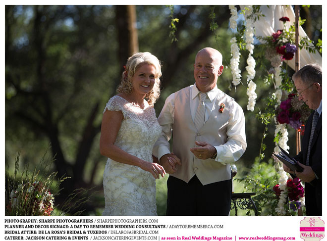 Lora Ward, the wedding planner. You see, Jim and I got engaged in late February, 2014 and after looking at possible dates and realizing how important it was for us to have both sets of parents attend --- and that it was going to get harder and harder for my folks (in their mid to late 80s) to travel from Florida --- we decided on June 1st – only about 3 months away!! I work as a nursing professor and Jim, while technically retired, is constantly busy. So, we knew it was going to be impossible for us to plan a wedding on our own. Plus, we had a trip to Fiji planned before the wedding!! We also had the challenge of wanting to do the wedding at our home, and share part of us with our families. But….. while the property is gorgeous….. there is very little flat ground. We weren’t sure where we would be able to sit everyone for dinner. After interviewing several planners, we selected Lora. She was absolutely perfect --- able to “see the possibilities” of doing this event at our home. She saw our vision of wanting the event to be simple, but “nice.” I called it simple elegance…. I’m not sure what she called it, but she was magical in how she pulled it off. Her contacts and resources are huge. She was able to get very high level vendors to commit, even on such short notice. We ended up doing 2 separate events. On Saturday evening we did a casual, catered family dinner that allowed all the family from both sides to come together and visit without all the stress and time constraints of a wedding. Then on Sunday at the wedding, they already knew each other and it was much more enjoyable, I think. Of course, Lora was fabulous at orchestrating, while not being obtrusive at all. She just quietly floated around and made sure everything was being done at the right time and in the right way. She is worth her weight in gold!!
