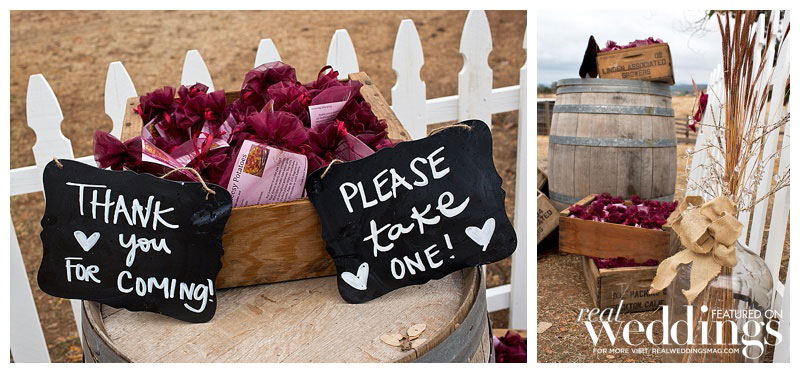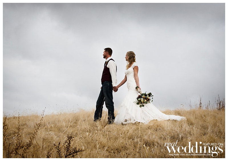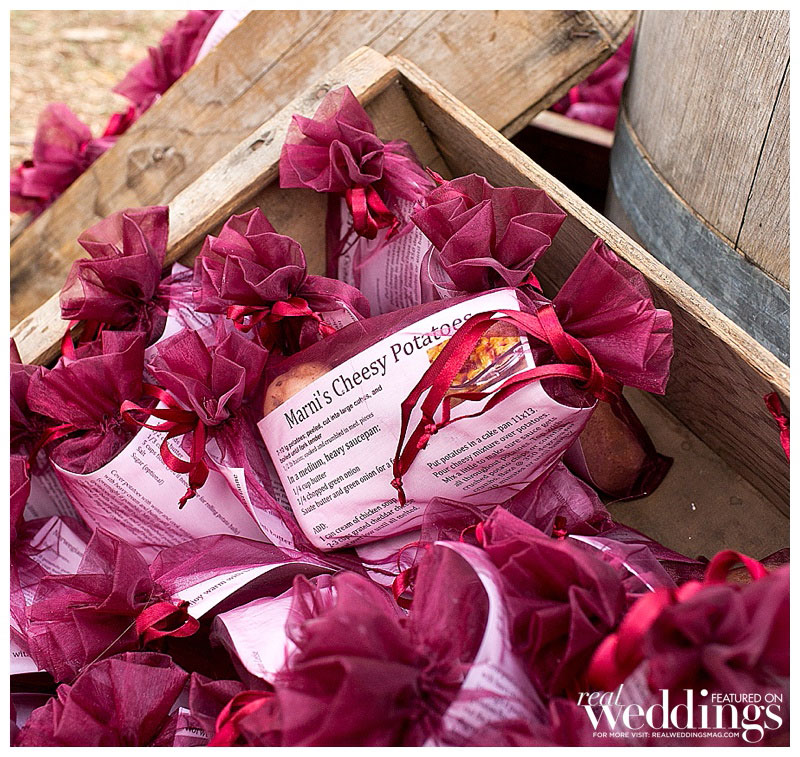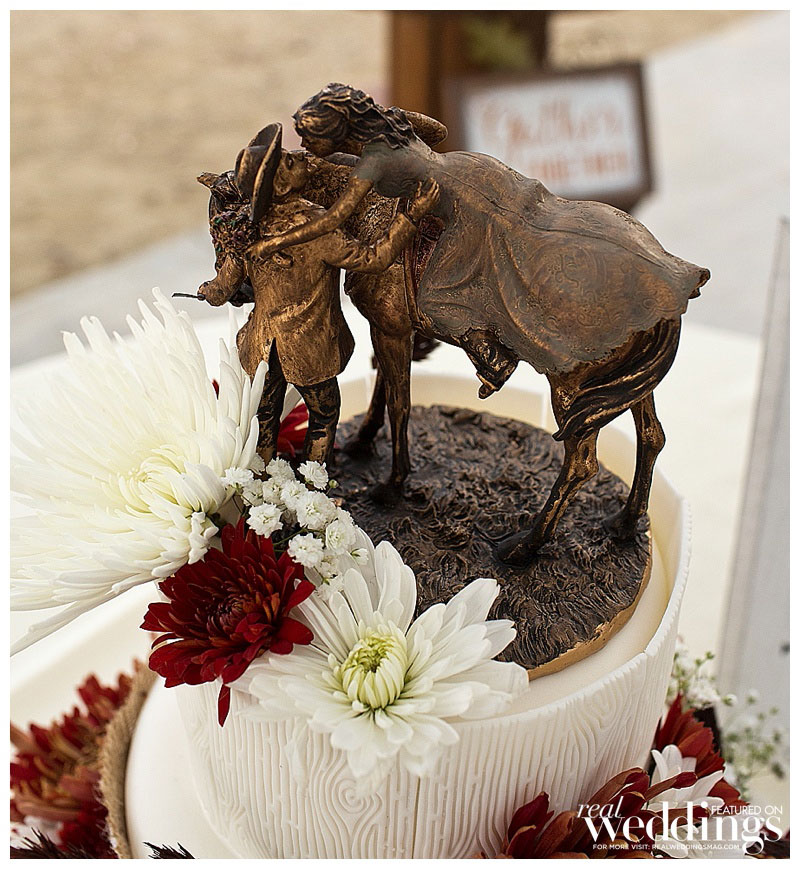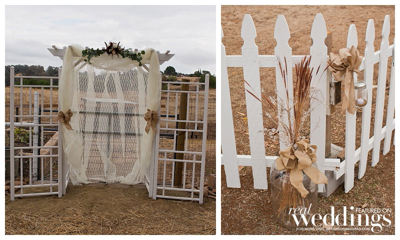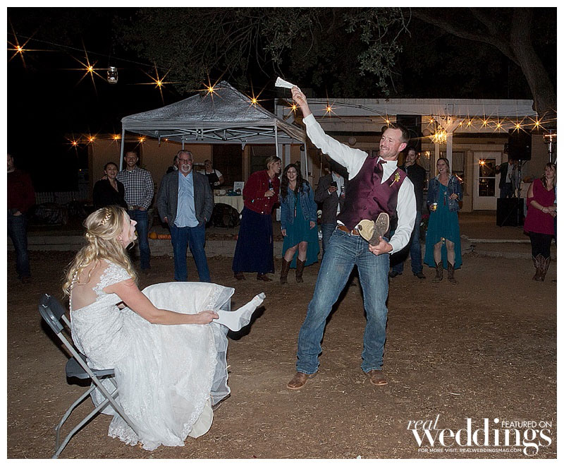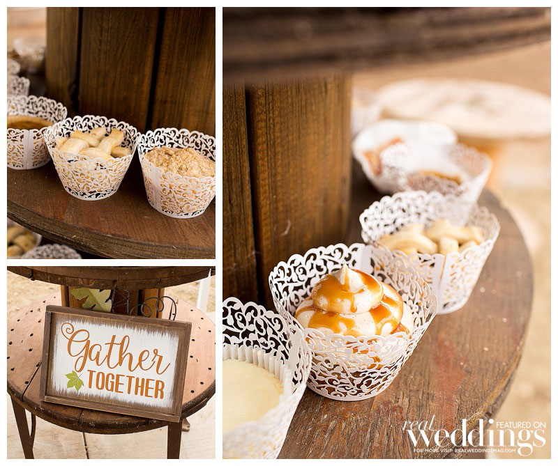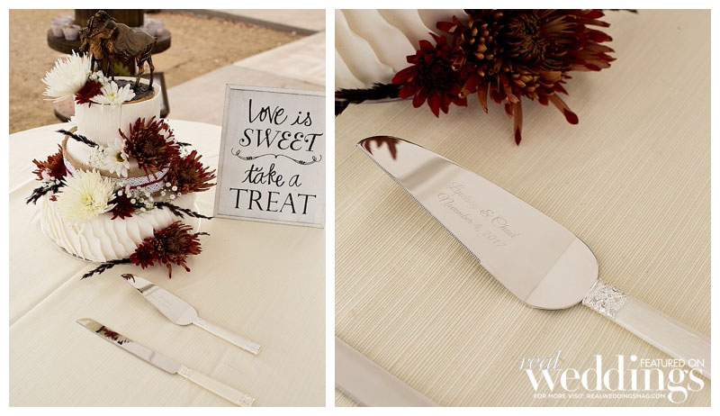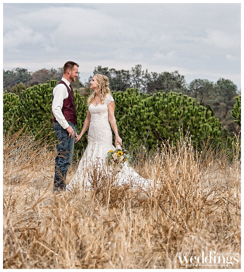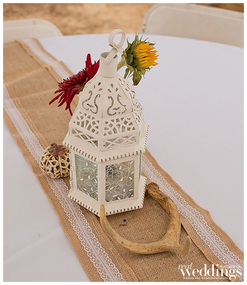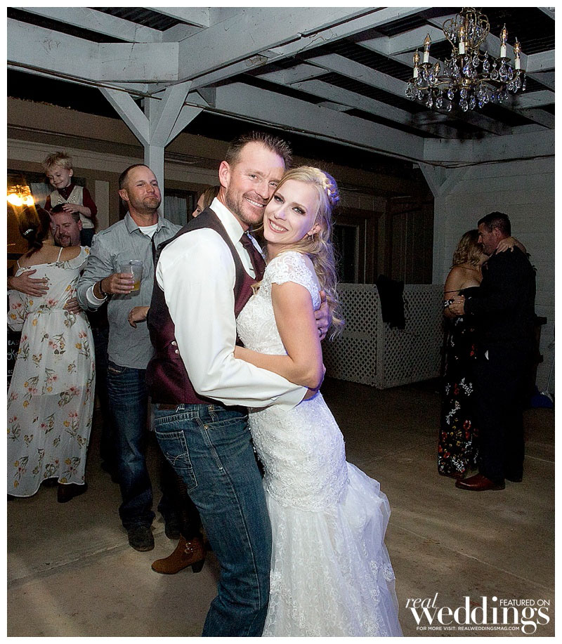 While it rained a little on the wedding day, it didn’t last long. “We even got a rainbow during dinner,” says Lindsey. The menu included barbeque tri-tip and chicken. Lindsey’s friend made the cake, as well as country fall desserts, including mini pies.