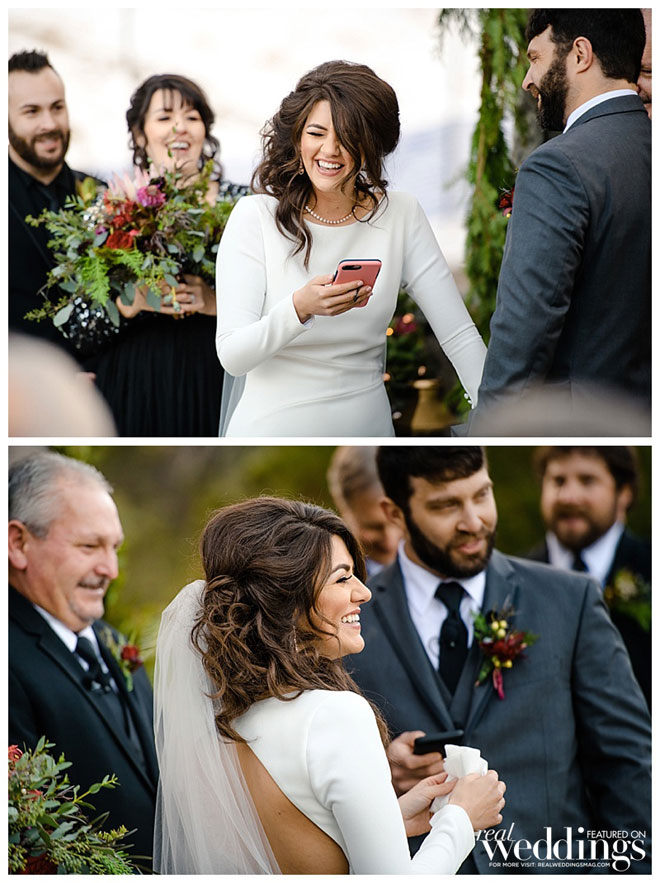 For the ceremony, the couple decided to write their own vows. “I wrote mine while my hair was being done for the wedding,” she admits. “I typed them in my phone and then time slipped away from me. I never had time to transcribe them to paper. Right before the ceremony, I was frantically looking for my phone because I needed my vows. Thankfully, my brother-in-law had it. I had to read my vows from my phone during the ceremony. Funny thing is so did Mark. That is kind of our life…we always meet the deadlines, but things can be a little hectic getting there. I wouldn’t have it any other way.”