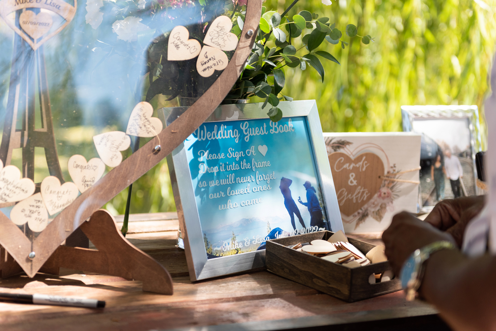 Our favorite part was looking for a venue and sampling the different cakes. The overall planning went smoothly. The hardest part was fine tuning the songs and finalizing the seating arrangements.