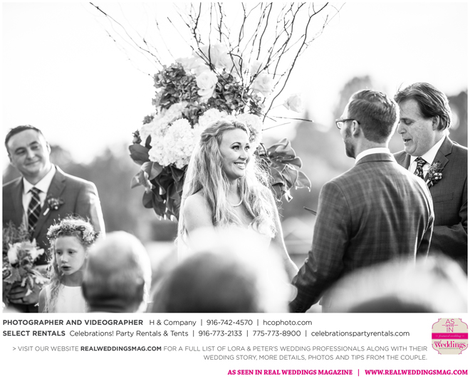 And though it was the most perfect day for Lora and Peter, she couldn’t help but think about the one person who wasn’t there—her dad, who had passed away about nine months before she started dating Peter. “We were so close and it felt strange to not have him be part of the day,” she says. “On the actual wedding day, my brother really helped. He told me how proud he was of me and that Dad would love Peter if he had met him. He then started humming the song I was walking down the aside to, which helped lighten the mood. We were both laughing and smiling as he walked me down the aisle.”