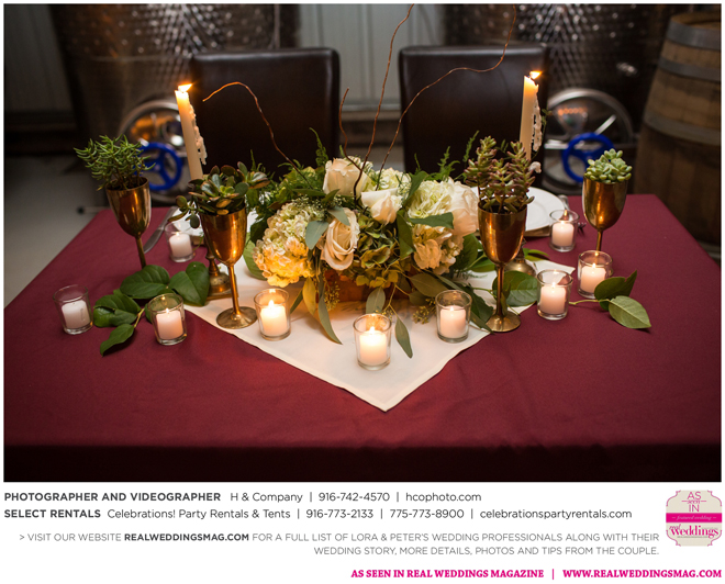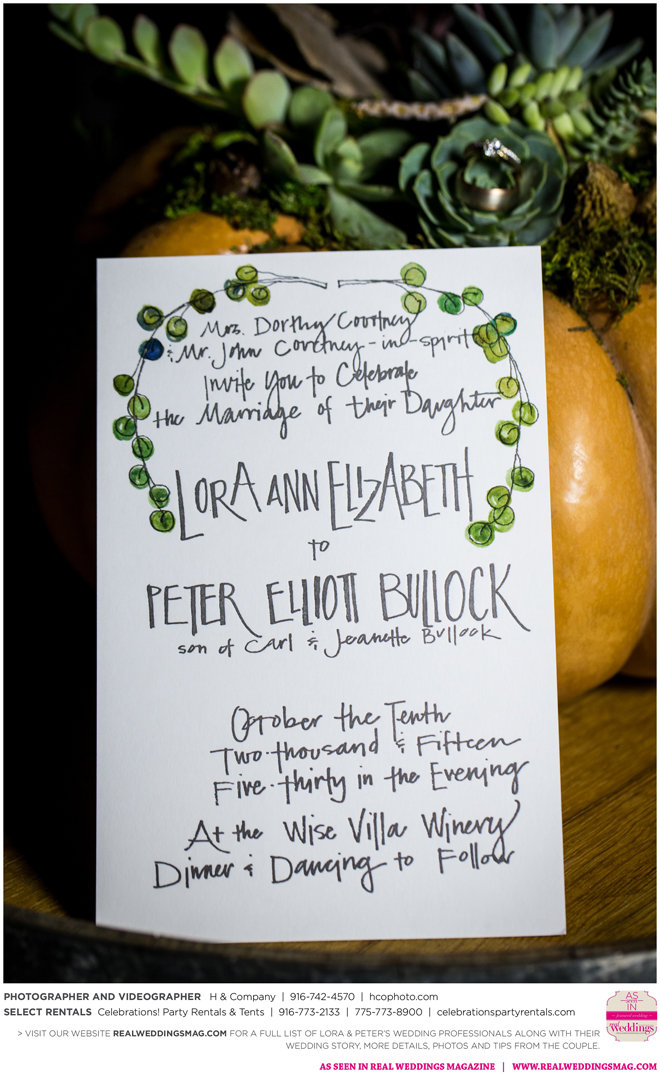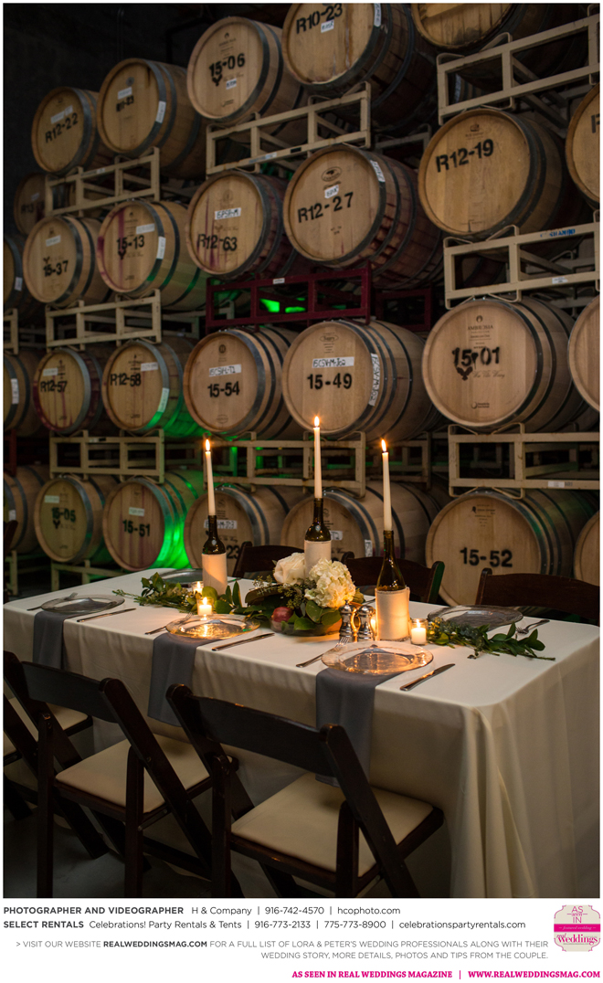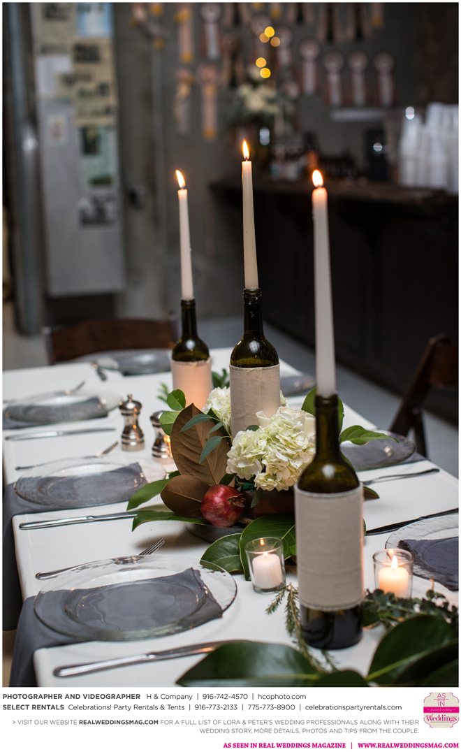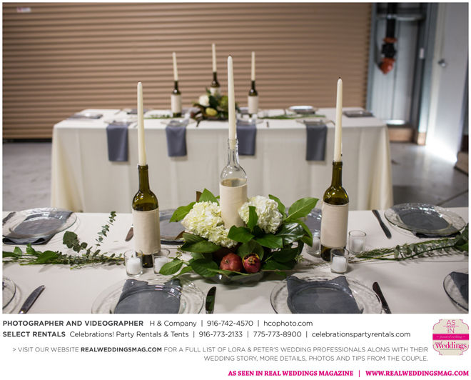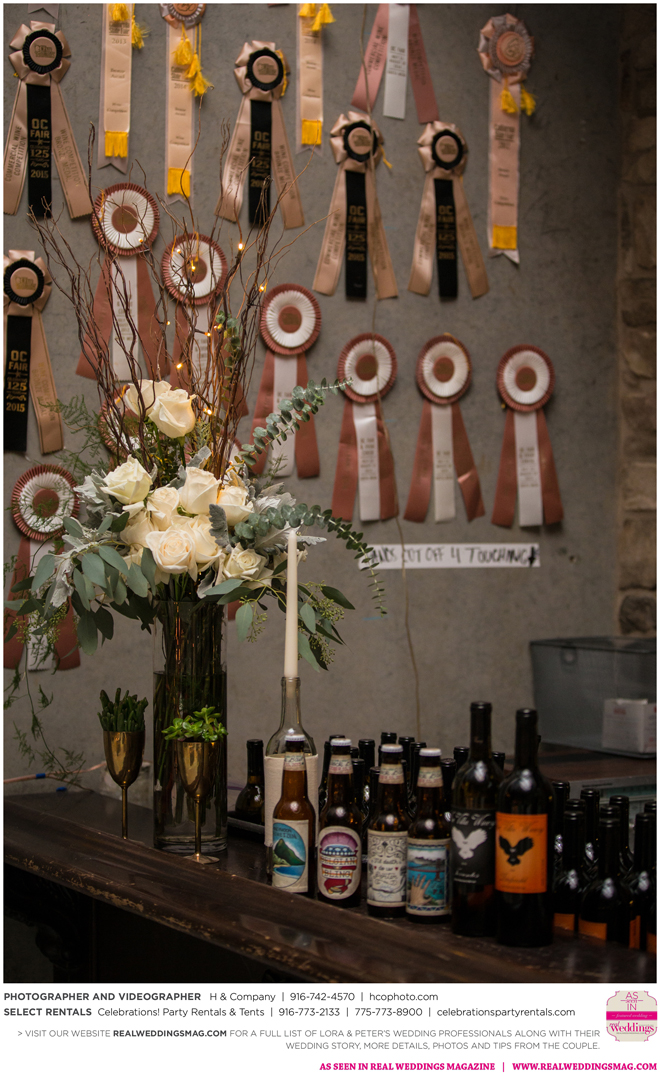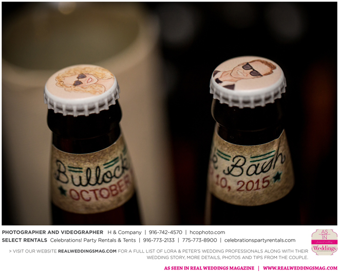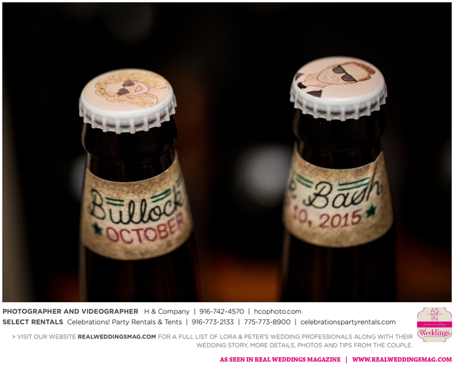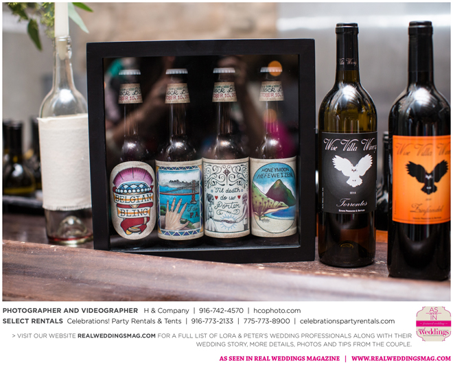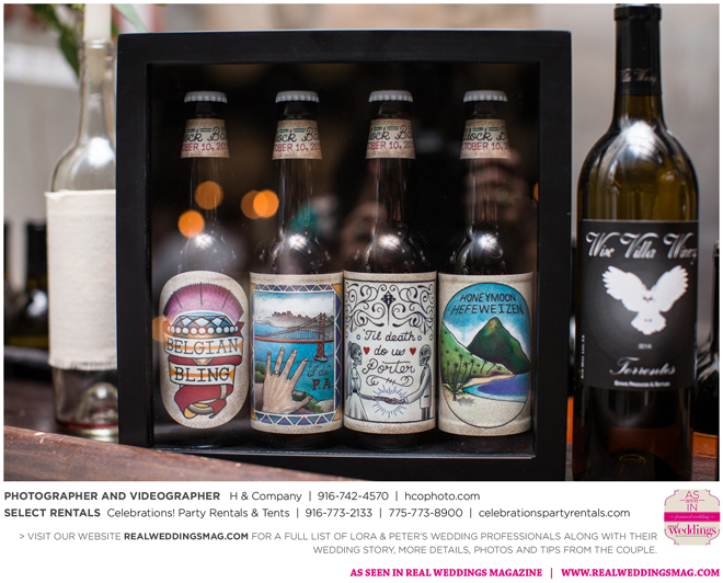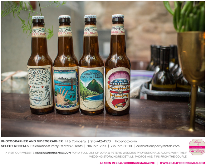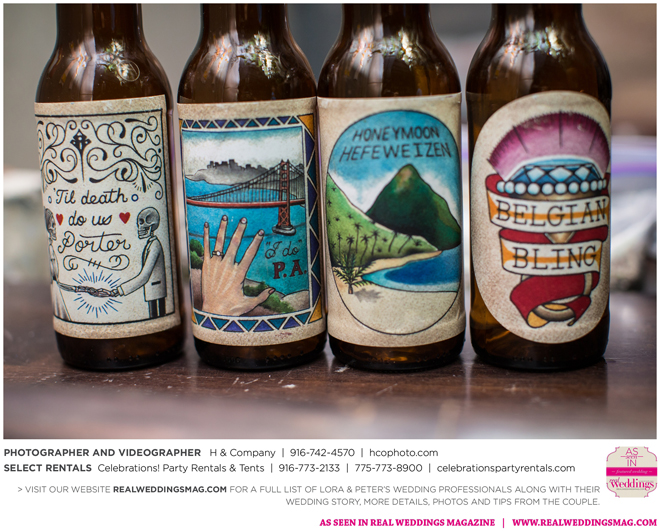 They both agreed to a longer engagement, so they could have more time to find ways to cut costs and stick to their budget, which included many DIY projects—from the invitations to custom beer. “My big wedding project was brewing beer with my buddy Jack,” Peter says. “We got together every weekend for about three months [and] made four batches of different beers—all with a wedding theme. We came up with names like ’Til Death Do Us Porter and I. Do P.A. Another good friend of mine, Poor Jeff, is a tattoo artist in Auburn. He spent his free time creating the labels we used on the bottles. It was a blast getting to spend time with these guys and create something together.”