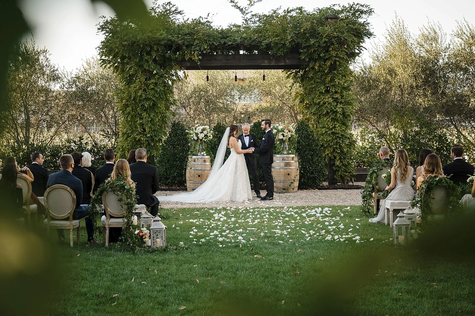 Where to begin?! Our wedding was originally planned to be in New Zealand with a honeymoon in Fiji. I have lots of family in New Zealand and we were so excited about the idea of having all of our loved ones on an excursion somewhere so special to us. With border restrictions we had to cancel that but were determined to keep our date, if possible. We signed with a beautiful venue in Napa and a few more months in that was cancelled due to students using the facility which made COVID restrictions tighter. At this point we just wanted to get married! We used a private home for our final wedding plan and reduced our guest list to 30 people and kept all activity outdoors to make it very safe for those that were able to attend. We ended up putting together the whole wedding in less than two months and since it was no longer all inclusive style venue, we had to find almost all new vendors! The whole process was an emotional and wild whirlwind but at the end of the day it turned out to be absolutely perfect! I know so many people went through changes this year, and there are much bigger things going on in the world so I really don’t mean any of our story as a complaint, it just threw a lot of unexpectedness our way in the planning realm. We were so lucky we were still able to get married and feel genuinely happy with our day!