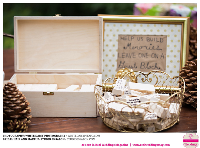 In lieu of a guest book, the guests signed custom made Jenga blocks purchased on Etsy.com at a store called WoodPower.