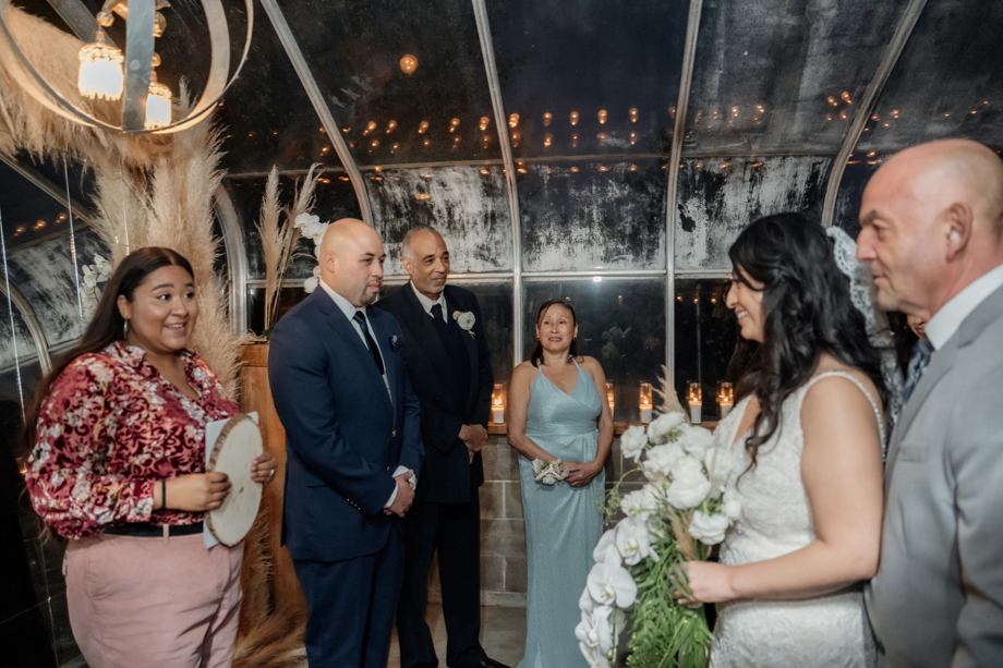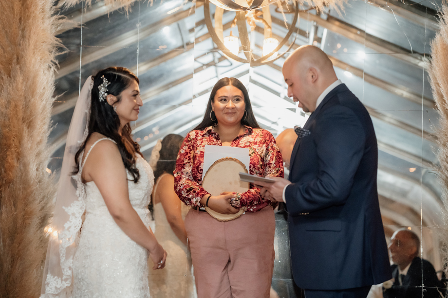 The bride’s cousin (Lupita) designed a beautiful ceremony and she got ordained just for us! Everything was intimate and we got married in the evening surrounded by candle light. We had a special tribute space for our loved ones who had passed as we wanted to include them, it was beautiful.