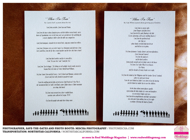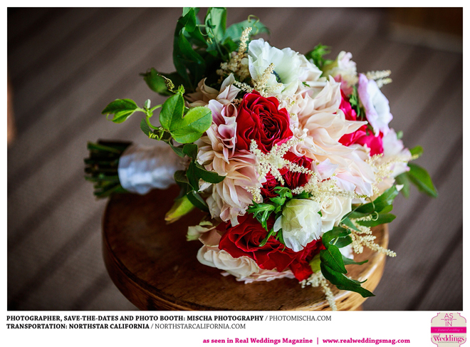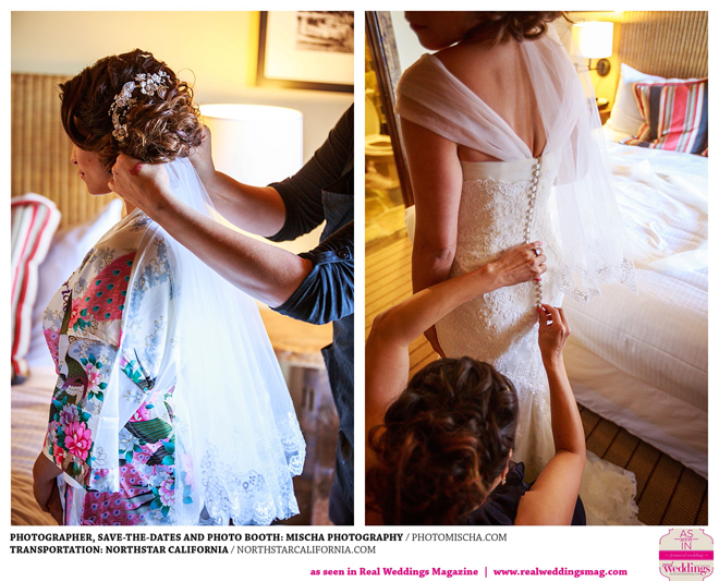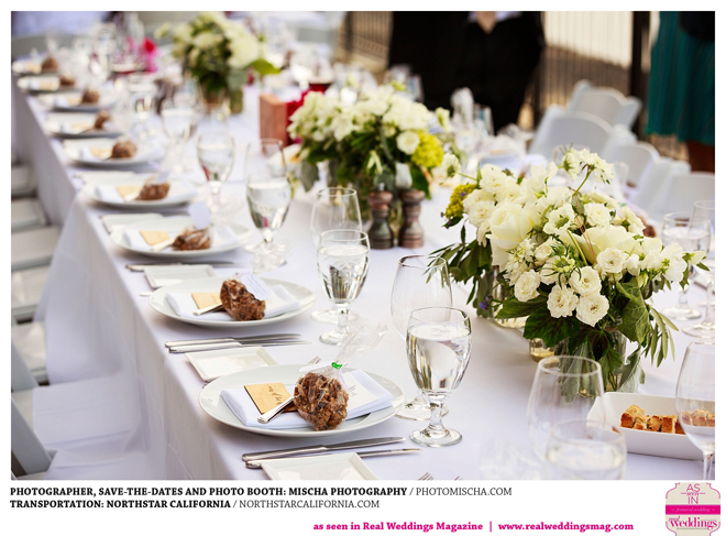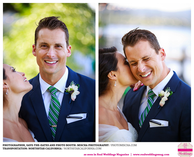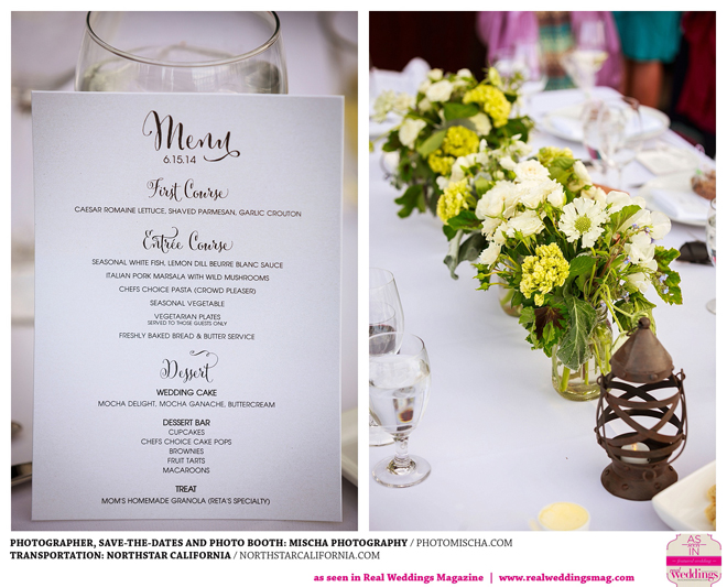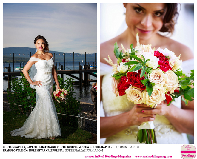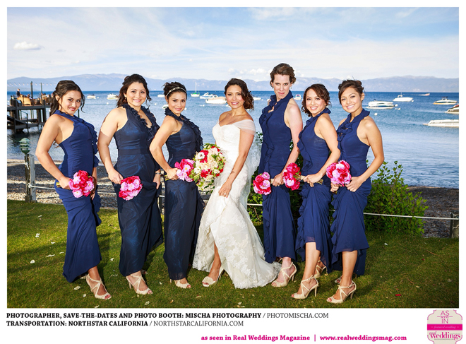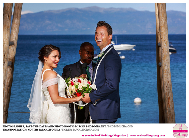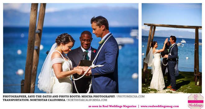 That beautiful blue sky took them to Lake Tahoe, where they wed in an intimate ceremony on the waterfront. Their officiant—brother-in-law Tim—blended traditional readings and personal stories for just the right balance. “We also had our parents join in by doing the Filipino lasso ceremony,” shares Marie. “It’s similar to a unity candle, but instead you take white rope and tie it into a circle, then both sets of parents put the lasso around the couple—in the form of an infinite circle or figure 8—so the bride and groom are both standing in the smaller circles made from one large circle.” This proved much more meaningful to the couple, as Marie’s parents enjoyed the same tradition in the Philippines 42 years prior.