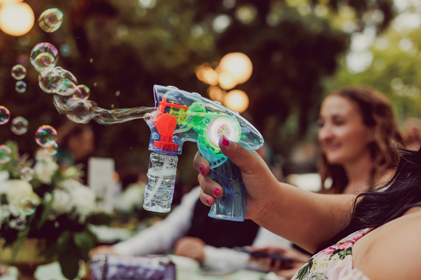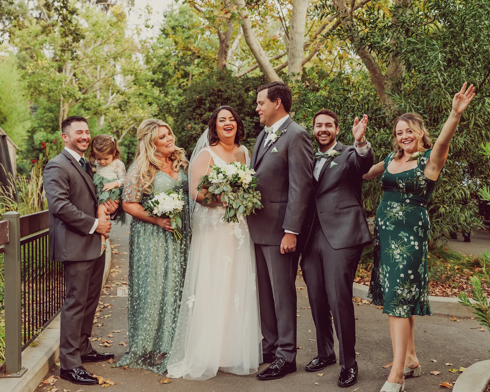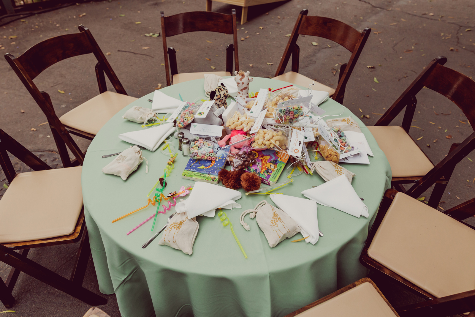Our flower girl fell asleep five minutes before the ceremony started. Rather than risk a toddler tantrum, her dad stepped in and carried her down the aisle, tossing petals along the way while she slept peacefully through the whole thing.