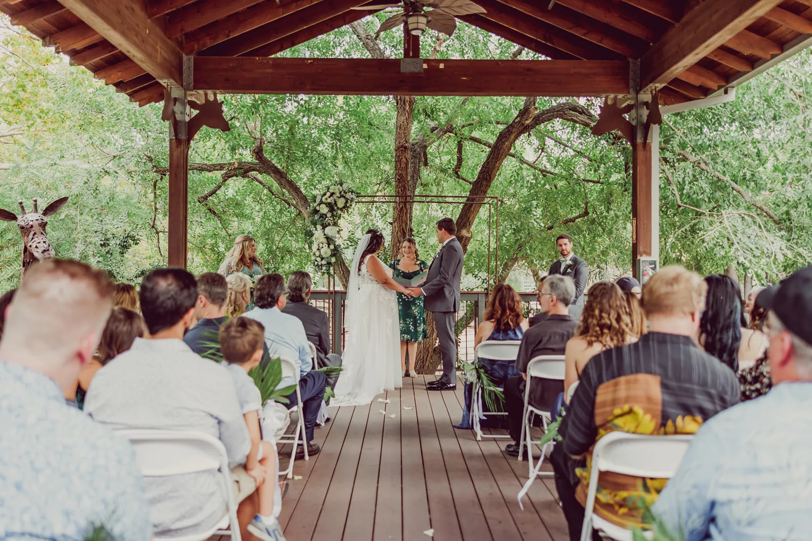 It was perfect. Our best friend of 17 years officiated for us, and we had my brother, Joseph, as best man and Austin’s sister, Lacey, as maid of honor. It was a short and sweet ceremony, surrounded by the giraffes and zebras, beautiful trees, and all of our family and friends.
