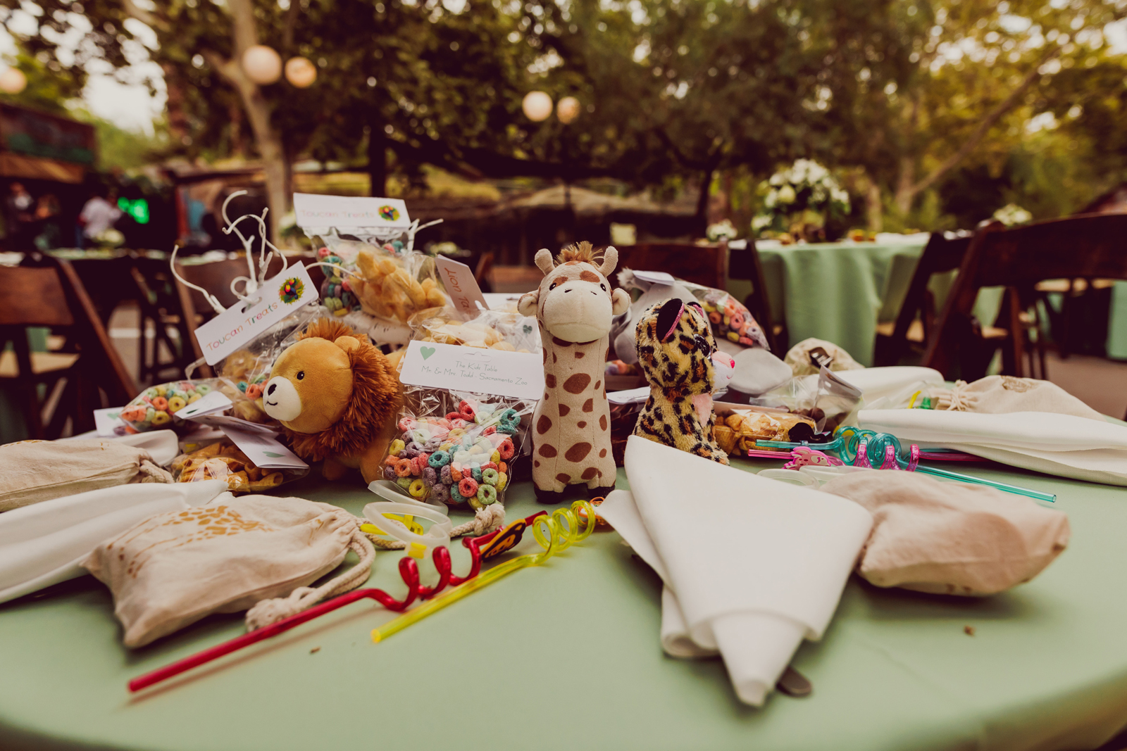 Austin: It was important to us that we got to partake in cocktail hour. We wanted to see everyone enjoying the unique parts of our venue. We took all our family photos before the ceremony so that we could enjoy cocktail hour with our guests. It turned out to be one of my favorite parts of the day, enjoying the carousel and the animals right along with our friends and family.