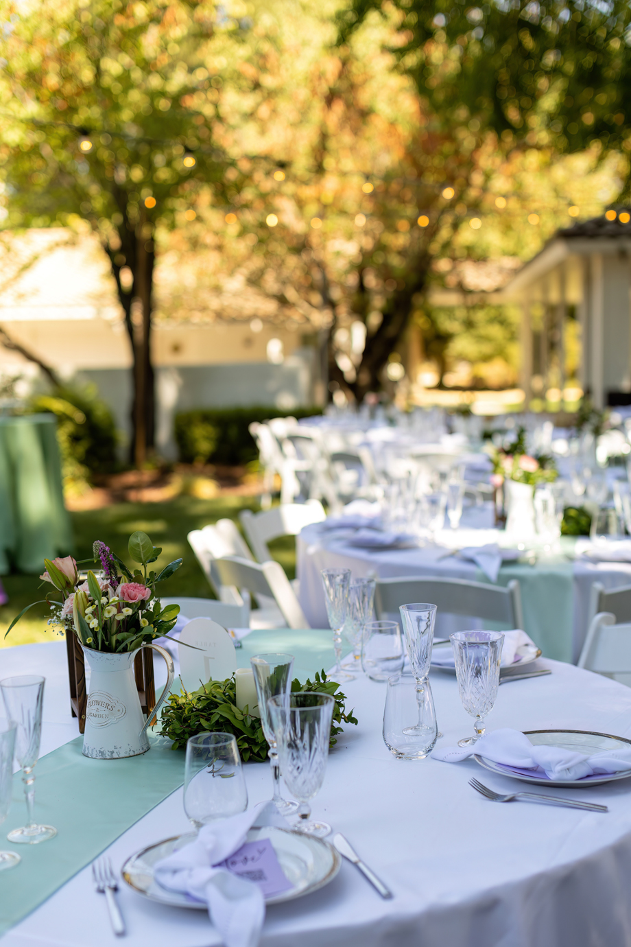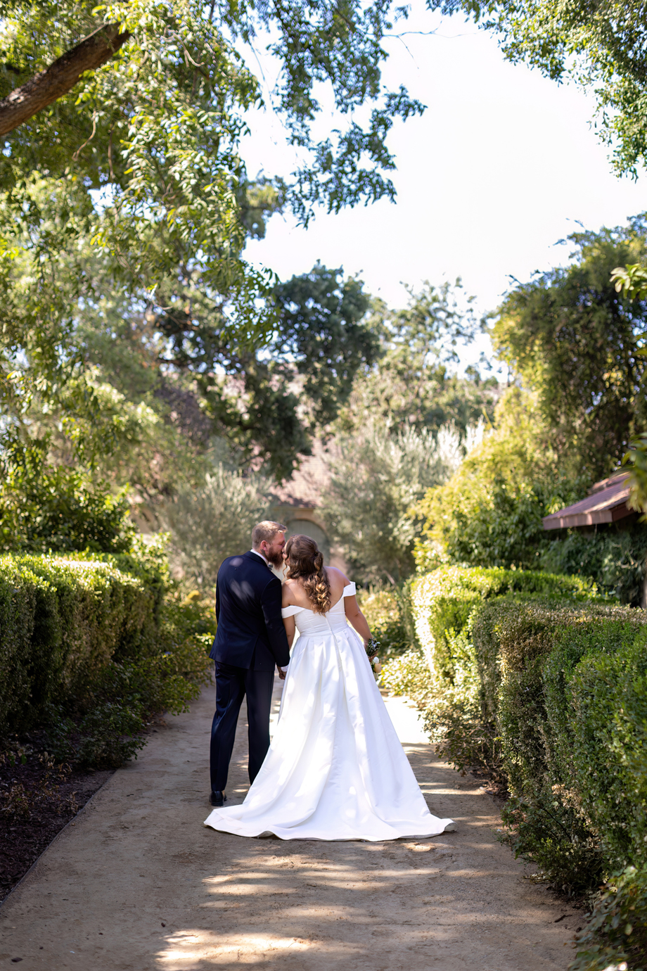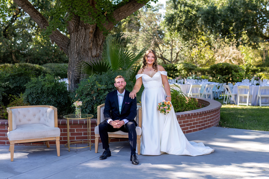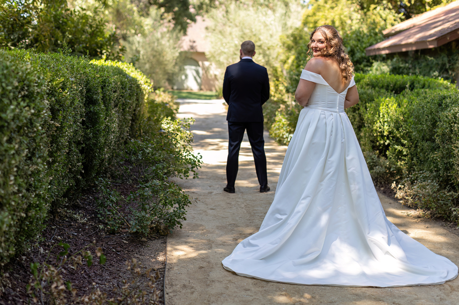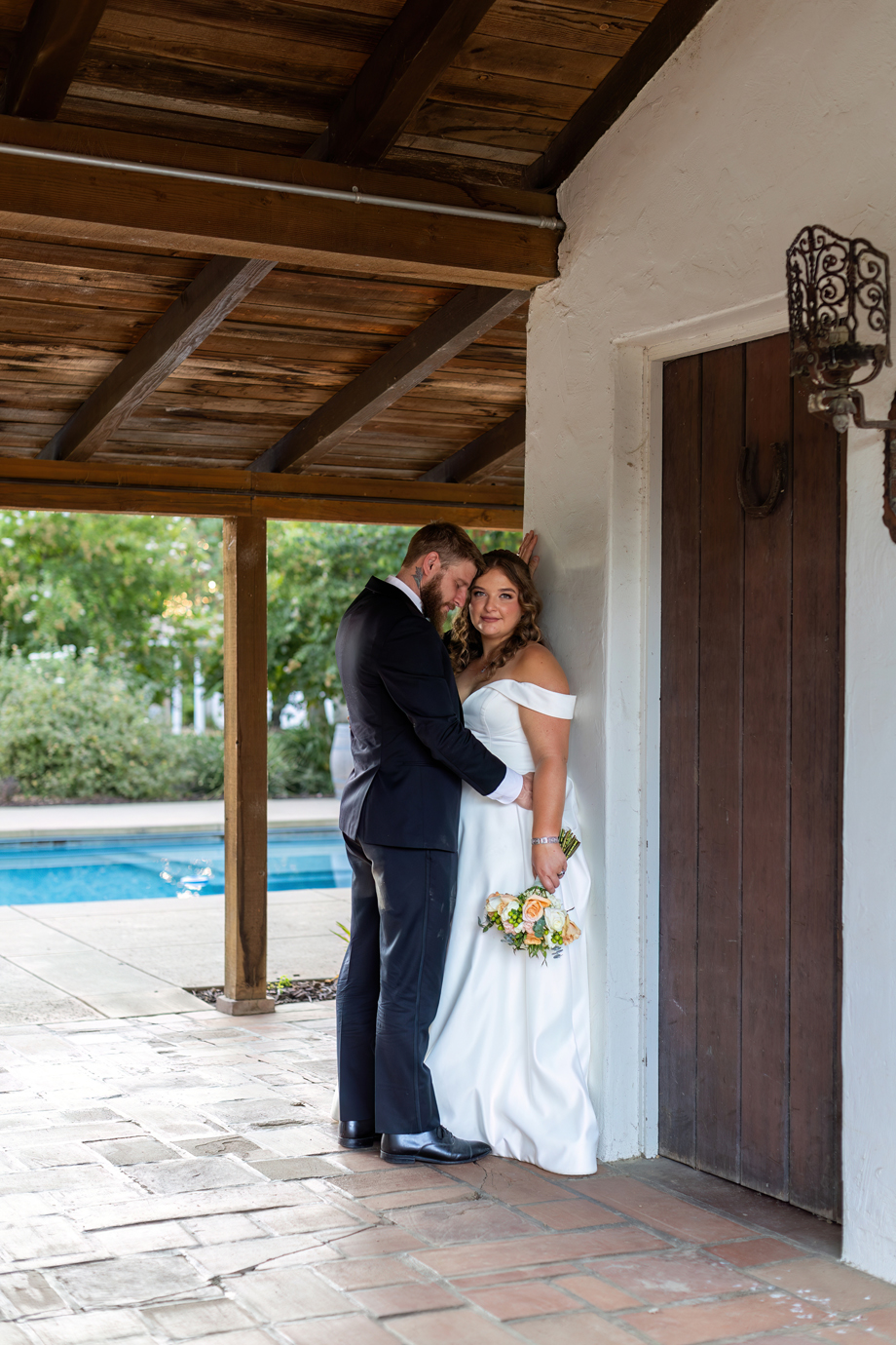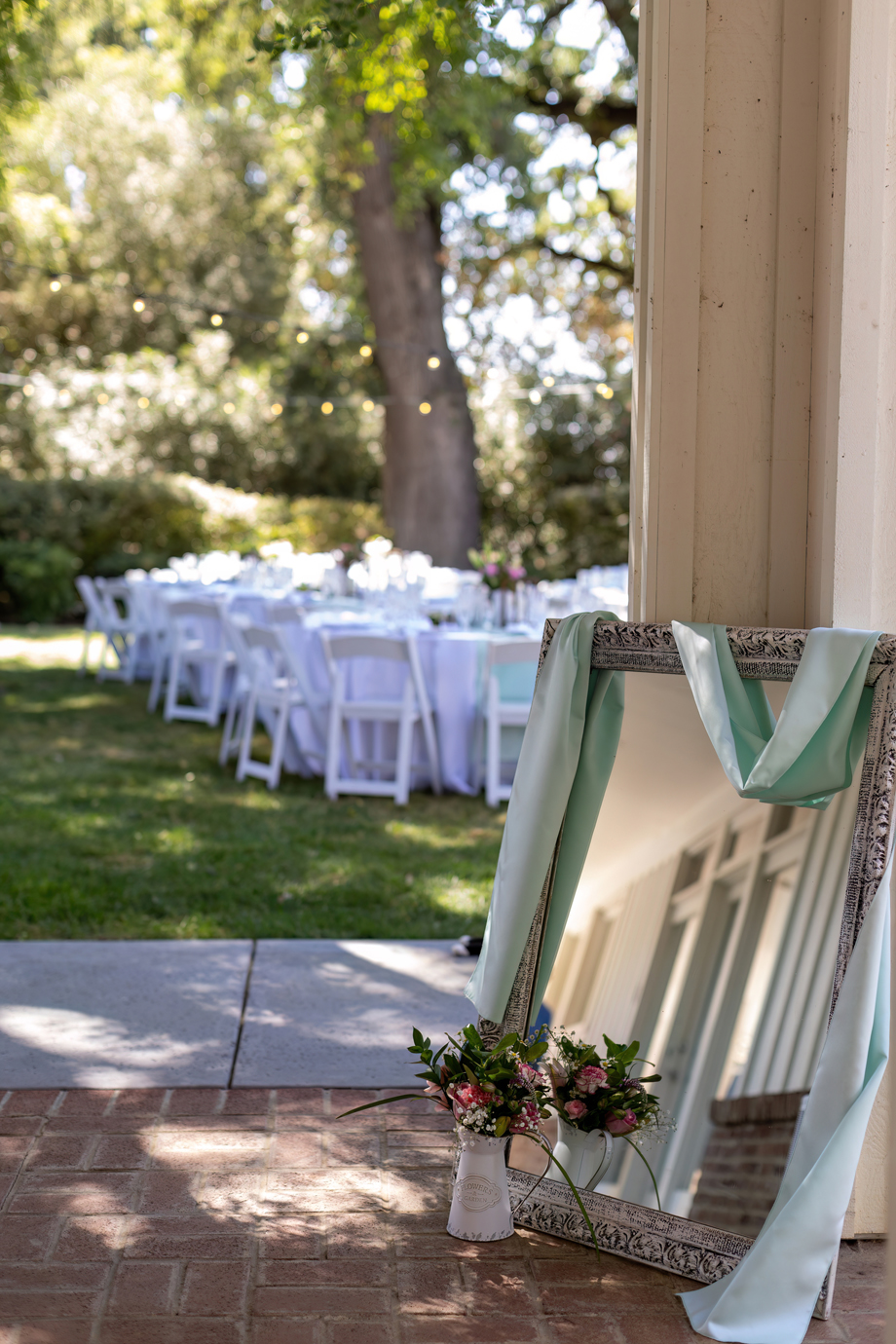 The backdrop of the ceremony—standing on the stairs with the symmetrical pool and house in the background.