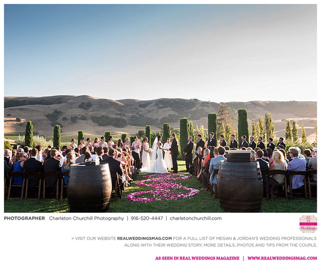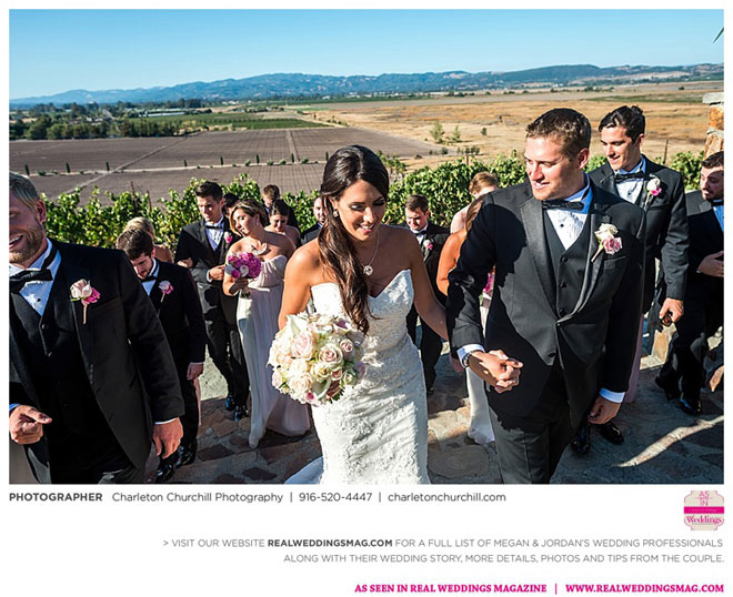 The couple spent a lot of time and effort writing their own vows and was fortunate enough to have a close friend officiate the ceremony, which “was picture perfect,” says Megan. “It was the most beautiful day outside, and the backdrop was simply stunning. Jordan and I are such winos and the Napa/Sonoma area held a special place in our hearts—we were so blessed to be able to share that special place with the people we love the most.”