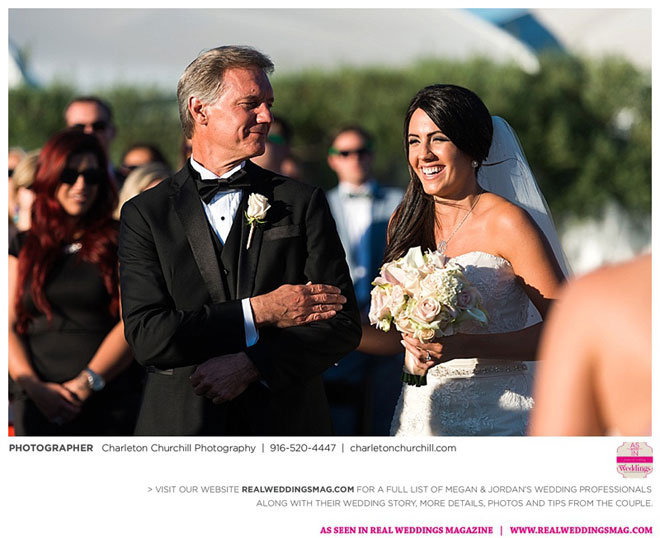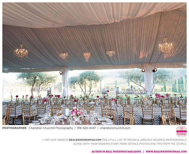 Though not the initial plan, the couple decided on a destination wedding for their big day. “Nothing struck a chord until Jordan mentioned Napa, and after that we couldn’t get the idea out of our heads,” says Megan. Viansa Winery in Sonoma allowed their guests to experience the tastes, sounds and views of one of their favorite vacation destinations. “The venue we chose provided a gorgeous backdrop for the ceremony and a fantastic selection of food, wine and aperitifs, while the onsite open-air tent allowed for a quick and seamless transition between the ceremony and reception,” notes Jordan.