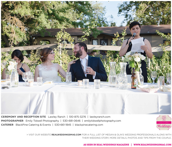 His persistent presence must have finally paid off, as the two soon became college sweethearts. Fast-forward to summer 2015 and the couple went for a ride on the Davis Bike Loop. “I thought he was helping me cross-train for the CIM (California International Marathon), which I was running in December,” she remembers. “The loop goes around the park where we had our first date, and when we got there he asked to pull over.” Though at first she thought he may not be feeling well, the sparks began to fly when he said, “Do you remember this park?” Megan shares. “I pretty much knew what was happening.” After saying he wanted to spend his life with her, Olin whipped the ring out of his bike bag and the rest is history.