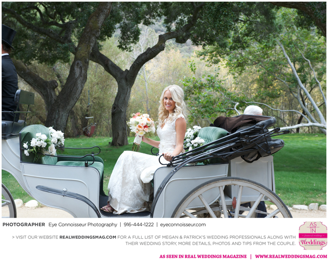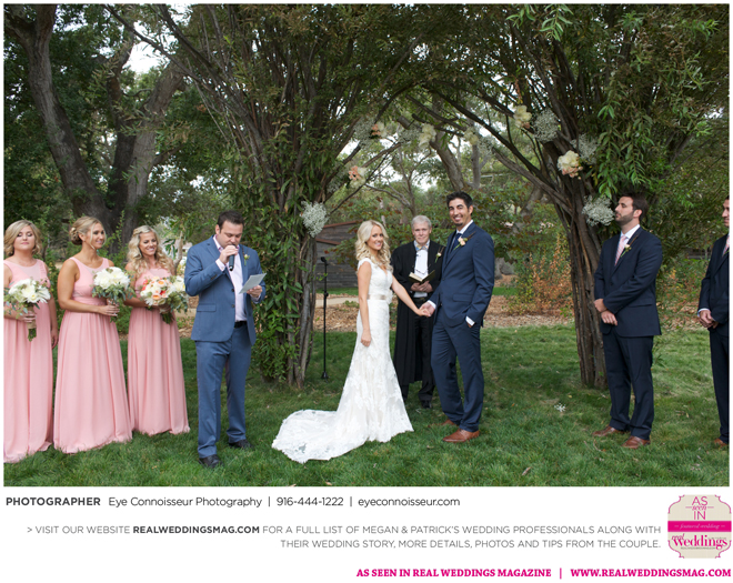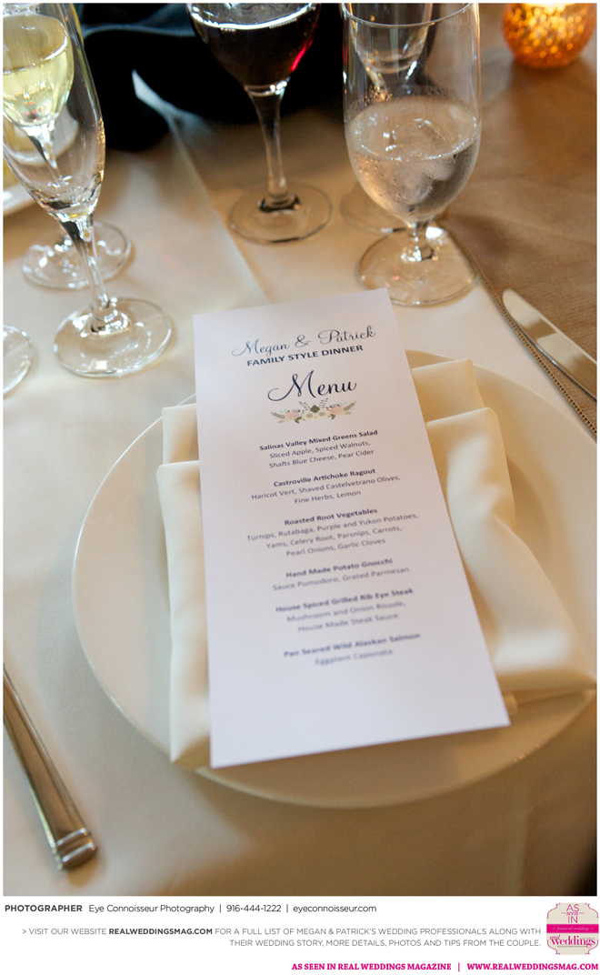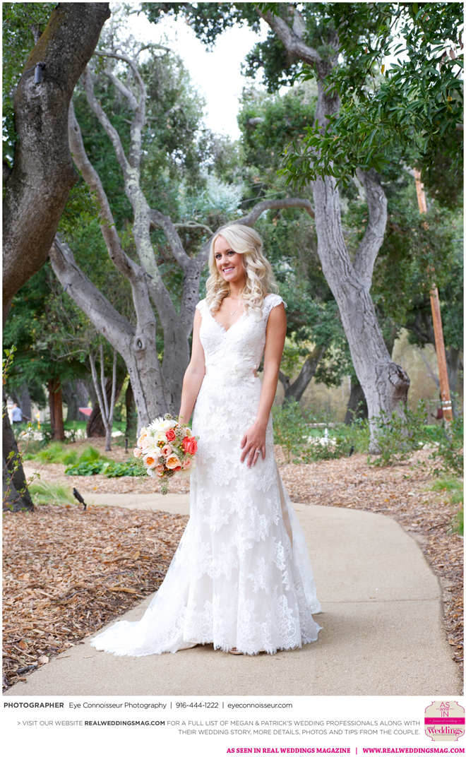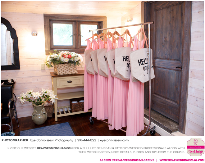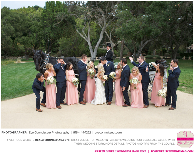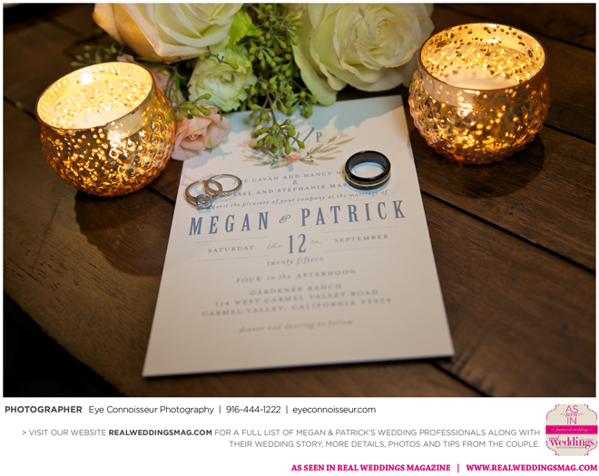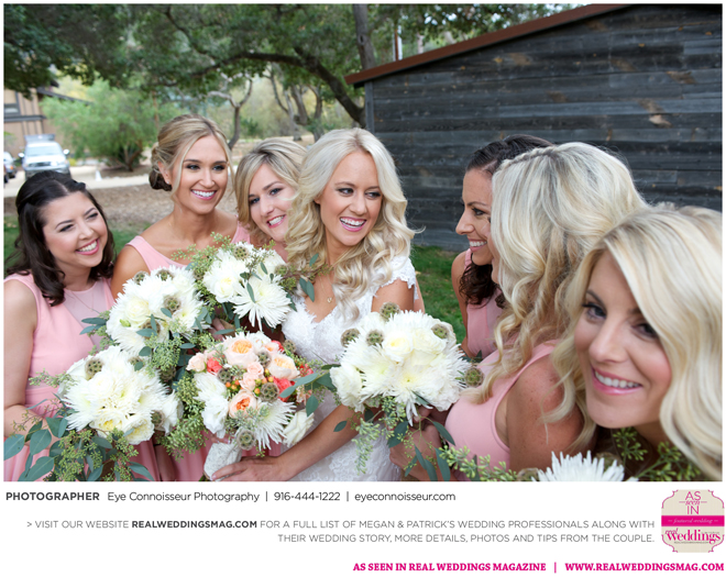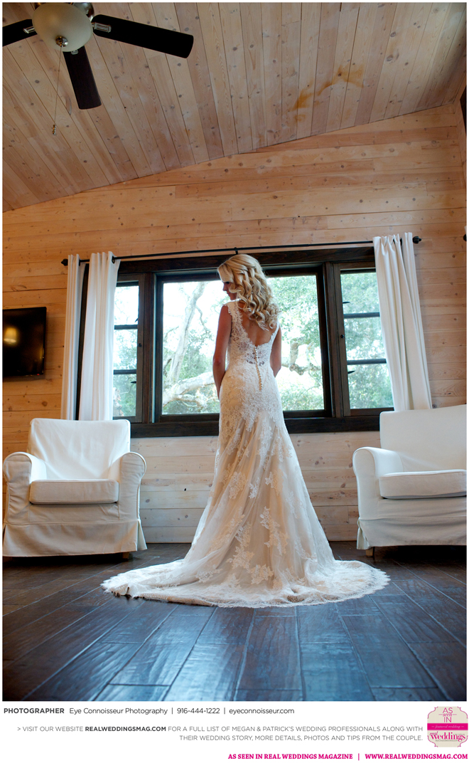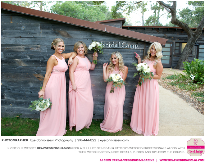 The couple immediately agreed on a fall wedding, which gave them less than a year to plan. Megan dived into the research, hoping to secure a venue first. “Since Northern California is so beautiful in the fall, I quickly realized that finding a venue was a little more difficult than I thought it would be. Several venues were booked more than a year in advance,” she says. They soon found Gardener Ranch. Megan loved the “Bridal Camp,” where she and her bridesmaids stayed to get ready. “We had our glam squad from early on in the morning—it was one of the highlights of the day,” she says.