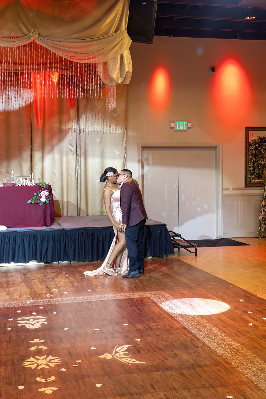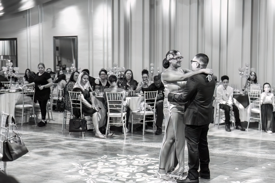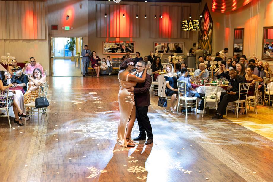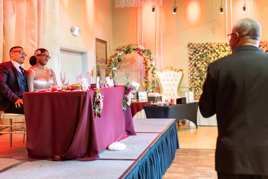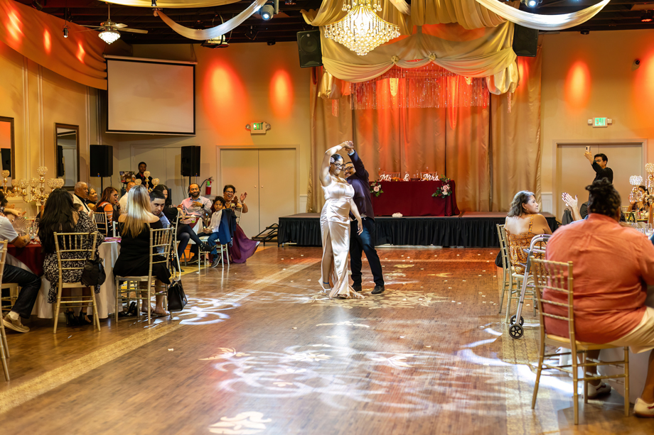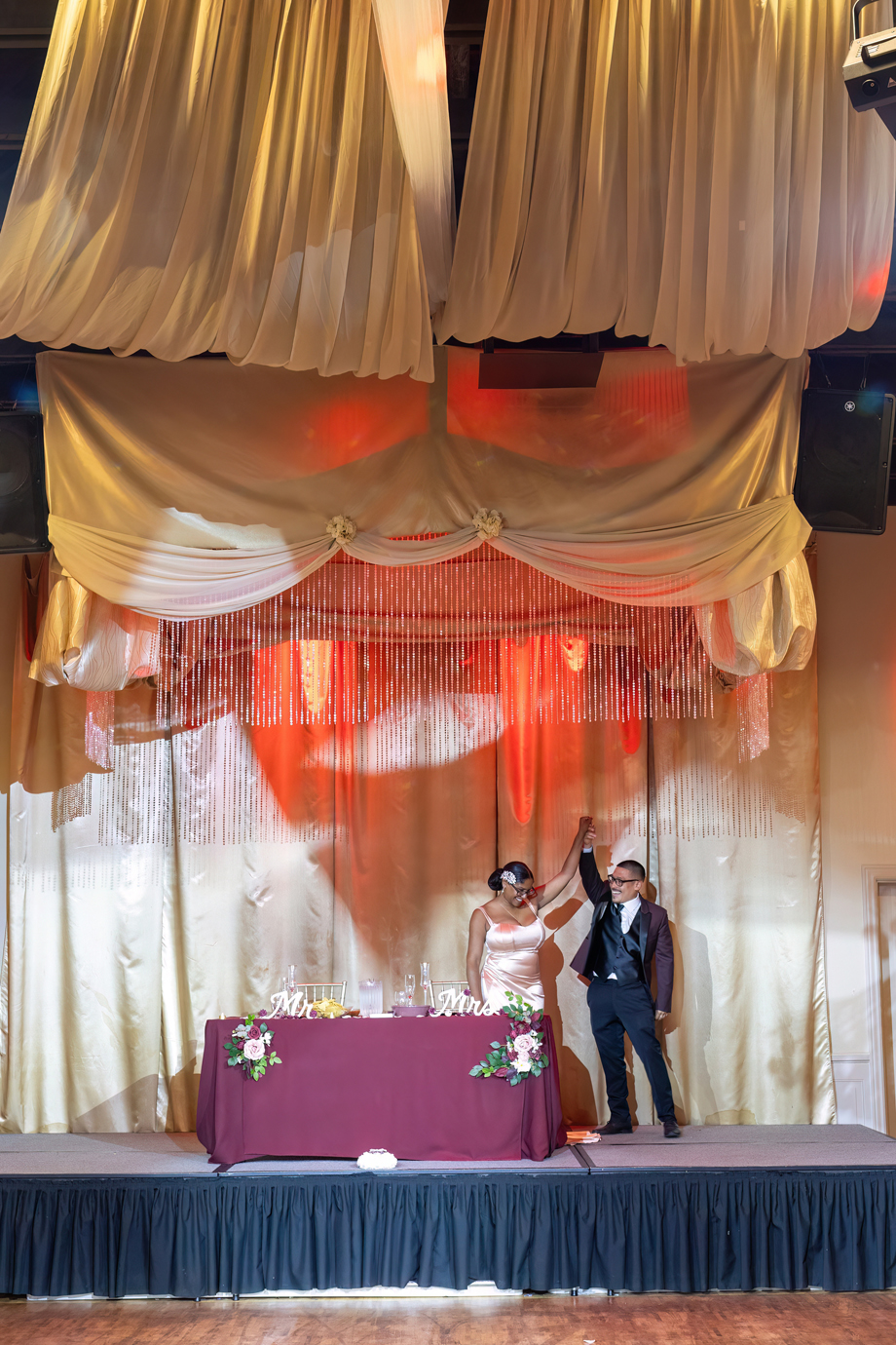 Melanie & Irwin: Seeing everyone else on the stage after walking into the reception.