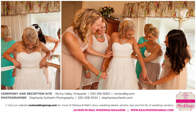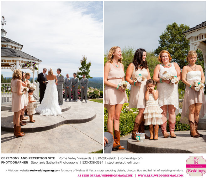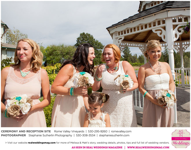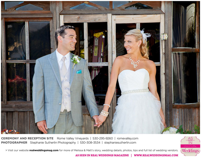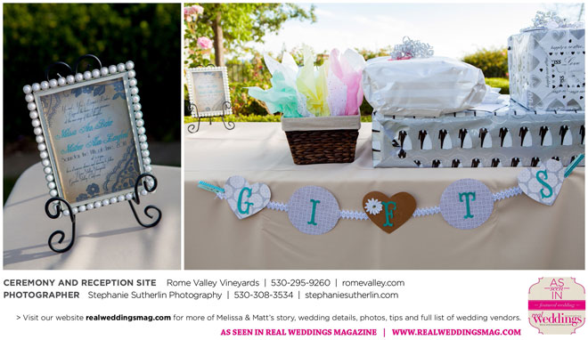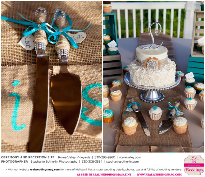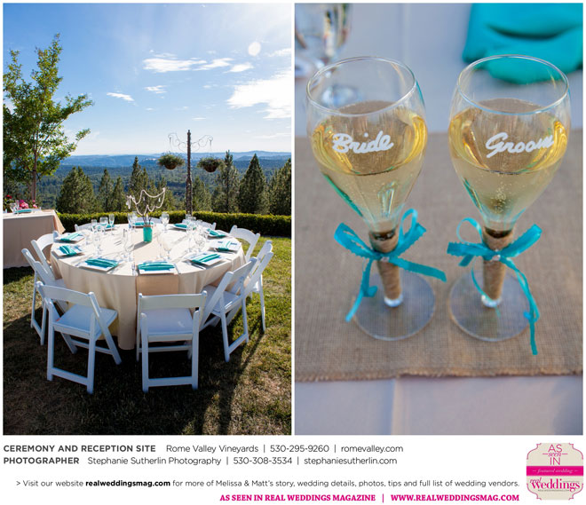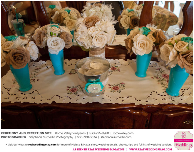 When Melissa, a teacher, and Matt, a project manager, decided to tie the knot, the pair wanted something that would reflect their easygoing nature and creative side. Choosing to go with cool aqua, classy grey and casual burlap, they set out to create a relaxed country-inspired wedding. Melissa considered herself to be a carefree bride. “I knew I wanted some things, but I would never stress over them,” she says.