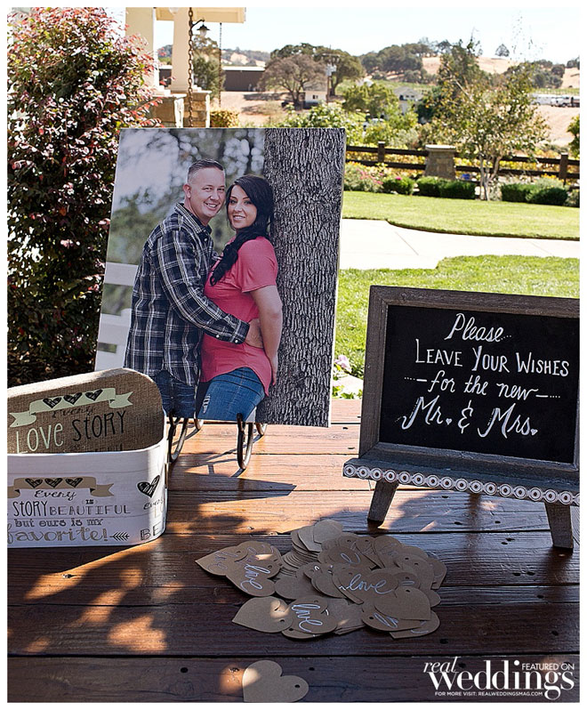 “We fell in love with the 200-year-old oak tree location they have available for the ceremony,” says Melissa, explaining she and her groom wanted an outdoor setting for the ceremony and a vineyard and rustic barn setting for the reception.