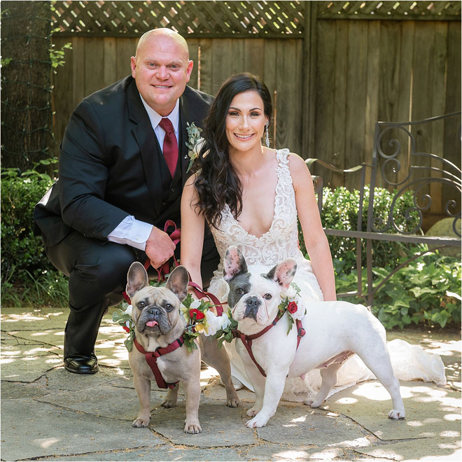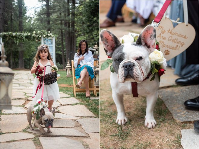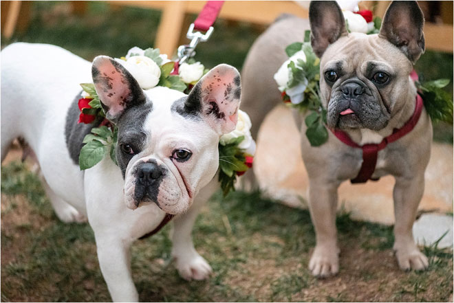 The couple wrote their own vows, and the wedding was small and full of family. Forrest’s brother acted as officiant, Michele’s mother had a moment to pray for their marriage, and their nieces and nephews all had special roles to play, including walking the couple’s beloved French bulldogs down the aisle.
