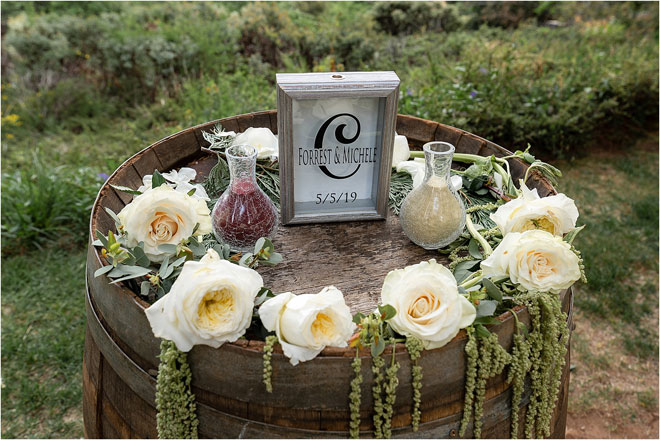 Another (regrettably) unforgettable part of their wedding day was the fact that Forrest ended up with the flu. “During dinner at the reception, we had to run up to the room he was feeling so ill,” Michele says. “After about 10 minutes of rest, he got up, put his vest back on and made his way back down to the reception. I was shocked and so incredibly thankful that he made it through the reception feeling so sick for one simple reason: me.”
