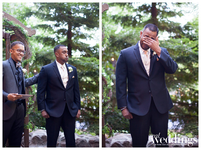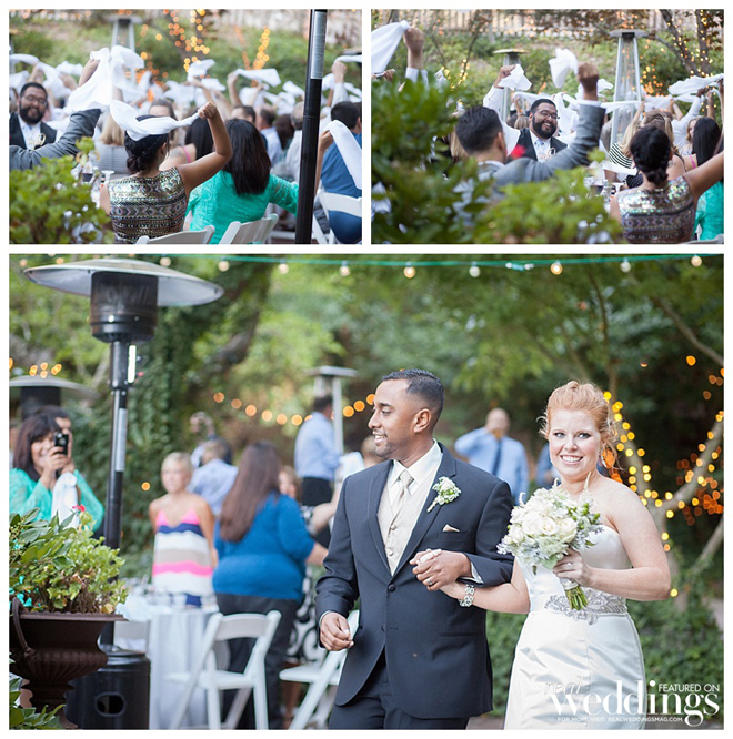 After their “I do’s,” the newlyweds walked back up the aisle together to the song, “Signed, Sealed, Delivered I’m Yours.”