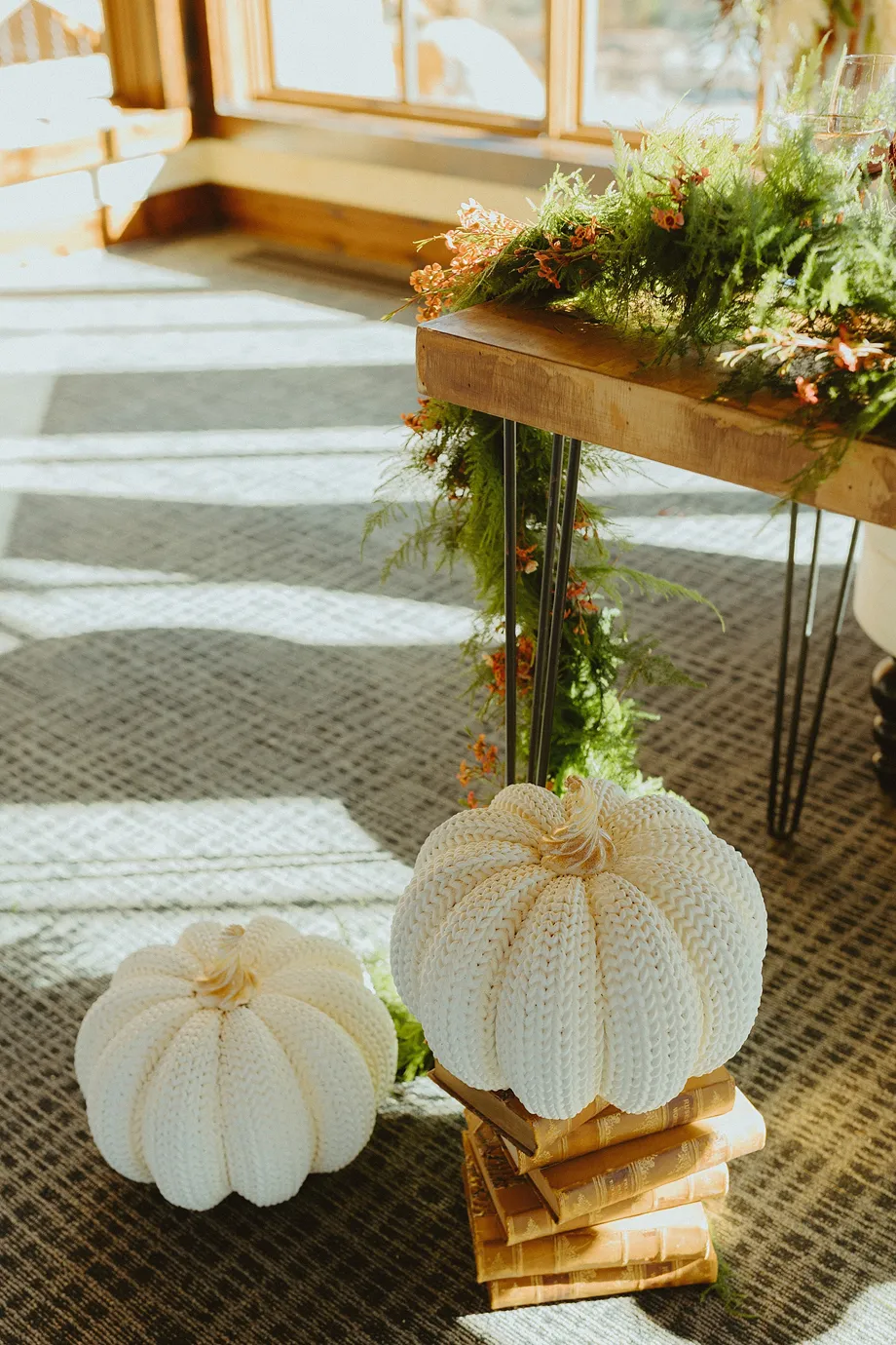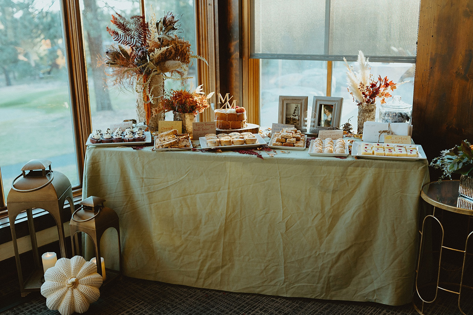 We also loved our moon arch, glass pumpkins and vintage book centerpieces. We definitely wanted to bring in some fall, Halloween-y vibes to our decor as a nod to our dating anniversary, which is October 31.