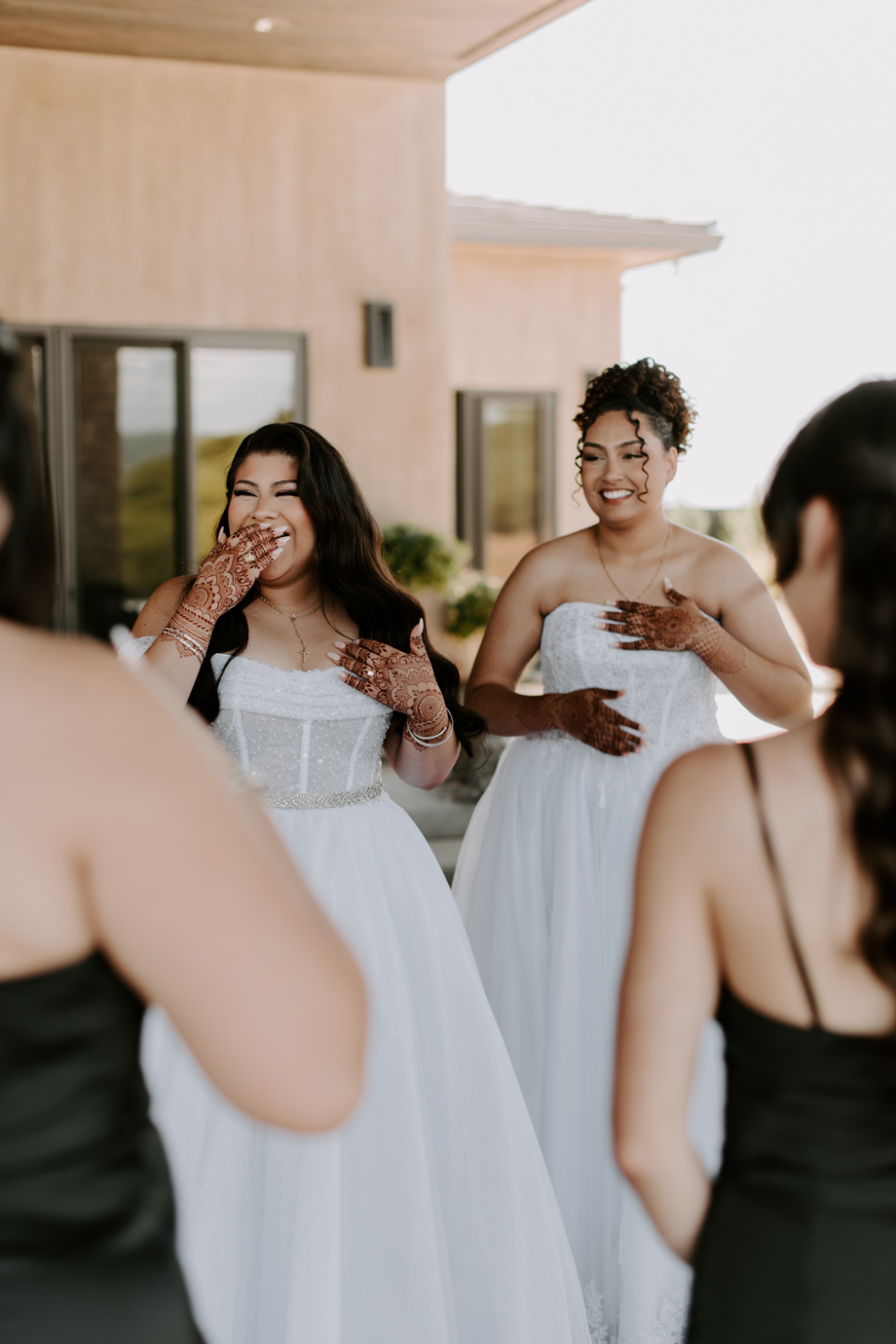 The ceremony felt intimate and surrounded by people who we loved, and who loved us. It felt very special to see so many faces that were smiling from ear to ear and teary-eyed. As we would have guessed, we both wrote heartfelt vows, with jokes catered to us. Najia surprised Stephani with saying her vows in Spanish so all of her family could also understand. It was arguably one of my favorite parts of the entire day (Stephani).
