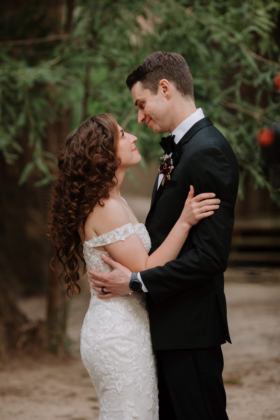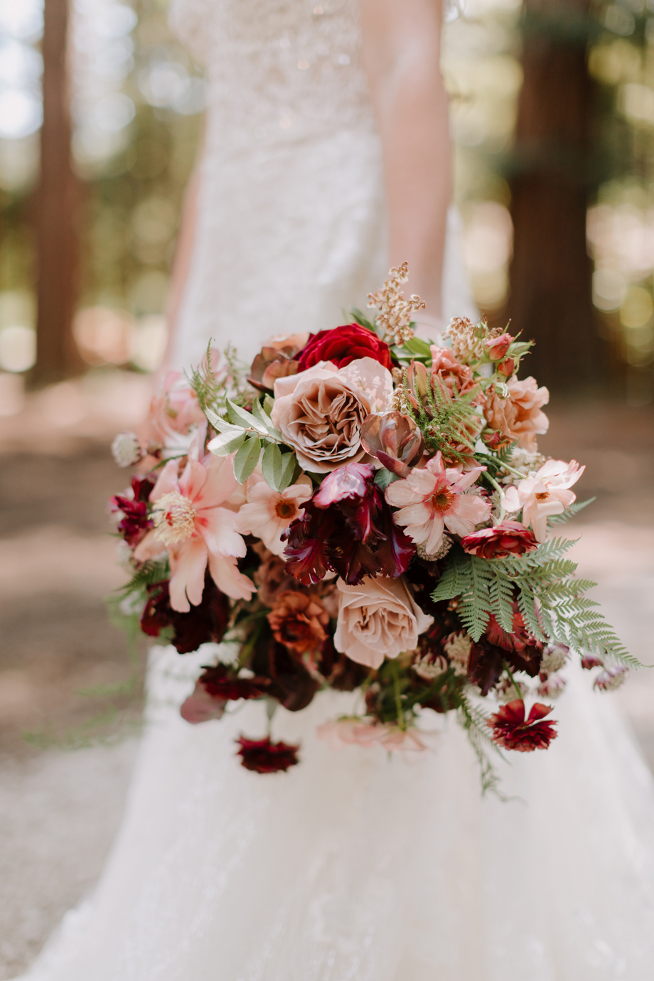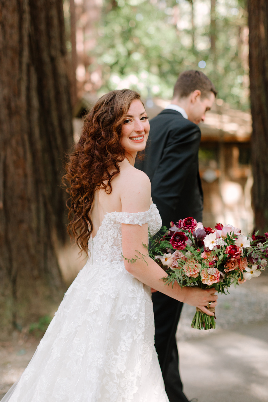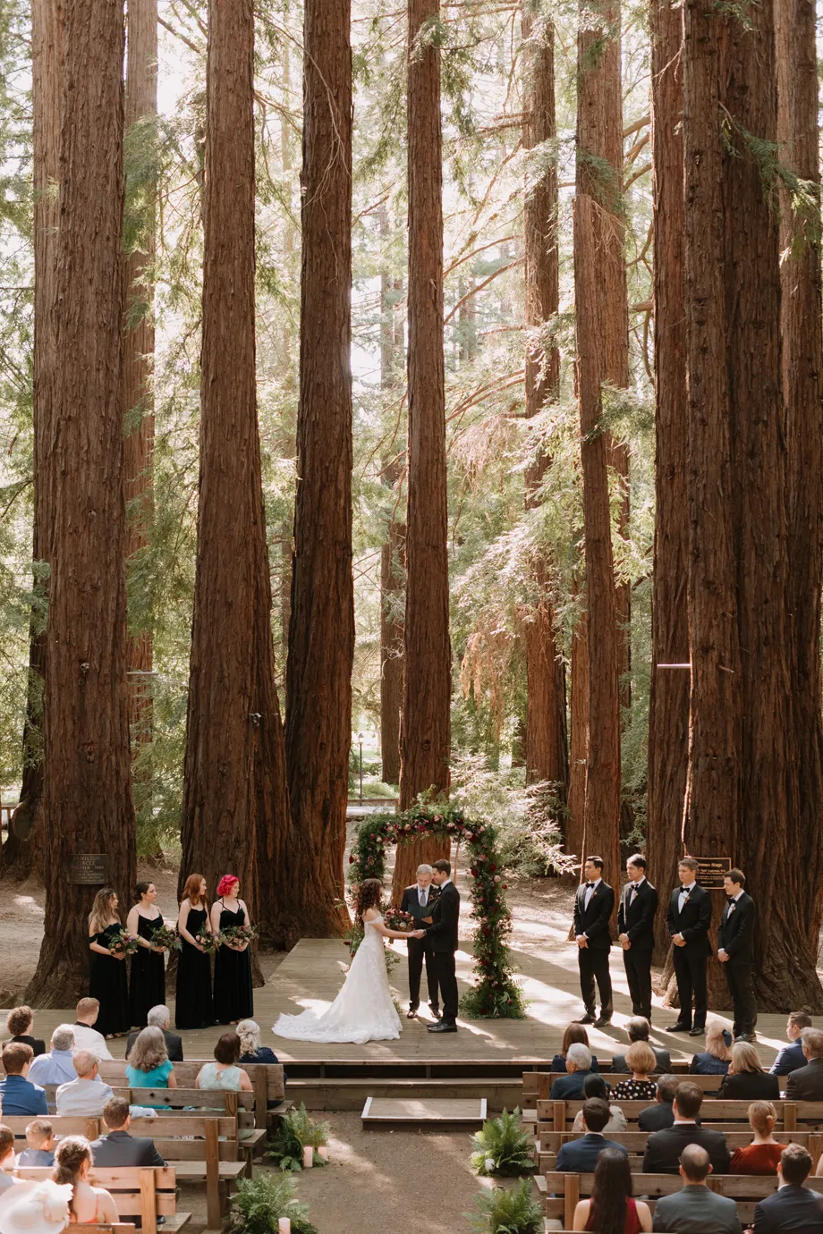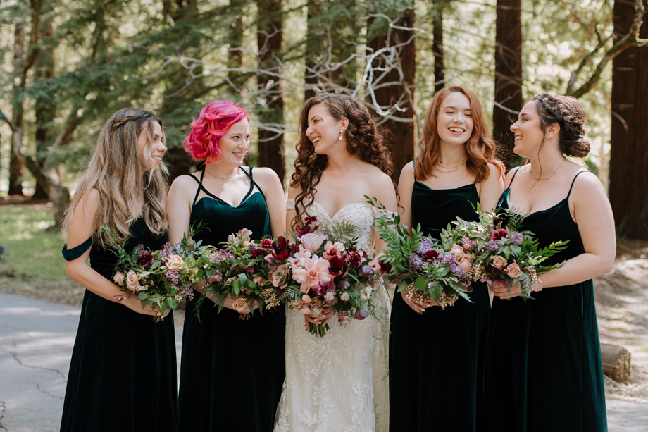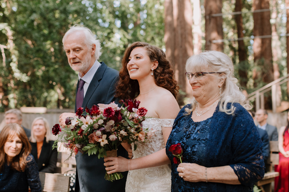 Both lovers of the forest and our life in the magical Bay Area, and with many of our family and friends coming from out of town, we really wanted to be outdoors amongst the redwoods. When we stepped foot in The Family Farm venue with its ceremony amphitheater within a grove of massive, stunning redwoods, there was no way we could have our wedding anywhere else. It surpassed our expectations and just happened to be 10 minutes away from where we lived!