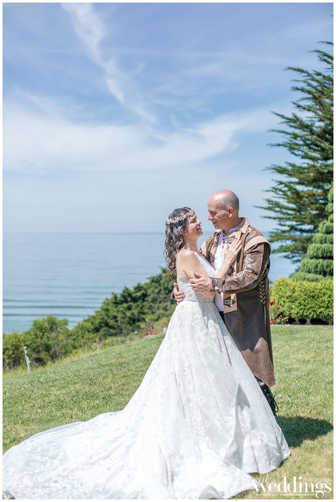 A quick glance at Nichole and Daniel’s photos will make it easy to believe they met at a science fiction convention. Cosplay enthusiast Nichole and artist Daniel hit it off immediately after saying hello, and though they dated for just over a year and a half before getting engaged, Nichole wasn’t at all surprised when Daniel proposed at the summit of Bear Mountain in Felton. “I had a slight feeling this was the day. We had the cart before the horse and had already talked about where we would be married,” says Nichole. “He held my hand most of the train ride, and I could feel it getting wet as we got closer to the top.” After Daniel proposed by the redwoods, they spent a year planning their amazingly unique themed wedding.