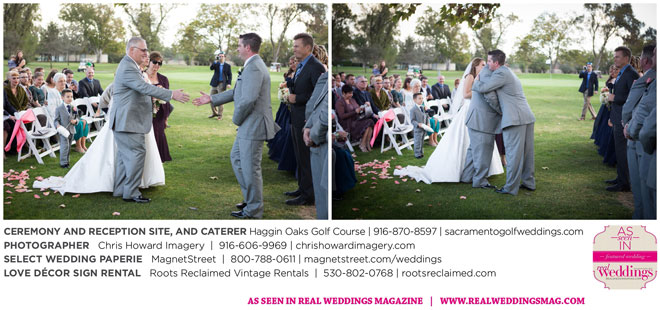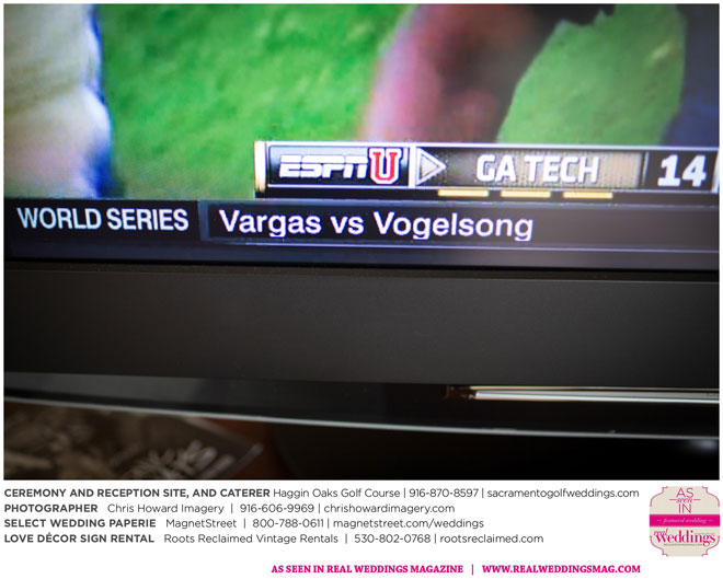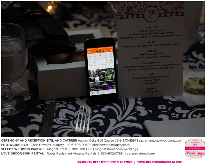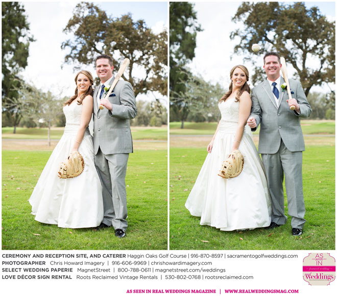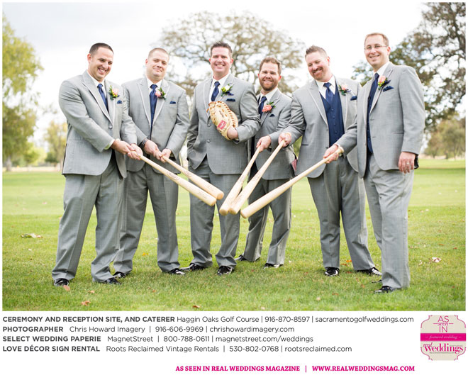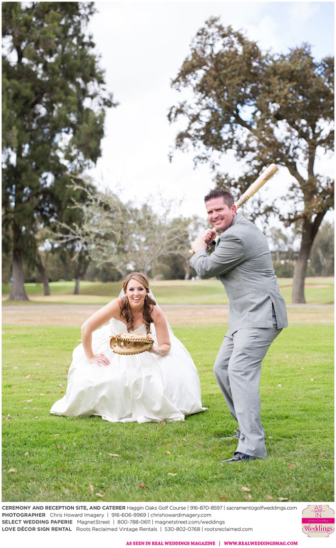 Nicole says her goal for the wedding was, “to have a great time together and share the celebration of our love.” Since both Nicole and Jared are big baseball fans, particularly of the Giants, and were, coincidentally, married on a day the Giants were playing in the World Series, they gave the groomsmen engraved baseball bats as gifts and used a bat and glove in their wedding photographs. Though it rained earlier that day, the showers cleared by midday—leaving behind a breathtaking sunset as the backdrop for their special day.