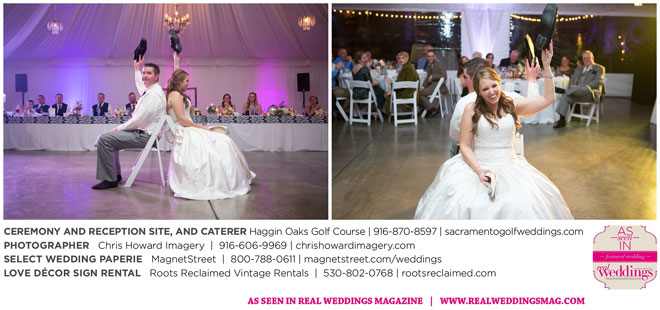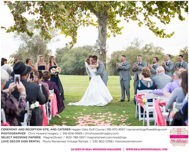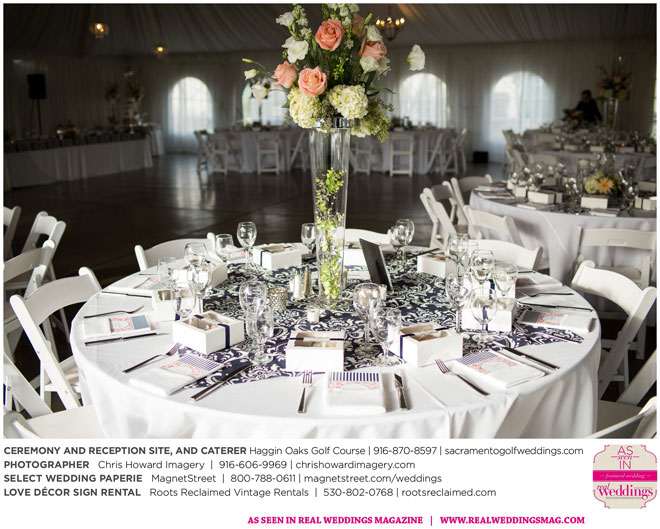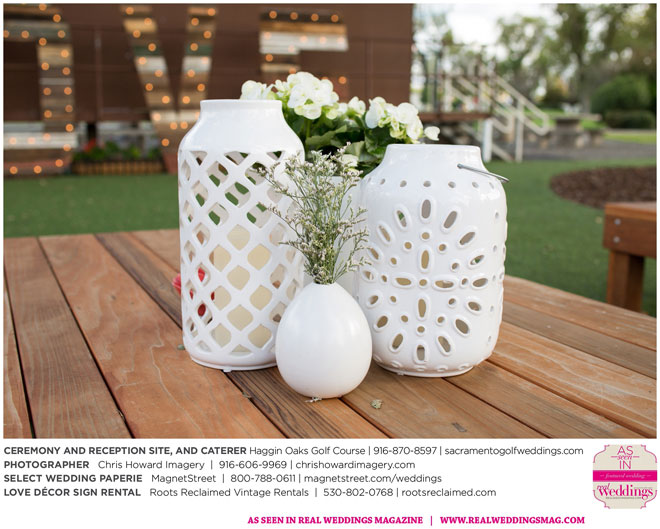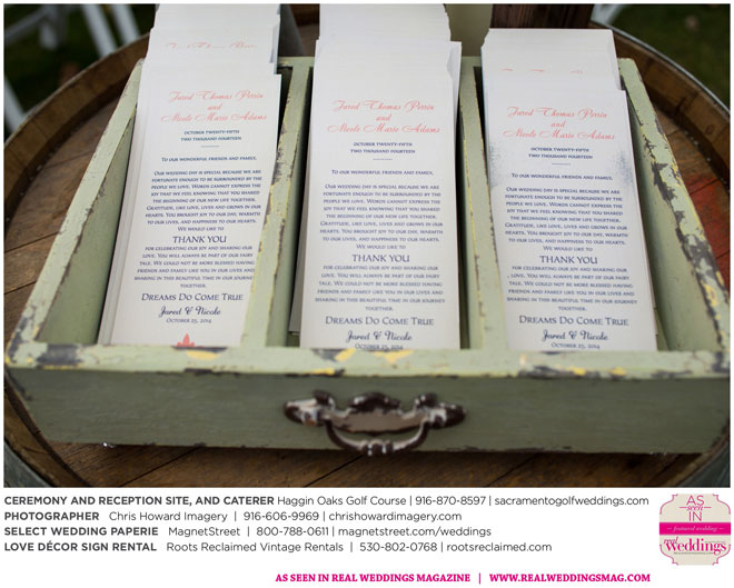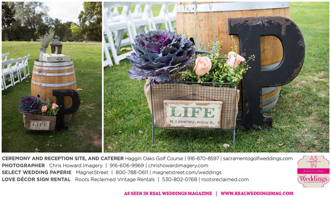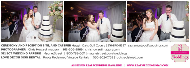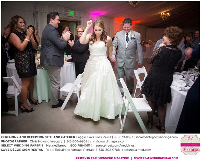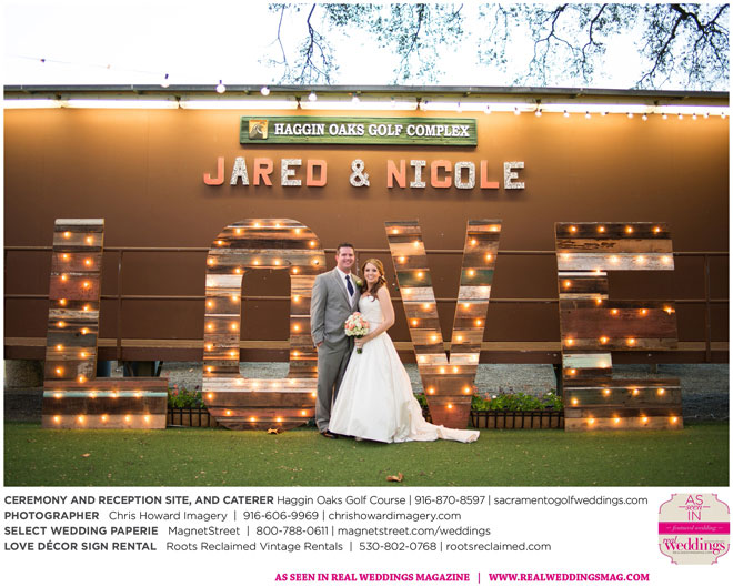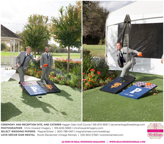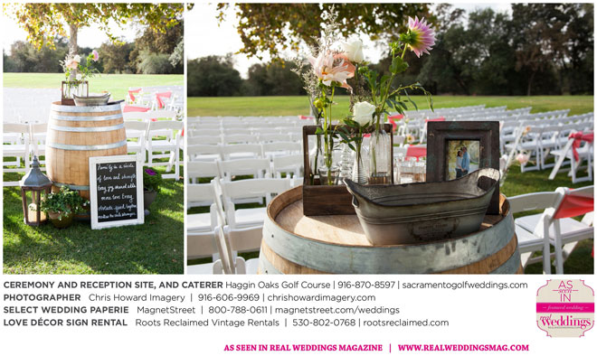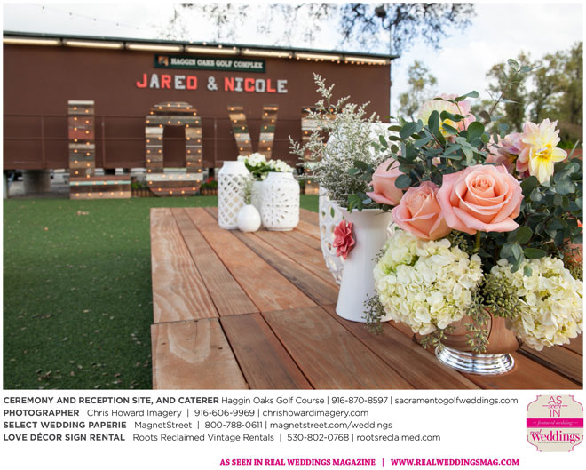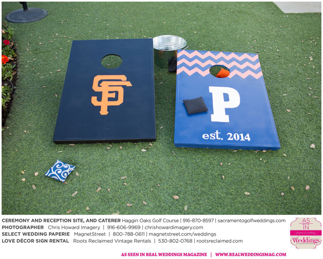 “Our wedding was more traditional; it was important to both [of us] to be more classic, as family and the meaning of marriage is very important to us,” Nicole says. With the desire for a wedding focused on tradition and classic comfort, the couple chose Haggin Oaks Golf Course for its versatility. The outdoor ceremony had a rustic feel, including wine barrels, reclaimed wood signs, and even personalized corn hole boards to entertain guests before they exchanged personalized vows.