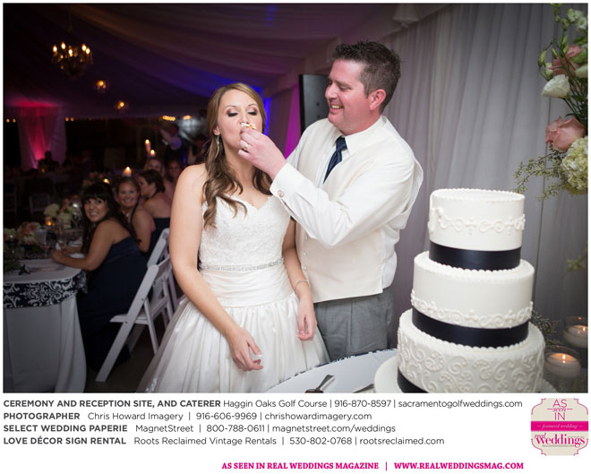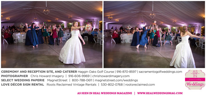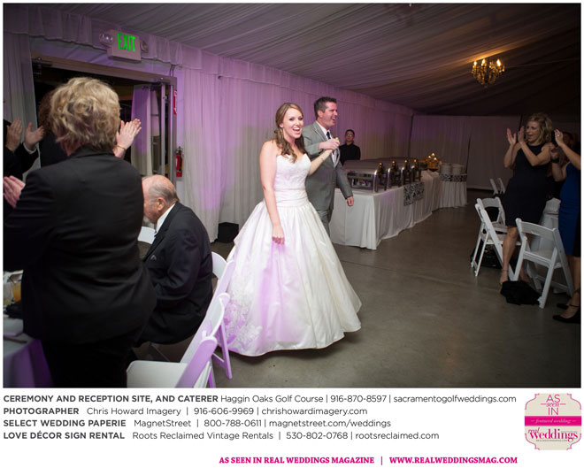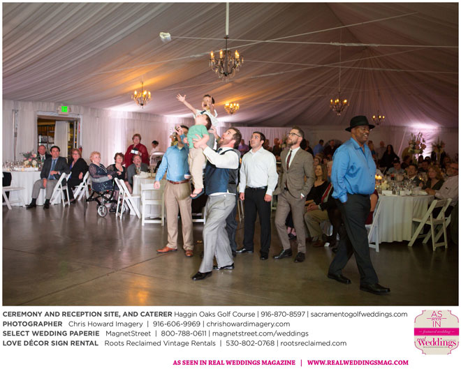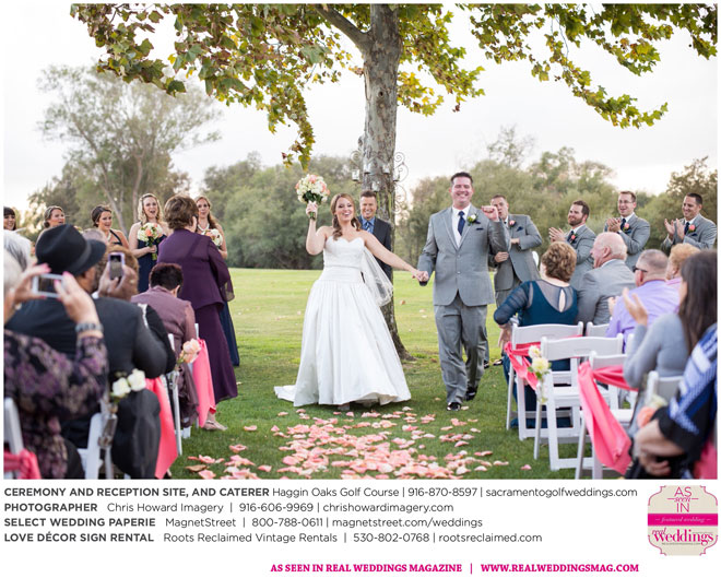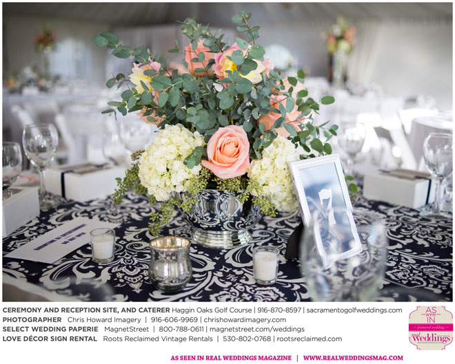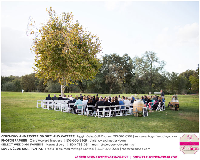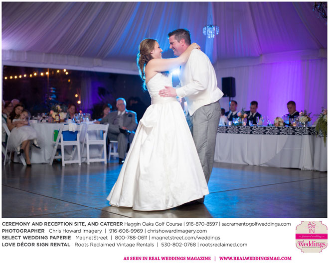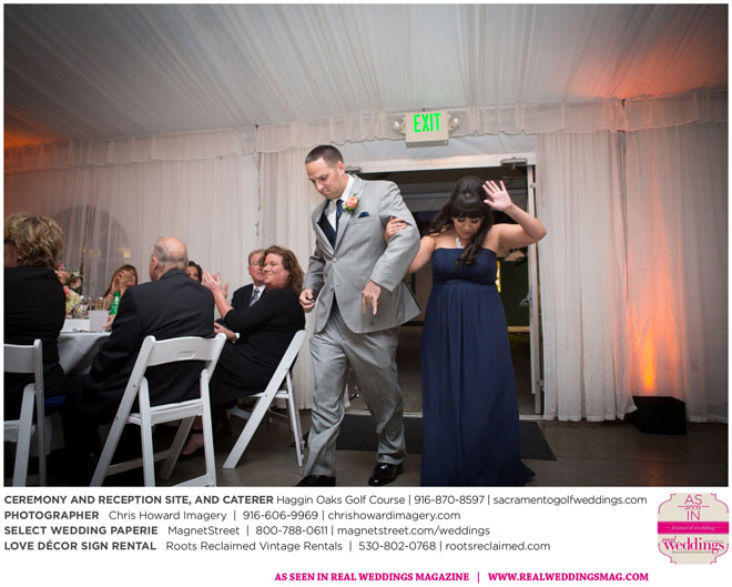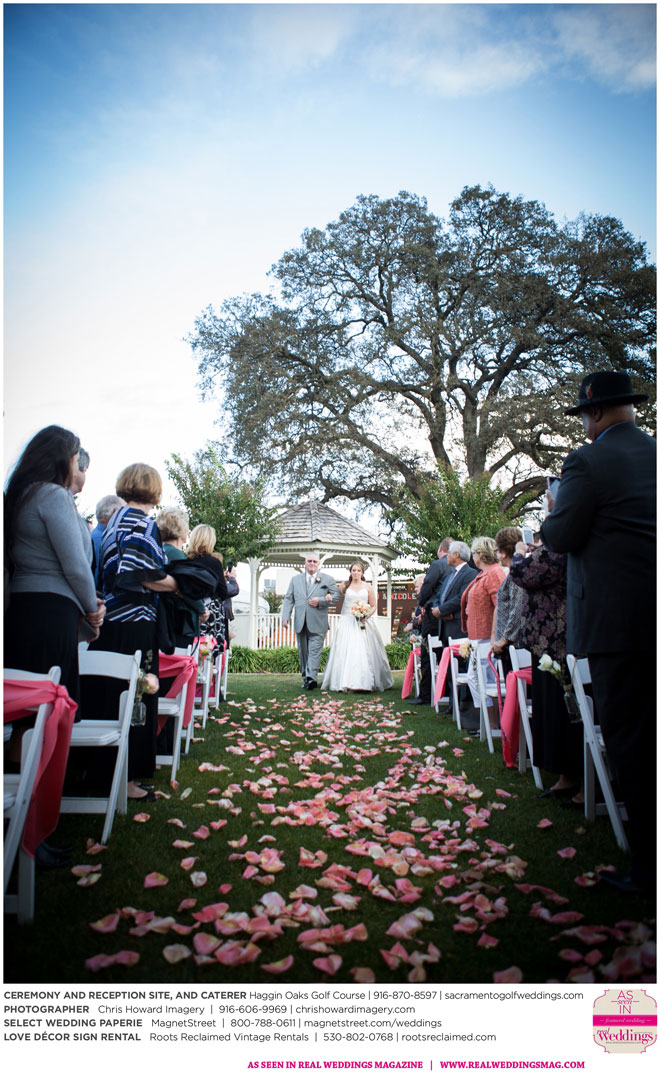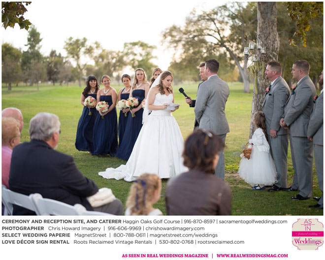 “Our wedding was more traditional; it was important to both [of us] to be more classic, as family and the meaning of marriage is very important to us,” Nicole says. With the desire for a wedding focused on tradition and classic comfort, the couple chose Haggin Oaks Golf Course for its versatility. The outdoor ceremony had a rustic feel, including wine barrels, reclaimed wood signs, and even personalized corn hole boards to entertain guests before they exchanged personalized vows.