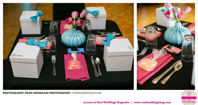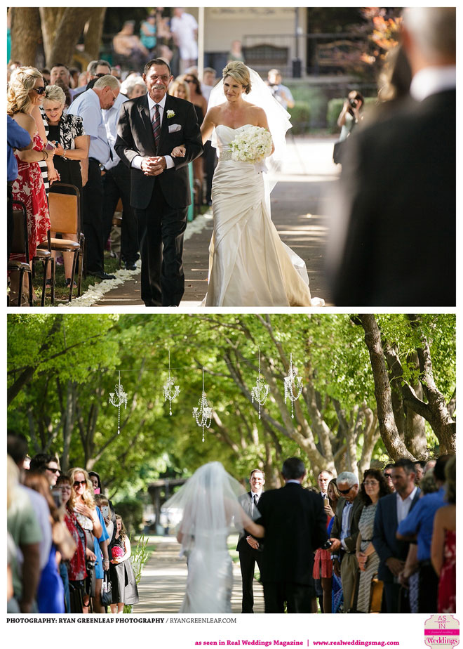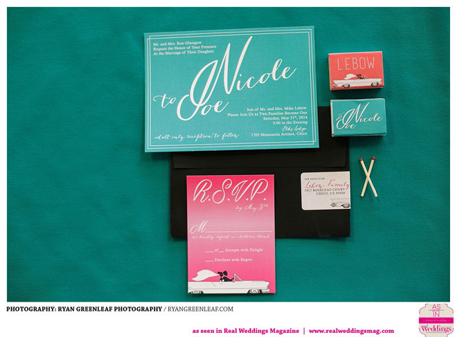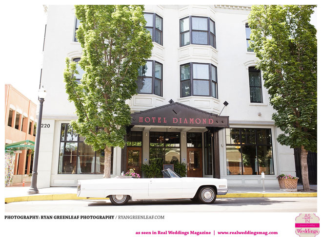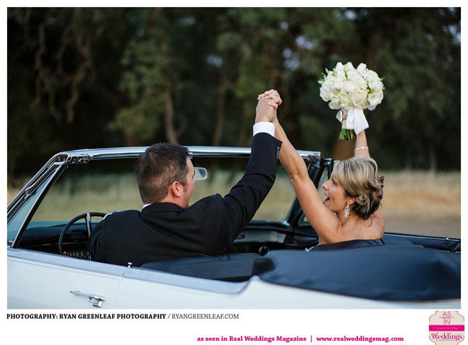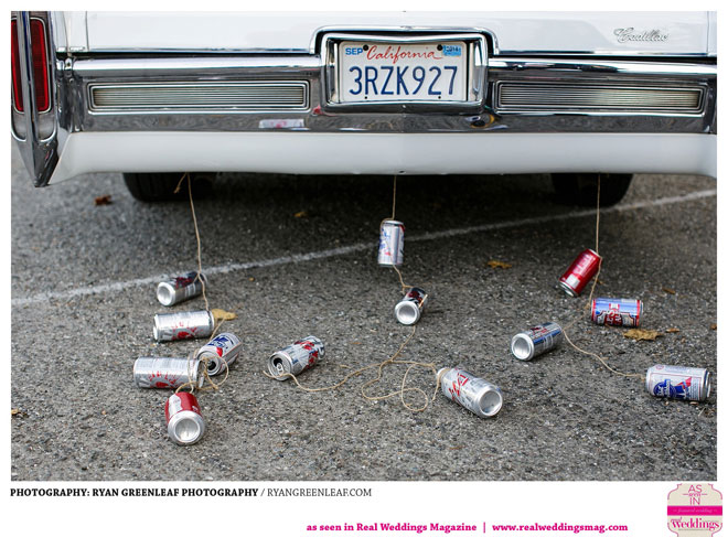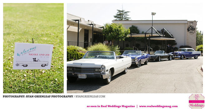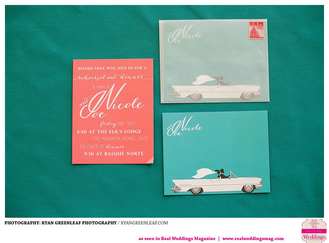 The couple knew they wanted an outdoor, springtime ceremony, but the rest of their big day proved difficult to pin down until they began working with Jodi Drysdale of Chico Event Specialists and Carey Galliani of The Idea Emporium. With help from the professionals, they set to work bringing the “classic, fun, badass” wedding of their dreams to life, 1966 Cadillac and all. The bride says that she was particularly impressed with her groom’s involvement, which included the design of a “beautiful, one-of-a-kind” cake topper.