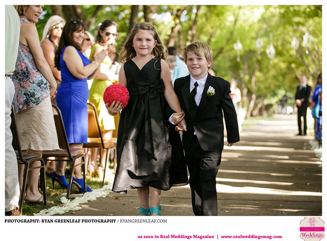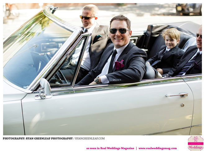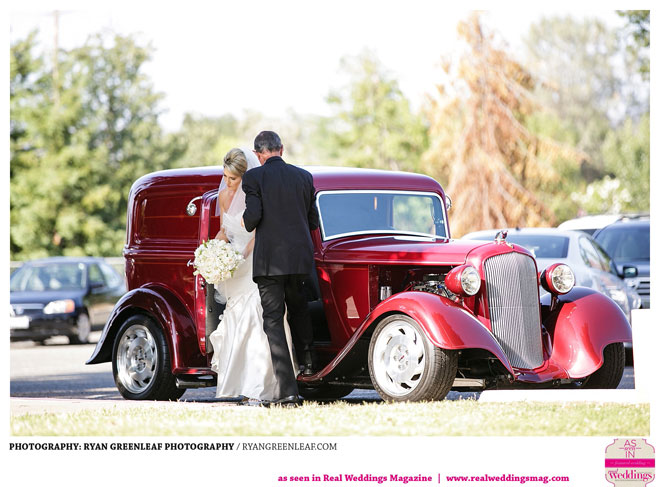 Nearly four years after their fairy tale beginning, Nicole met Joe at the altar in a 1933 Plymouth sedan delivery custom-built by her father for the wedding. Following a ceremony officiated by the bride’s lifelong friend, the couple celebrated with guests and took time to connect with everyone as they handed out plates in the buffet line.