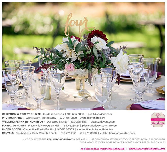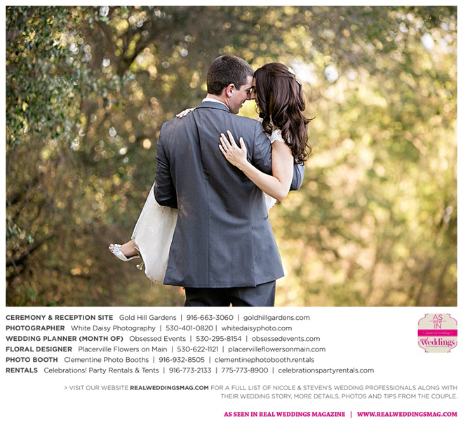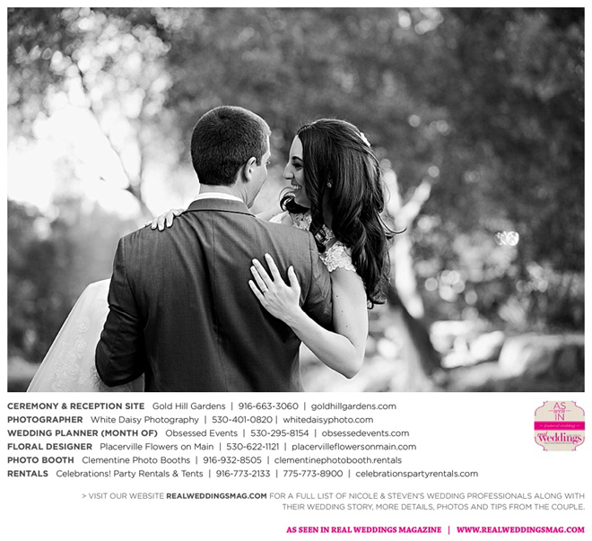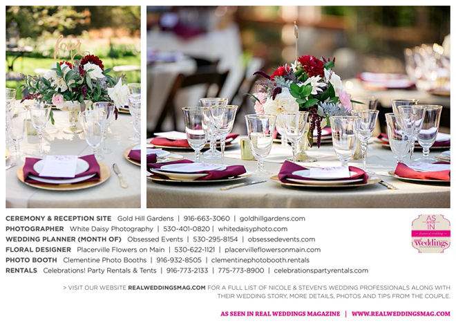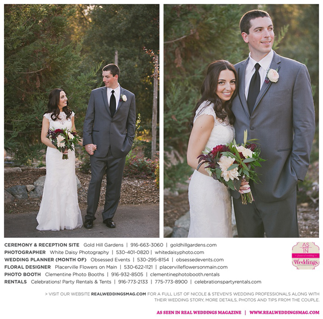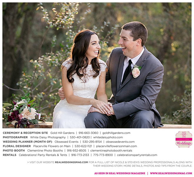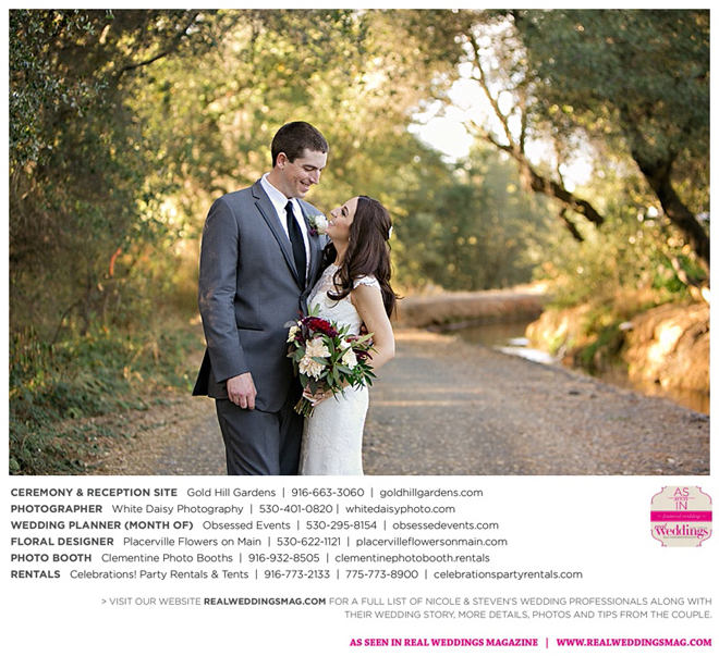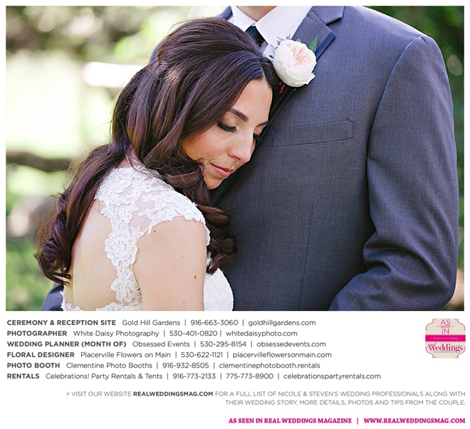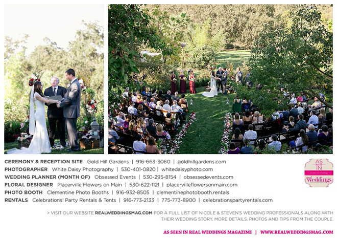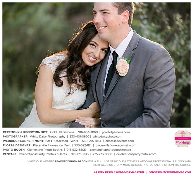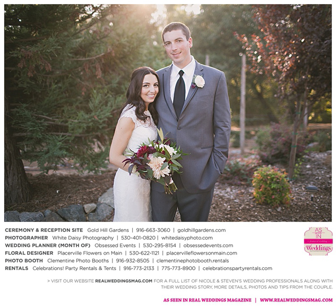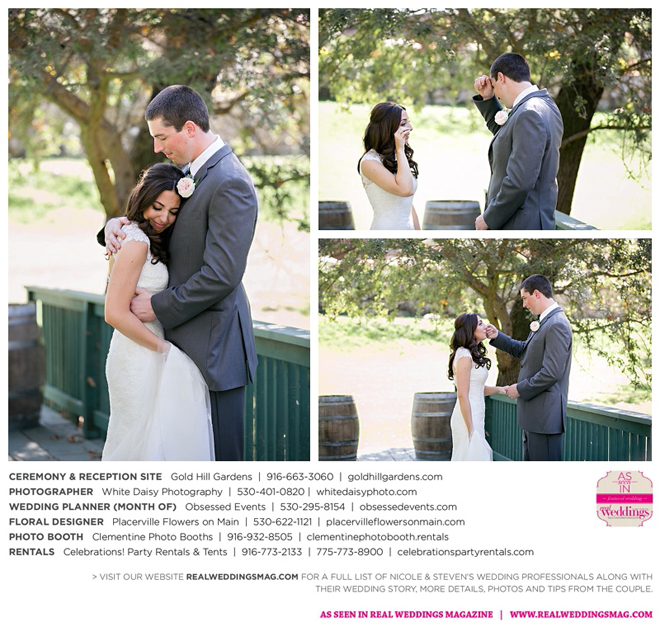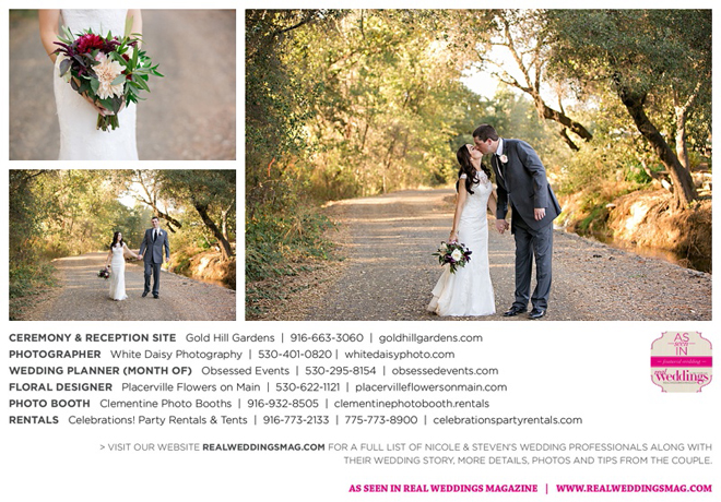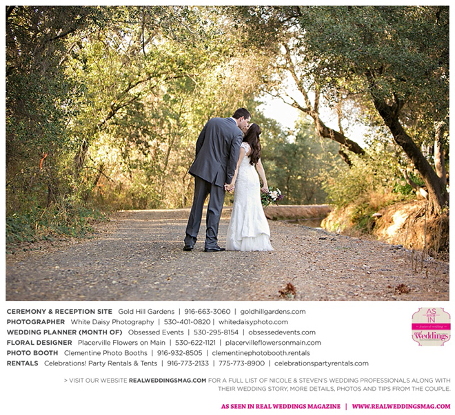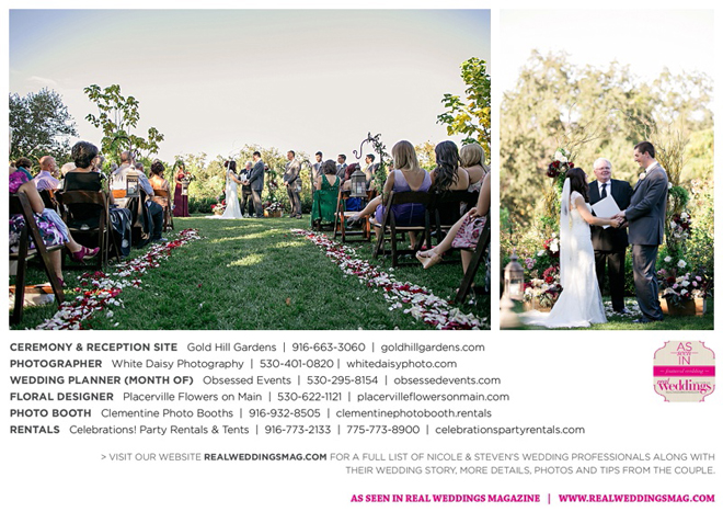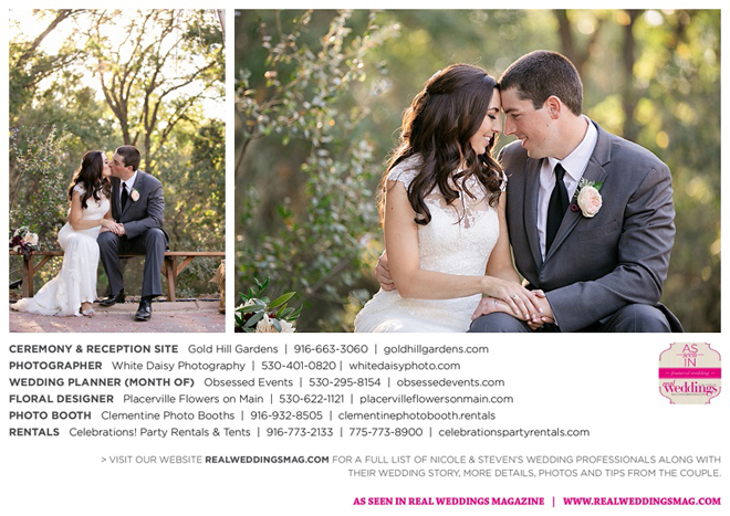 Three years from the time they met, Steve proposed on a hike at Muir Woods. “I think people sometimes just jump in and do it too quickly without realizing that it isn’t just about the day and the event and the pretty flowers,” Nicole says. “You’re going to be with this person, essentially, until one of you goes to heaven…We took our time.”