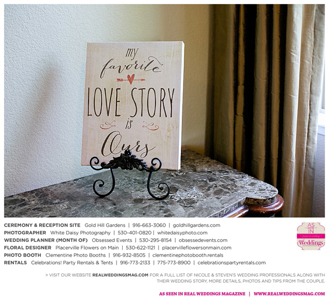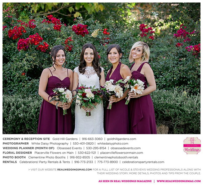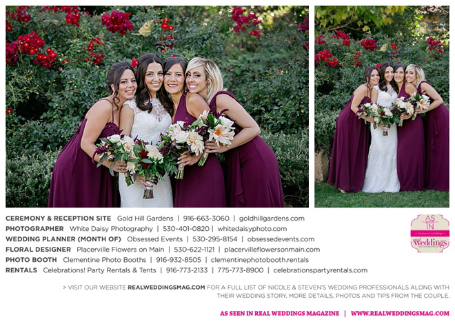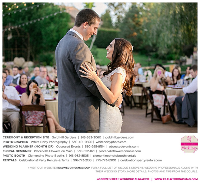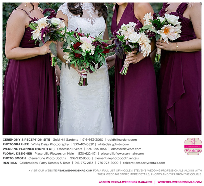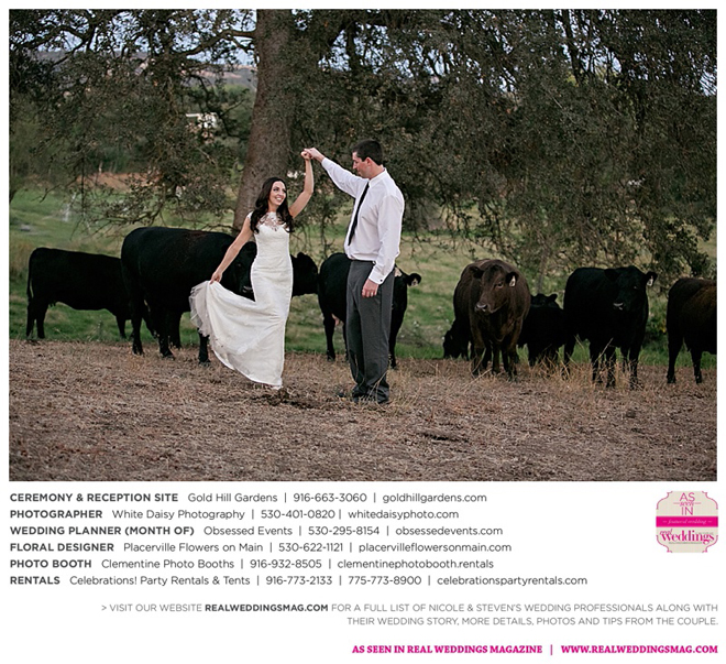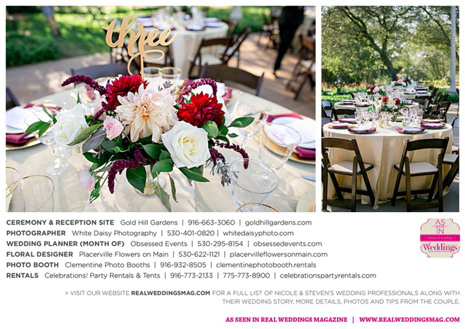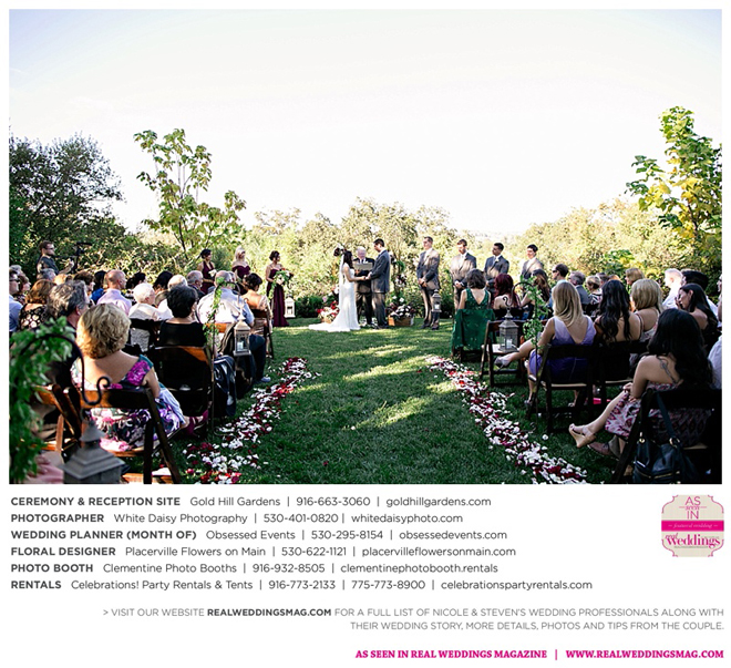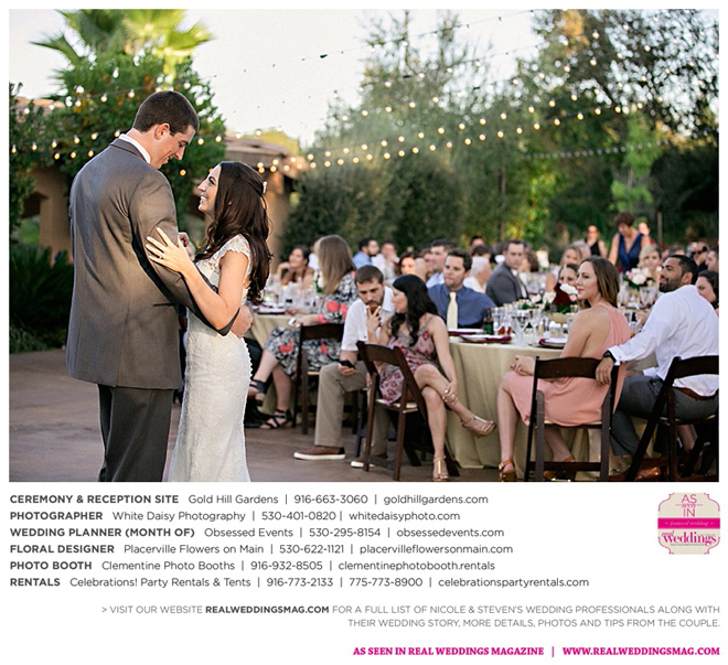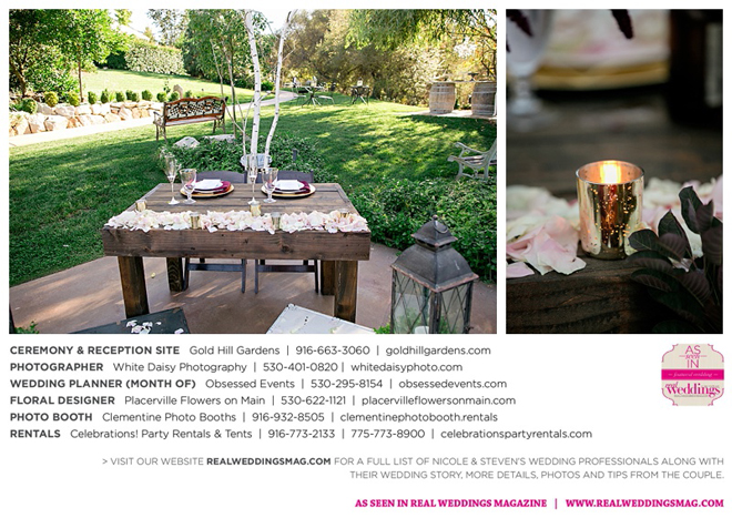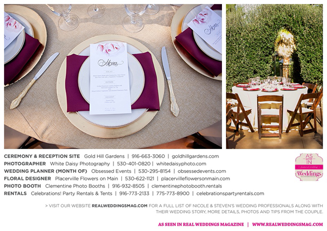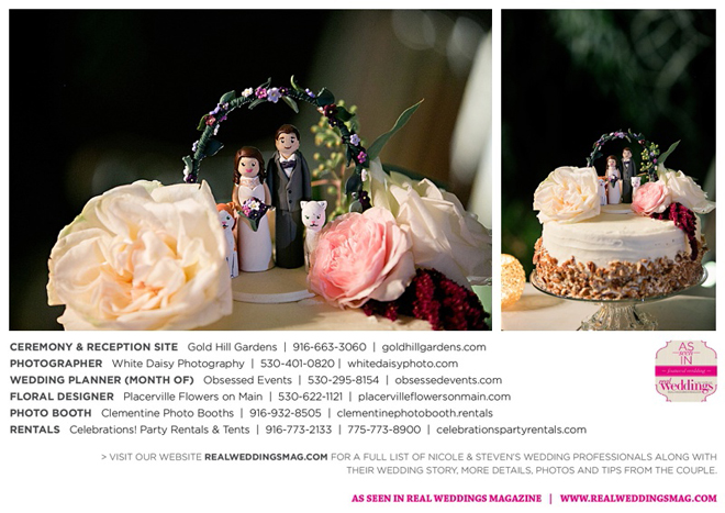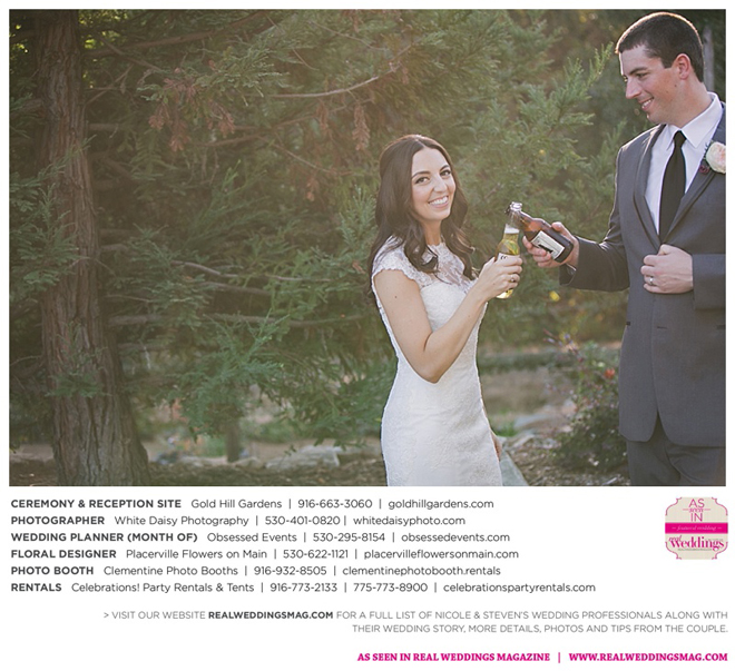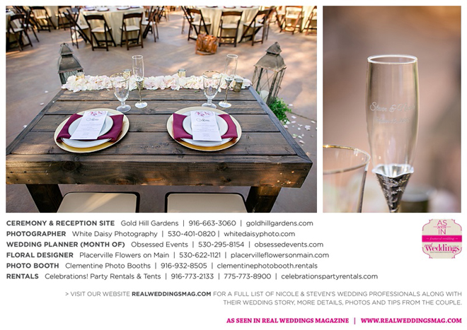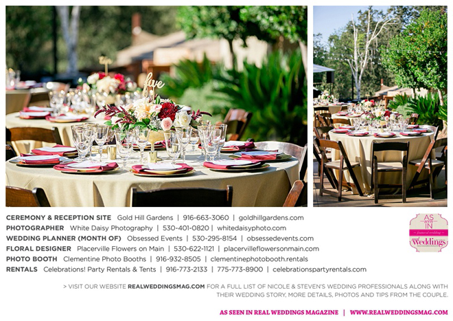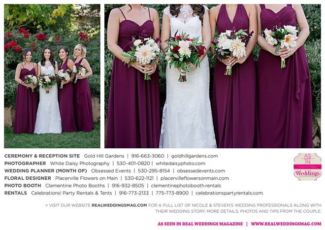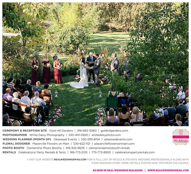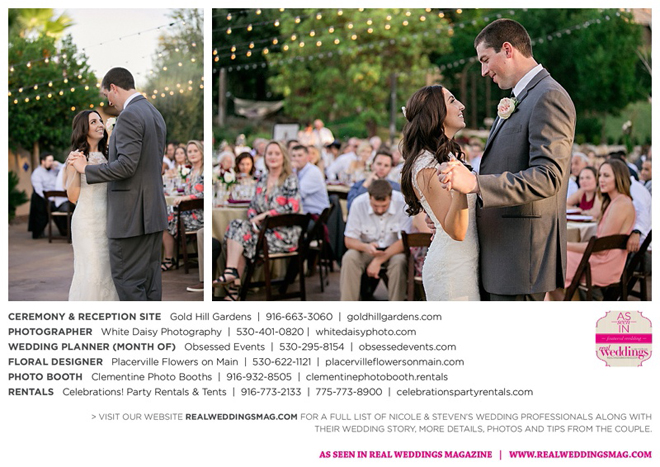 Three years from the time they met, Steve proposed on a hike at Muir Woods. “I think people sometimes just jump in and do it too quickly without realizing that it isn’t just about the day and the event and the pretty flowers,” Nicole says. “You’re going to be with this person, essentially, until one of you goes to heaven…We took our time.”