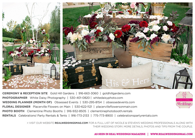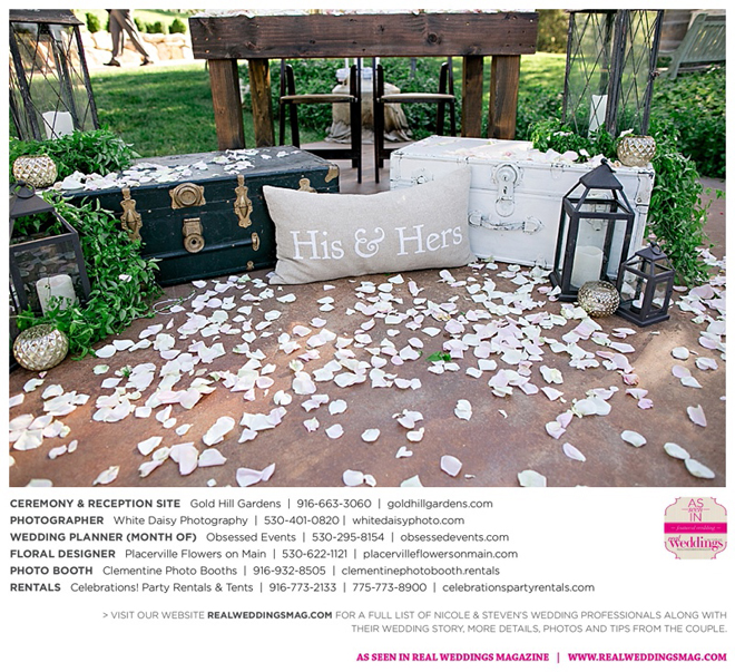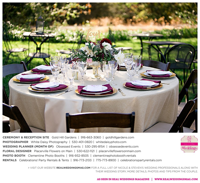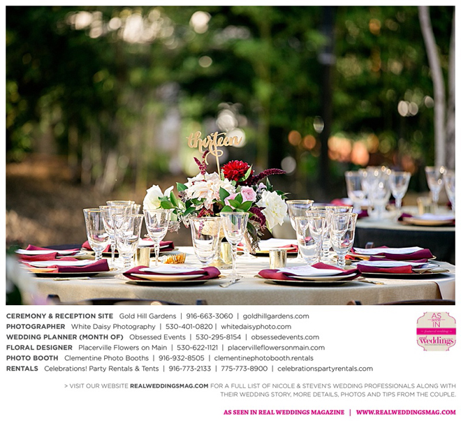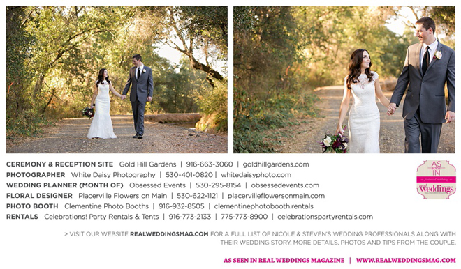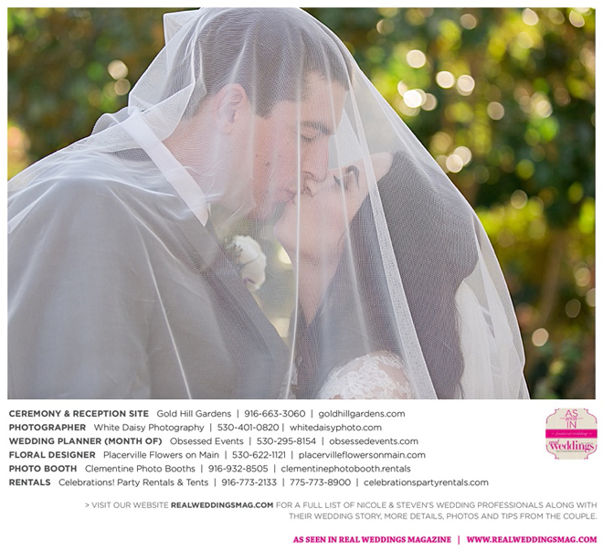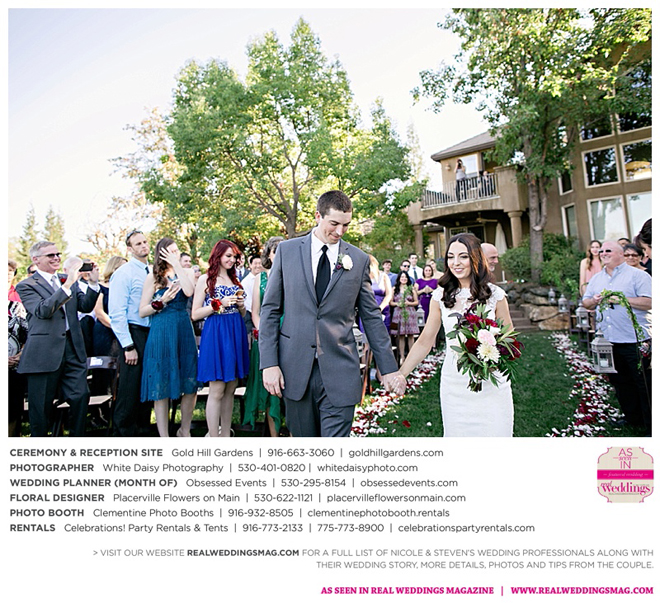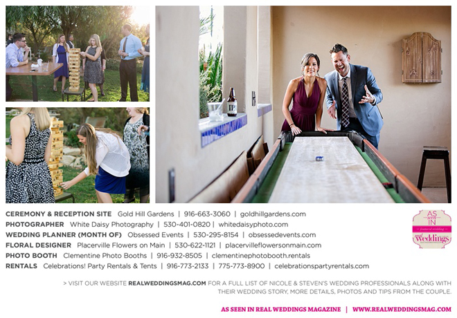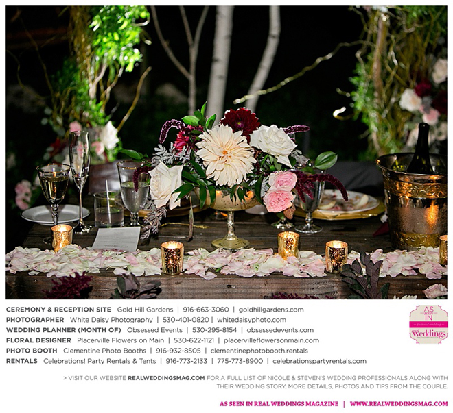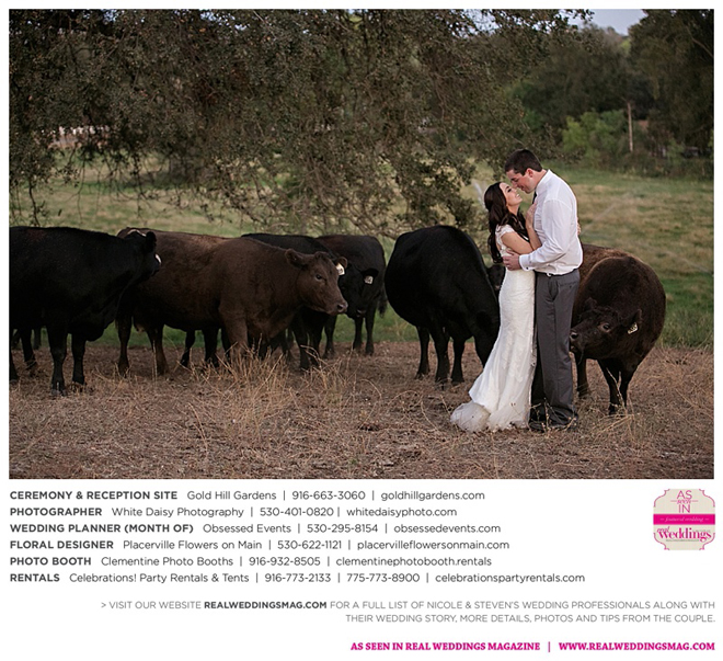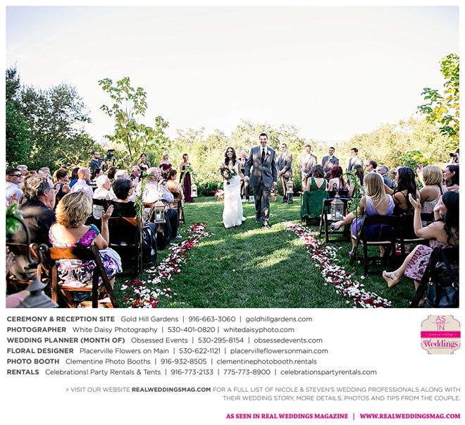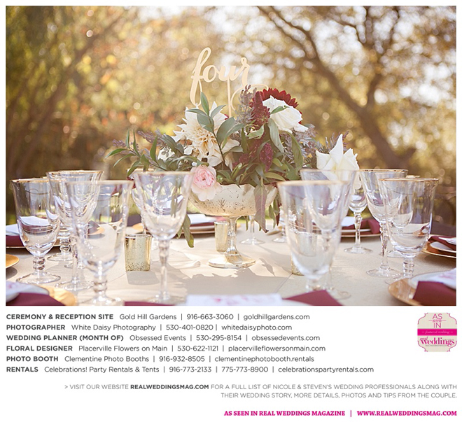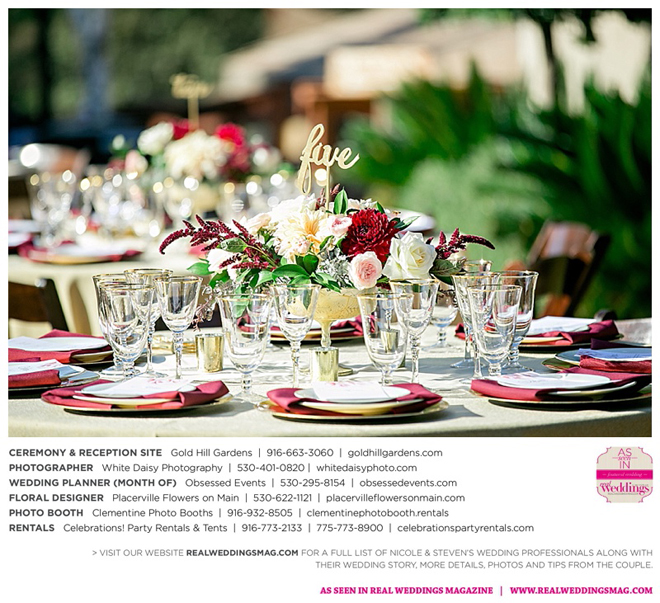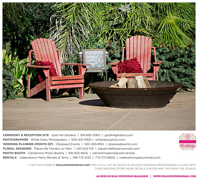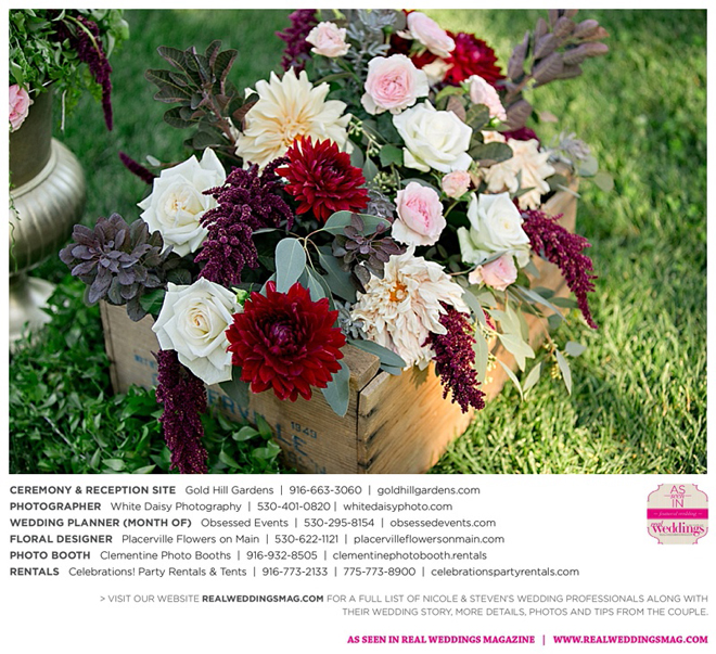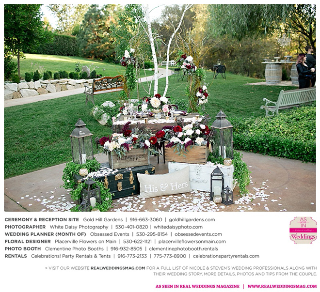 Three years from the time they met, Steve proposed on a hike at Muir Woods. “I think people sometimes just jump in and do it too quickly without realizing that it isn’t just about the day and the event and the pretty flowers,” Nicole says. “You’re going to be with this person, essentially, until one of you goes to heaven…We took our time.”