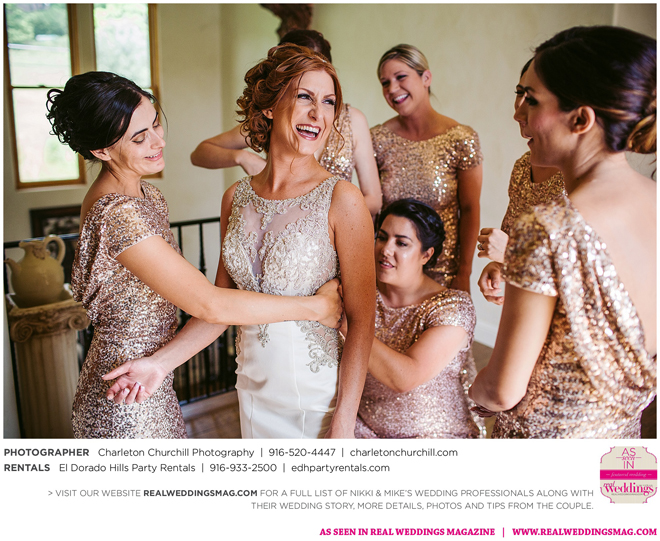 Soon after, plans for a spring wedding were underway. At first unsure of her bridal style, Nikki looked to Pinterest for inspiration and eventually settled on what Mike describes as, “a glammed-up California back yard estate-style wedding.” Above all, the bride looked for elements that truly represented the couple, right down to the ideal venue. An initially difficult search led them to Villa Florentina, the perfect location to enjoy family, friends, food and drink.