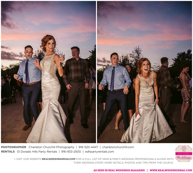 In a day filled with special highlights and surprises, the bride says dancing to “Butterfly Kisses” with her older and younger brother was “amazing.” The two took turns standing in for their father who, sadly, passed away before the wedding. (During the reception, the maid of honor revealed that she had pinned a heart-shaped piece of his favorite shirt to the tulle of Nikki’s dress and to the dress and coats of her siblings.)