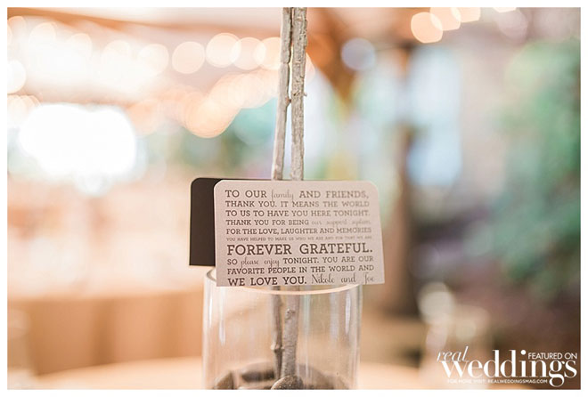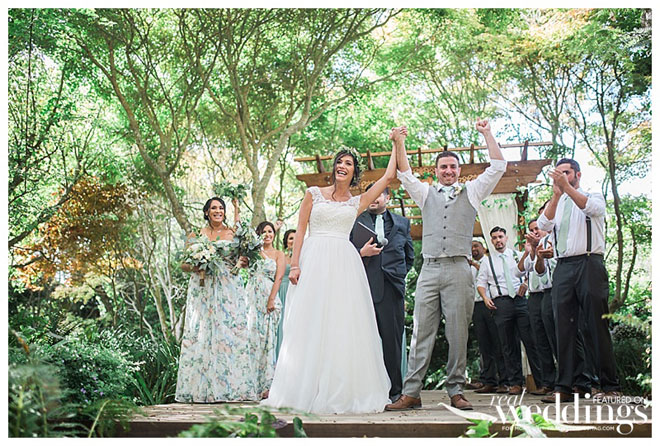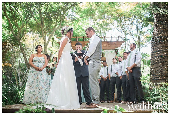The couple kept the ceremony short and sweet. “We did not write our own vows but actually did something even better,” shares the bride. “One of our best friends was our ordained minister who did not share what he was going to say until the actual ceremony was happening—this made our ceremony special because he spoke specifically to us and our bond and partnership.”