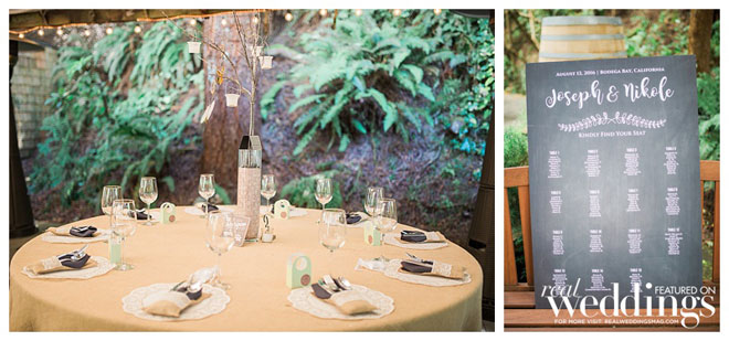 Both the ceremony and reception were held at The Secret Gardens in Bodega Bay. “It’s tucked away in a small fishermen’s town with barely any foot traffic or major restaurants and lodging,” says Nikole. “The minute I stepped foot in this place I knew it was the one. It’s weird, most women feel this way about the dress when they find the one…but not me. The venue left me breathless and I immediately knew this is where Joe and I needed to confirm our eternity together.”