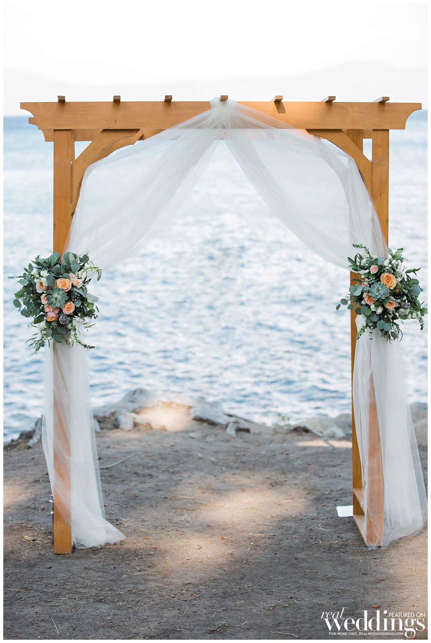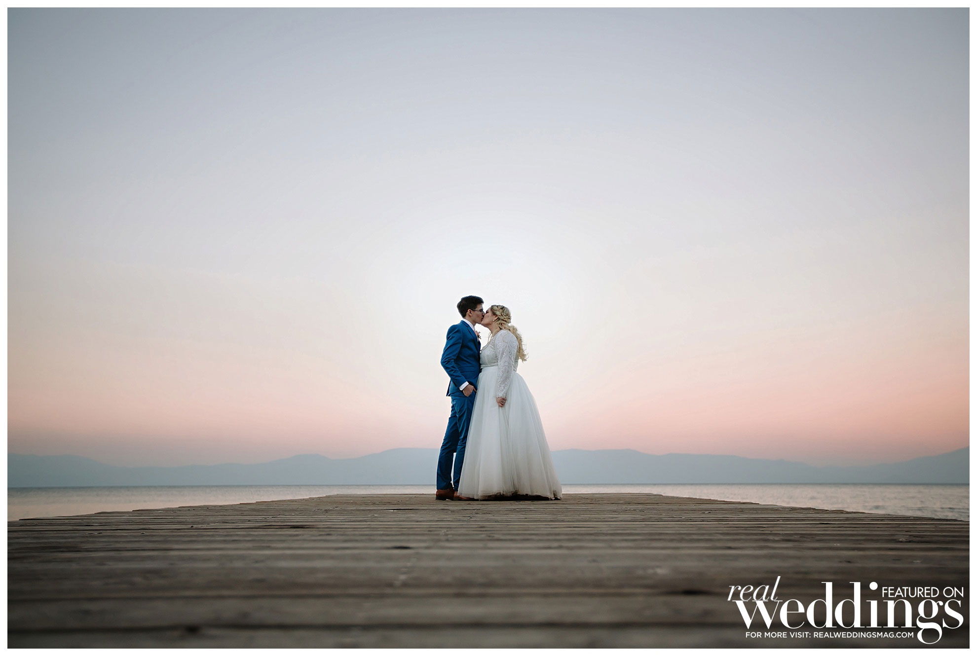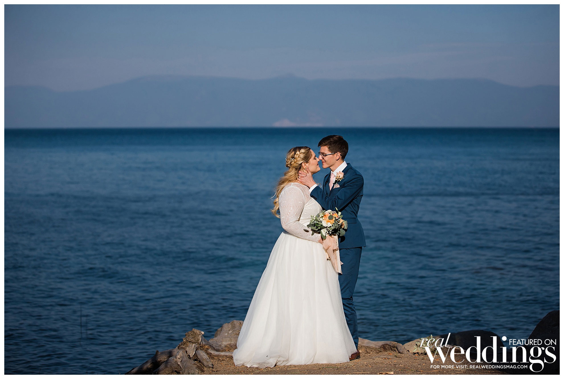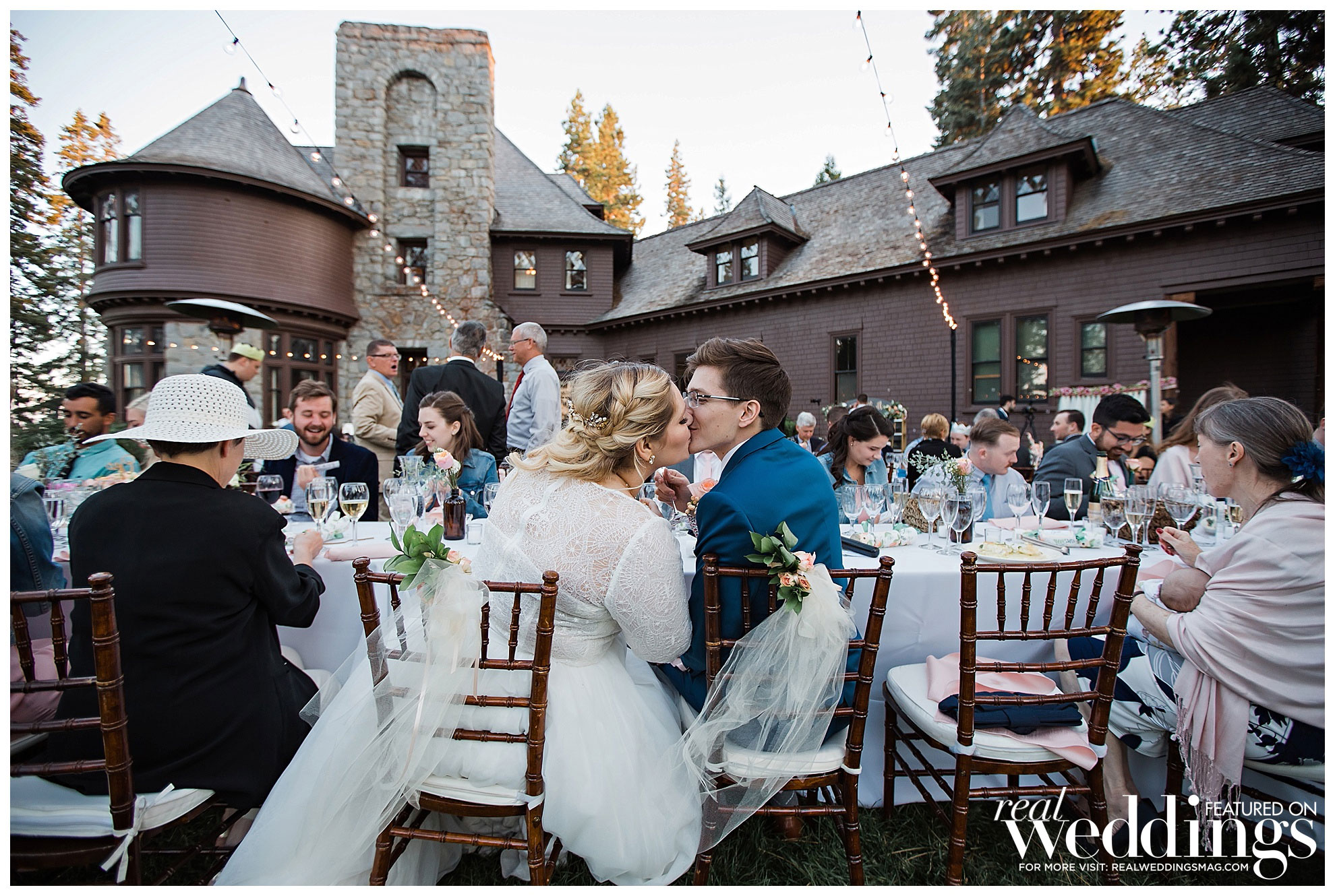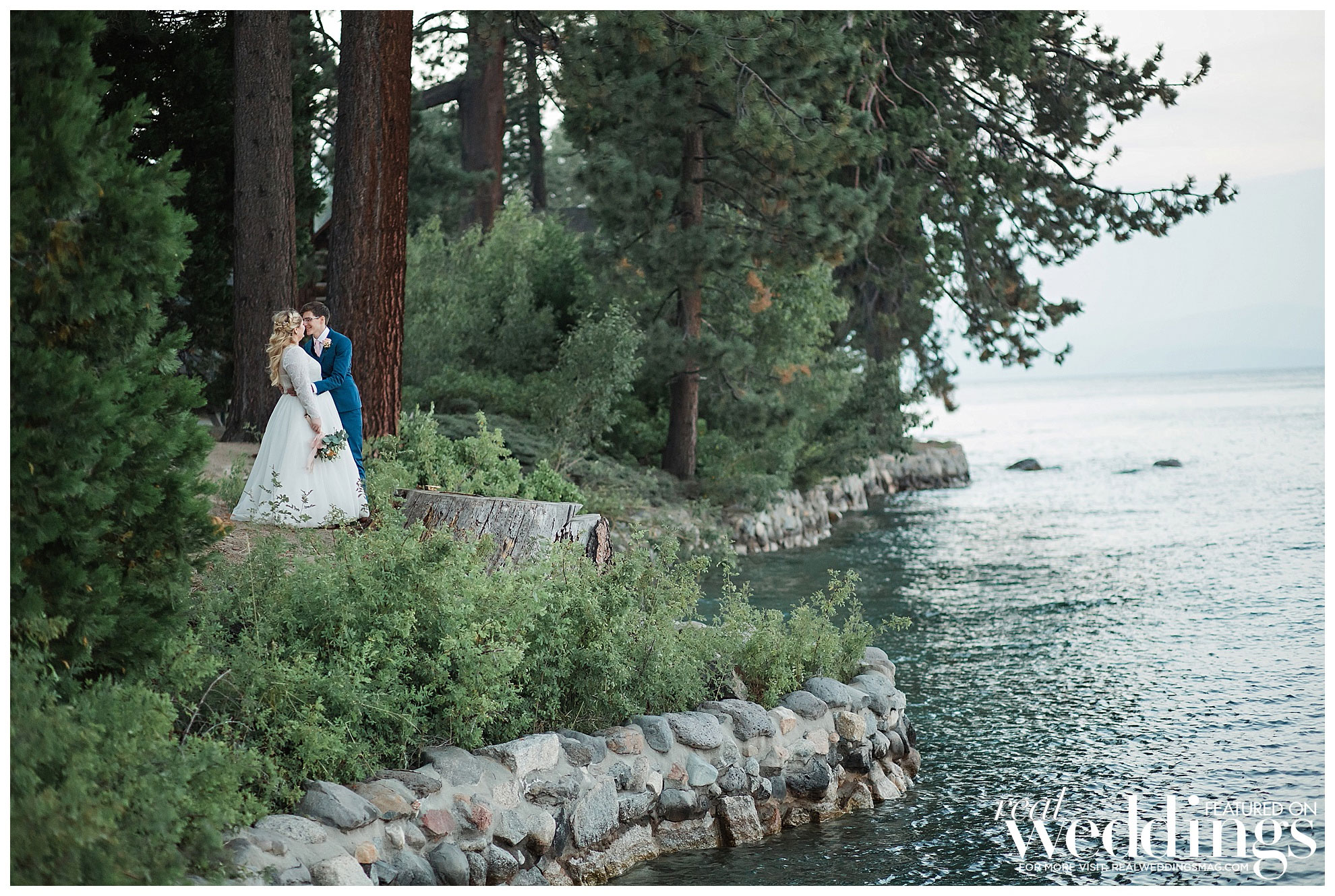 The couple decided to have their intimate wedding for 50 guests at the Hellman-Ehrman Mansion at Sugar Pine Point State Park in Lake Tahoe, and it wasn’t until the time of the wedding that they hit a bump in the road. “The summer of 2018 had some really terrible fires, and Lake Tahoe ended up being kind of right in the middle of two bigger ones which created this funnel of smoke and ash at the basin of the lake, and we were worried how that might affect the wedding,” the bride remembers. “I was trying to stay positive and not really think about how that might impact the day, but obviously we were nervous that our outdoor wedding was going to be cut short due to smoke, and also, we didn’t want to jeopardize our guests’ health.” However, after crossing their fingers and pushing forward with their plans, everything managed to fall into place, “By about 4 o’clock that afternoon, the smoke had completely cleared, and we had the most beautiful ceremony and reception with views of the mountains and the lake, and the most gorgeous sunset. We really got so lucky.”