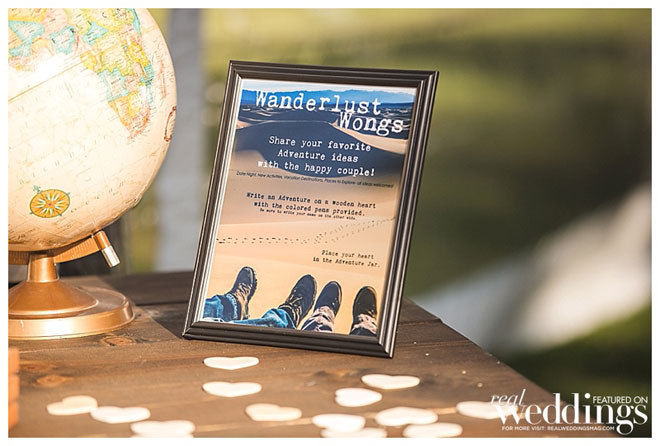 • WANDERLUST WONGS JAR: Guest wrote on wooden hearts purchased from Amazon with any adventure idea such as places to go, new things to try, date night ideas, etc.