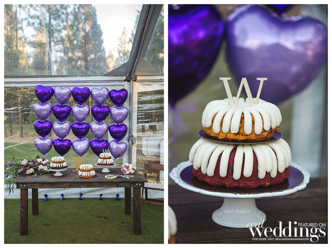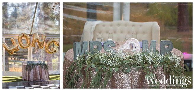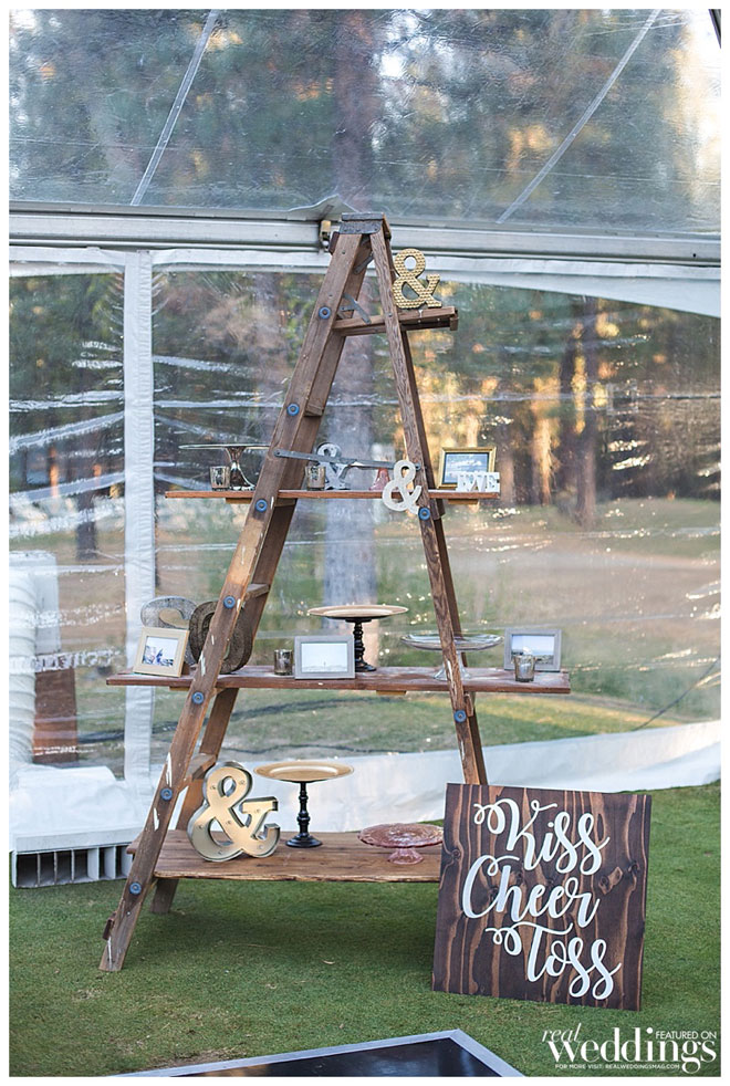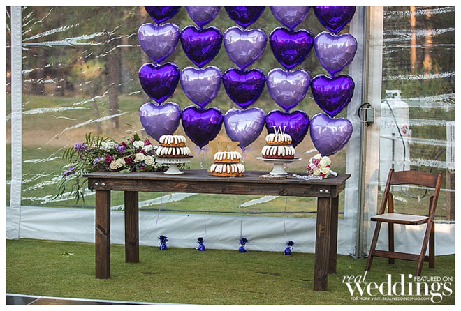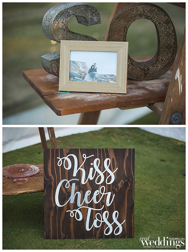 • CARD BOX: We bought luggage from Amazon that came with two sizes. The bottom was the larger size and mainly for decoration. The smaller one was placed on top as the card box. I propped it open with zip ties so there was just a tiny slit so cards can be slipped through. My awesome creative Mom attached silk flowers to cover the zip ties.