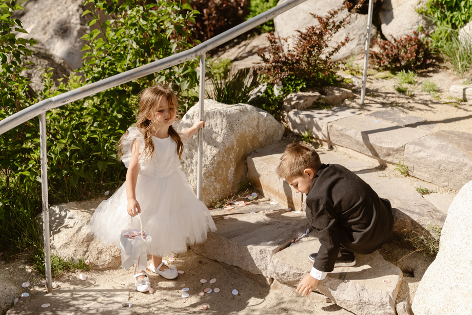 During our ceremony, the wind was so strong that it took the flower girl’s basket of flowers out of her hands. She had a smooth recovery with the help of her older brother, who picked up the petals and put them back in the basket as they finished walking down the aisle together.
