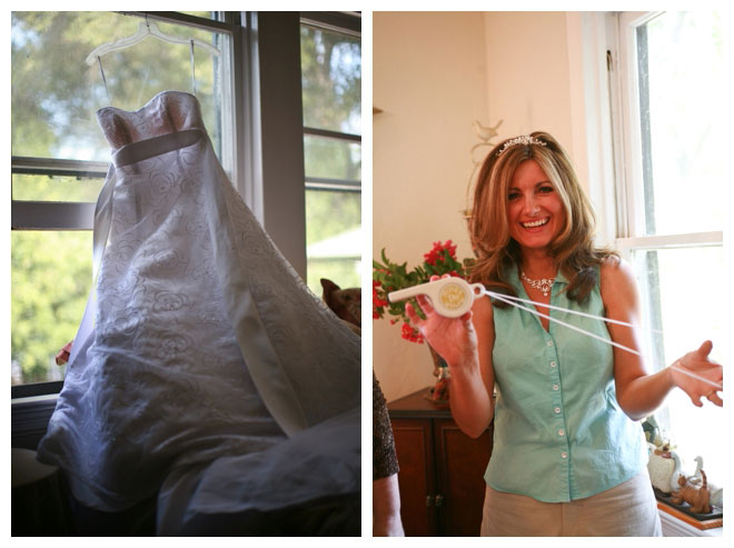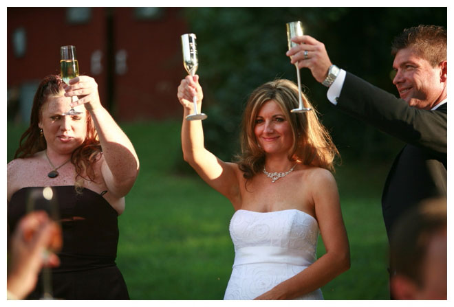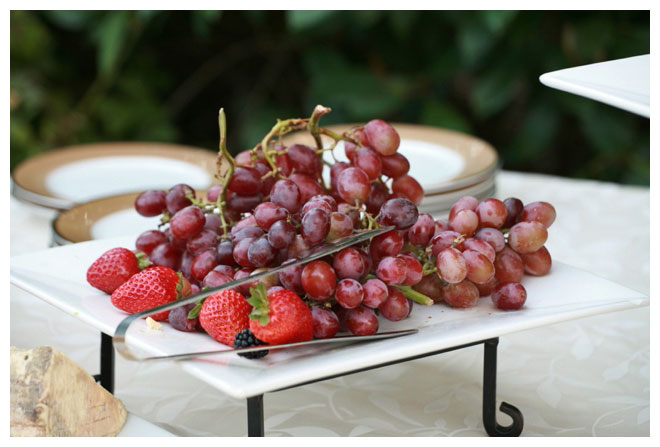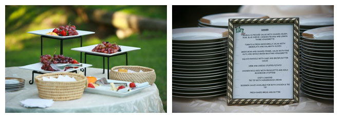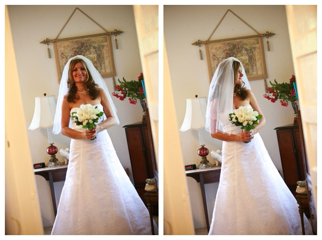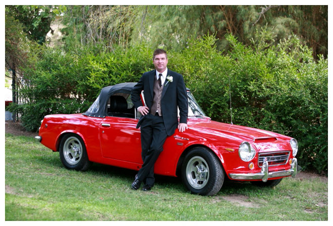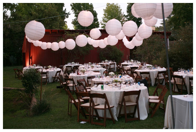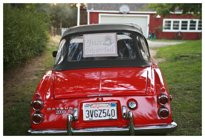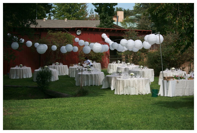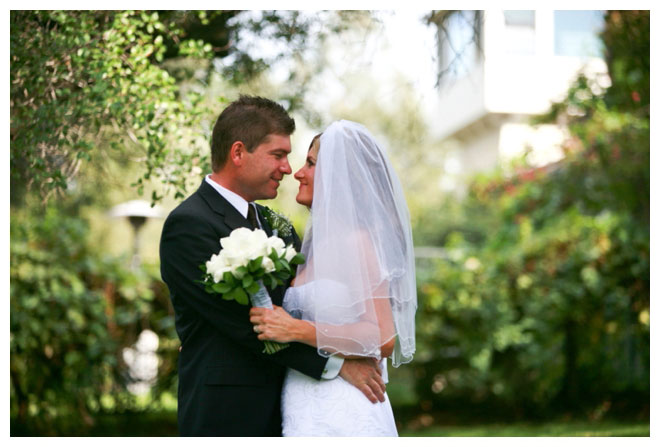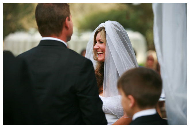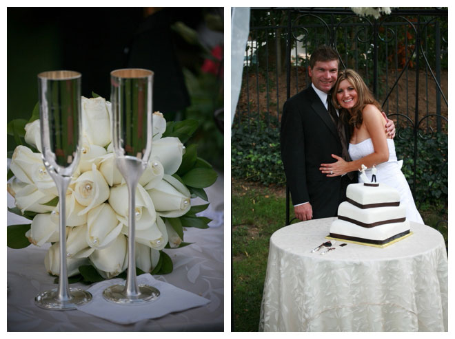 The property grounds were home to pomegranate trees, which made Lisa and Brian’s theme colors an easy choice: pomegranate, paired with chocolate brown. It also made the signature drink practically required: why, pomegranate martinis, of course! Lisa and Brian also made the most of their outdoor heaven, stringing up 200 Chinese lanterns in the backyard for the reception that followed, which was full of good music, good food and plenty of dancing on the makeshift dance floor they laid out on the lawn, and guests even enjoyed a festive bonfire later in the evening. (Reports of hand holding and singing “Kumbaya” remain unsubstantiated.)
