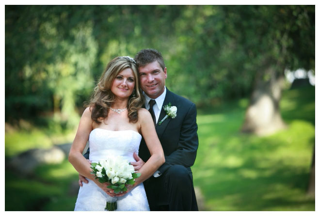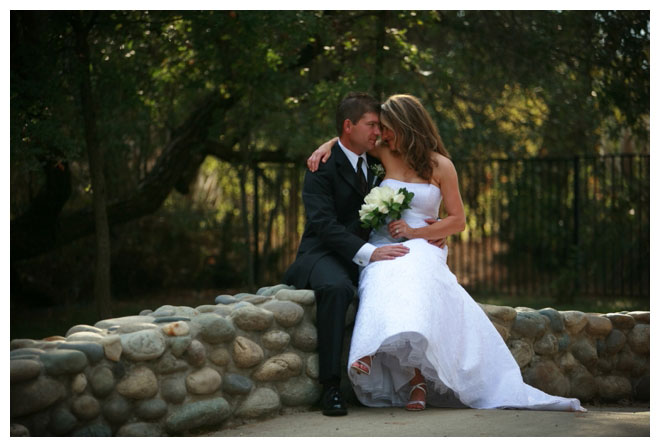 Location, location, location. When it comes to weddings, sometimes the location can say as much, if not more, about the couple than any other element. For Lisa Hess and Brian Keating, their location suited them right down to the ground (literally). The lush 10-acre property in Granite Bay contained a running creek, beautiful rustic restored barns, horses, and a quaint stone bridge…and the fact that this “wish list” property belonged to a friend made it that much easier for Lisa and Brian to turn their dream wedding into a real wedding! (Did we mention that the property is also adjacent to Folsom Lake? Nice!)