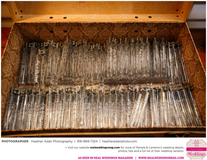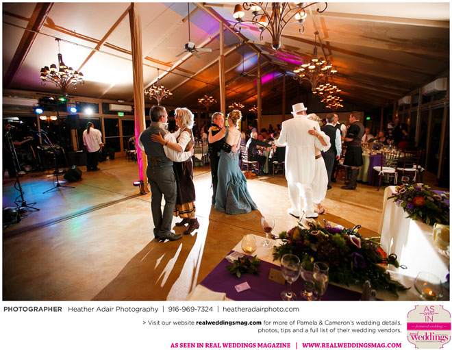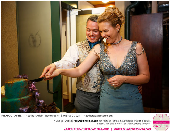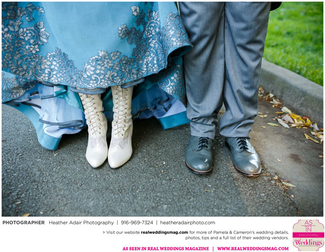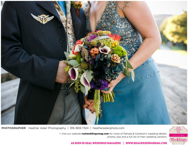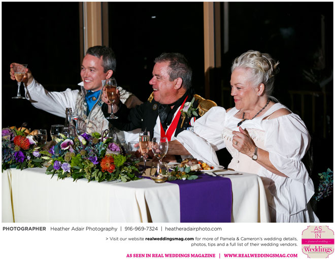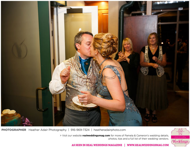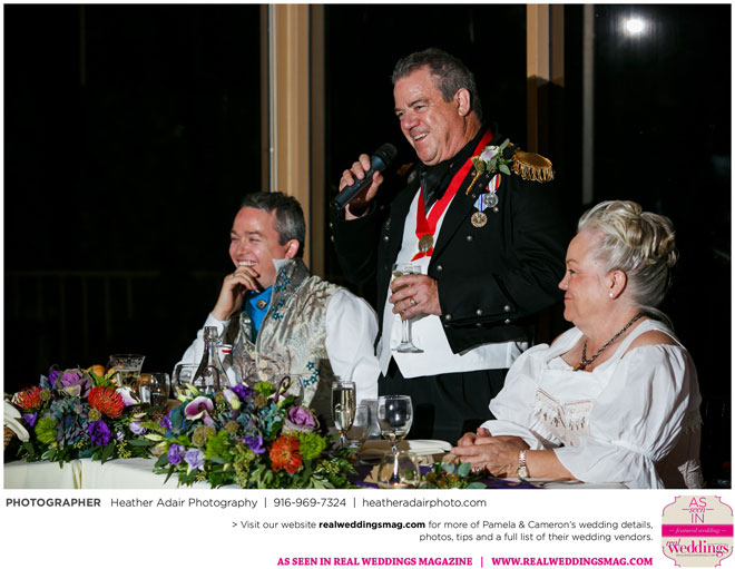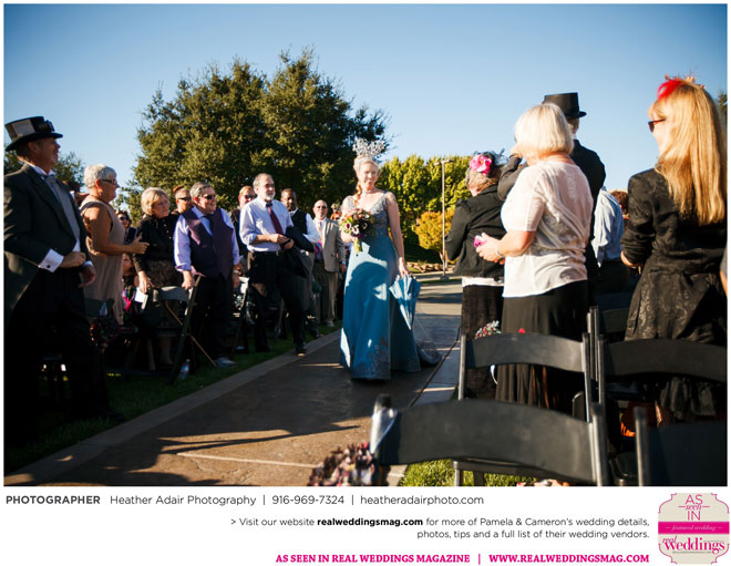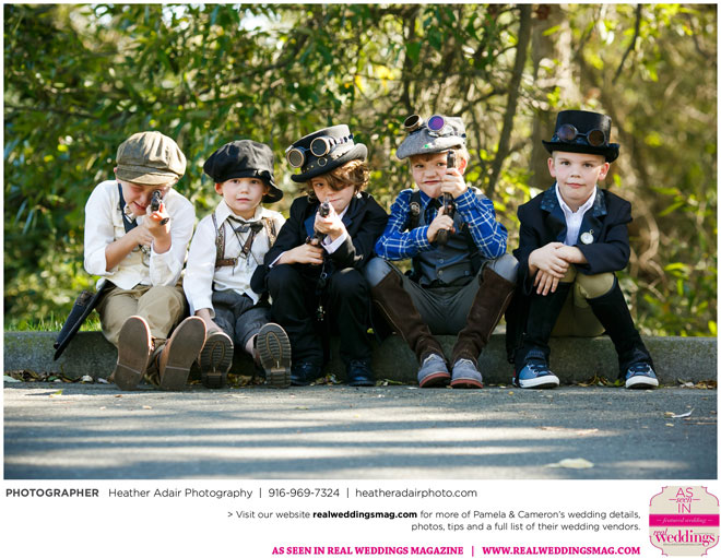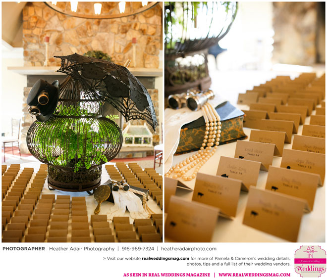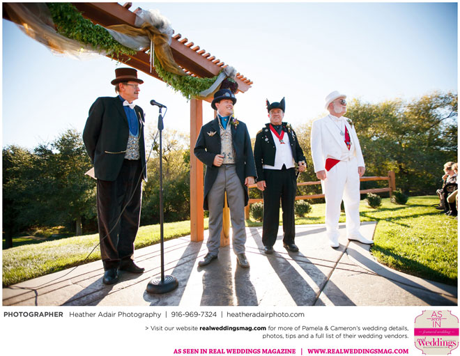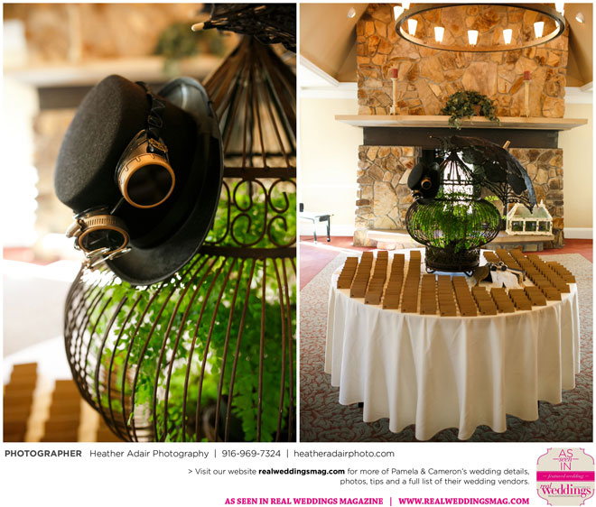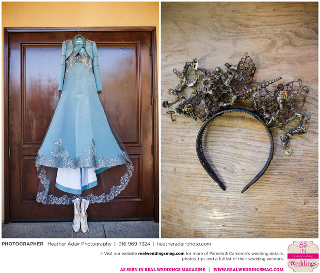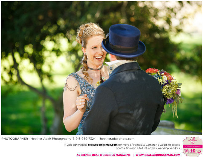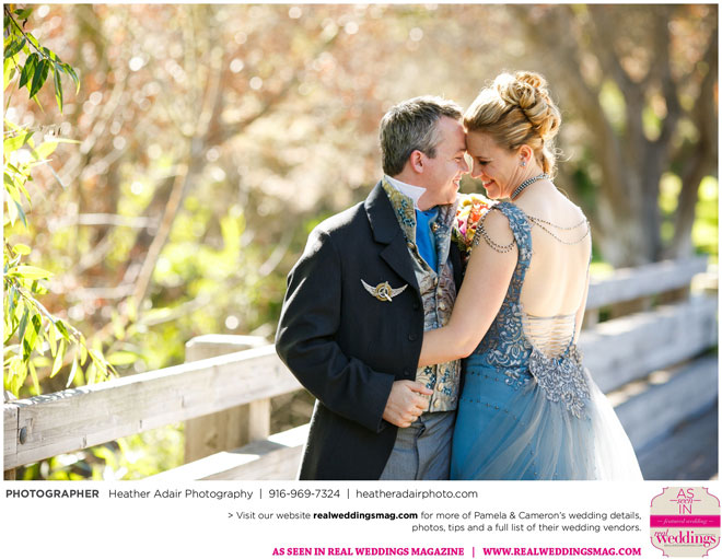 Not long after, the couple was back to a beach near Pacifica, where Cameron planned to propose. As soon as they were engaged, they began figuring out what kind of wedding they wanted. The theme? Steampunk! “We had been having a good time with going to the Dickens Fair in November and the Edwardian Ball in January in San Francisco, and getting dressed up in period clothing,” he says. “We thought it would be a blast getting all gussied up in steampunk attire!”
